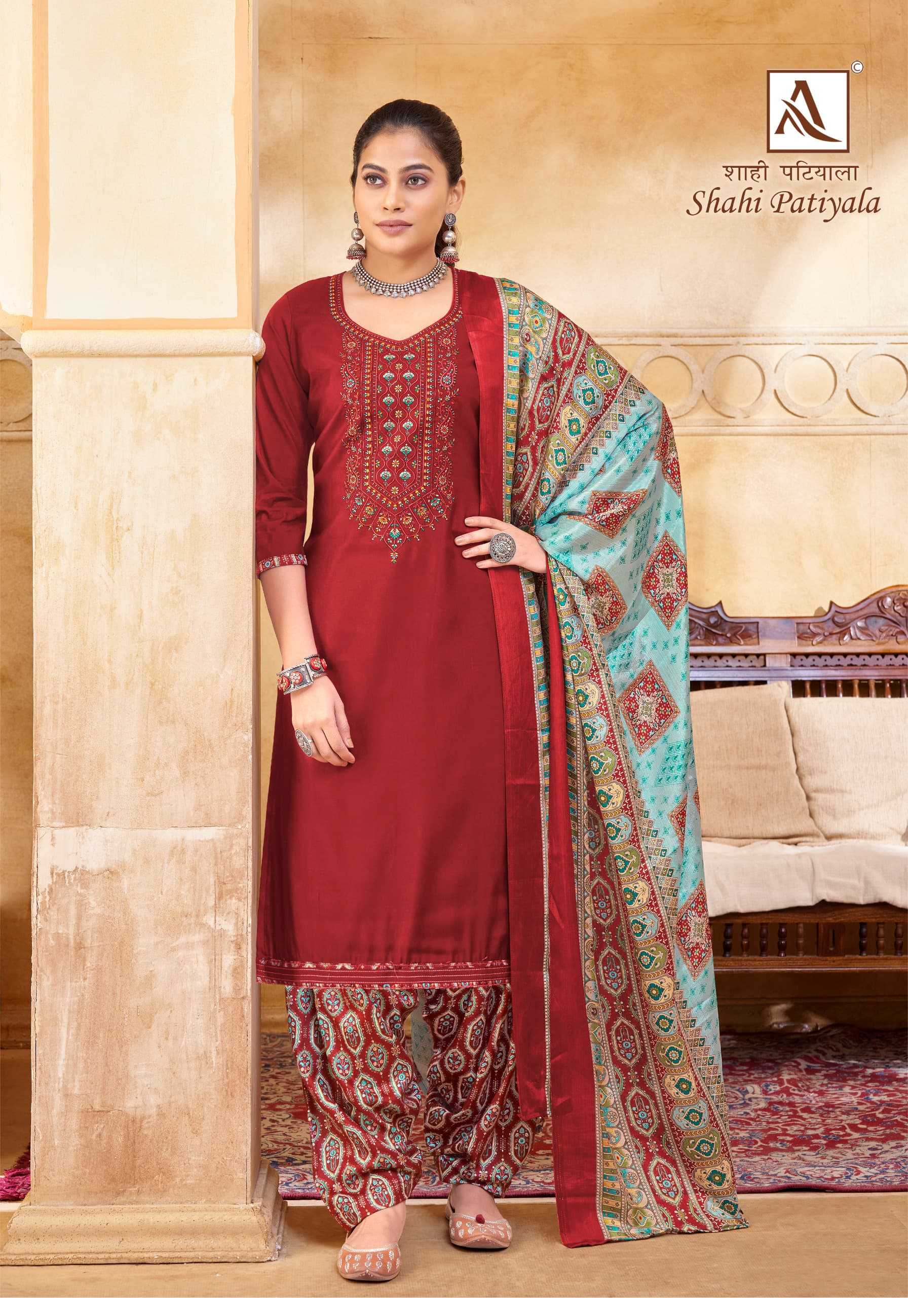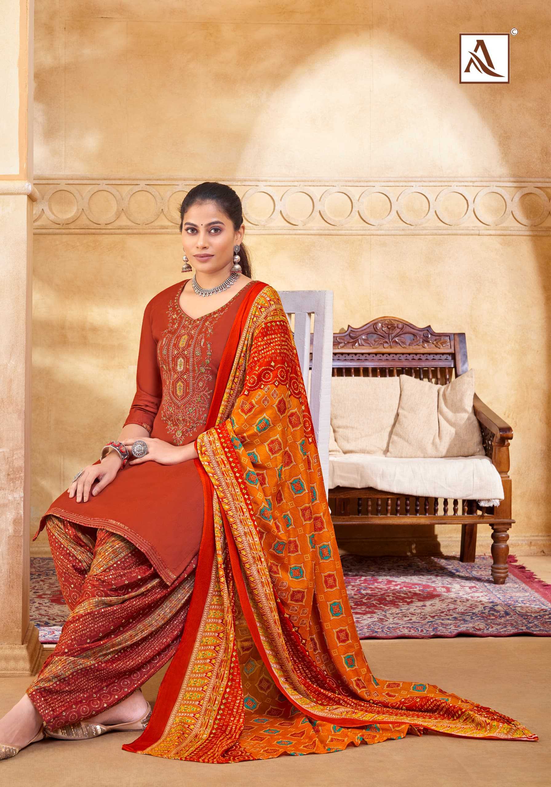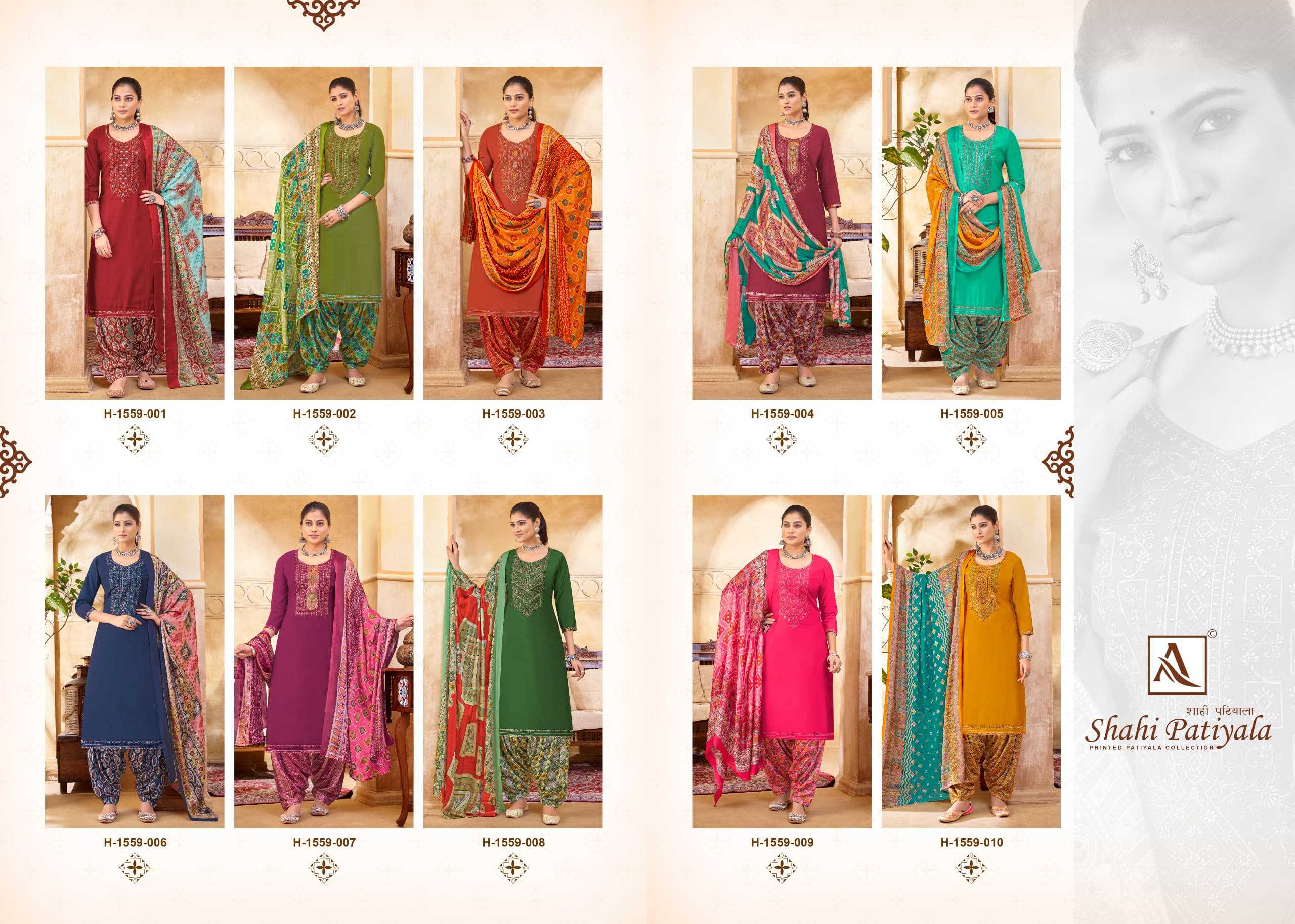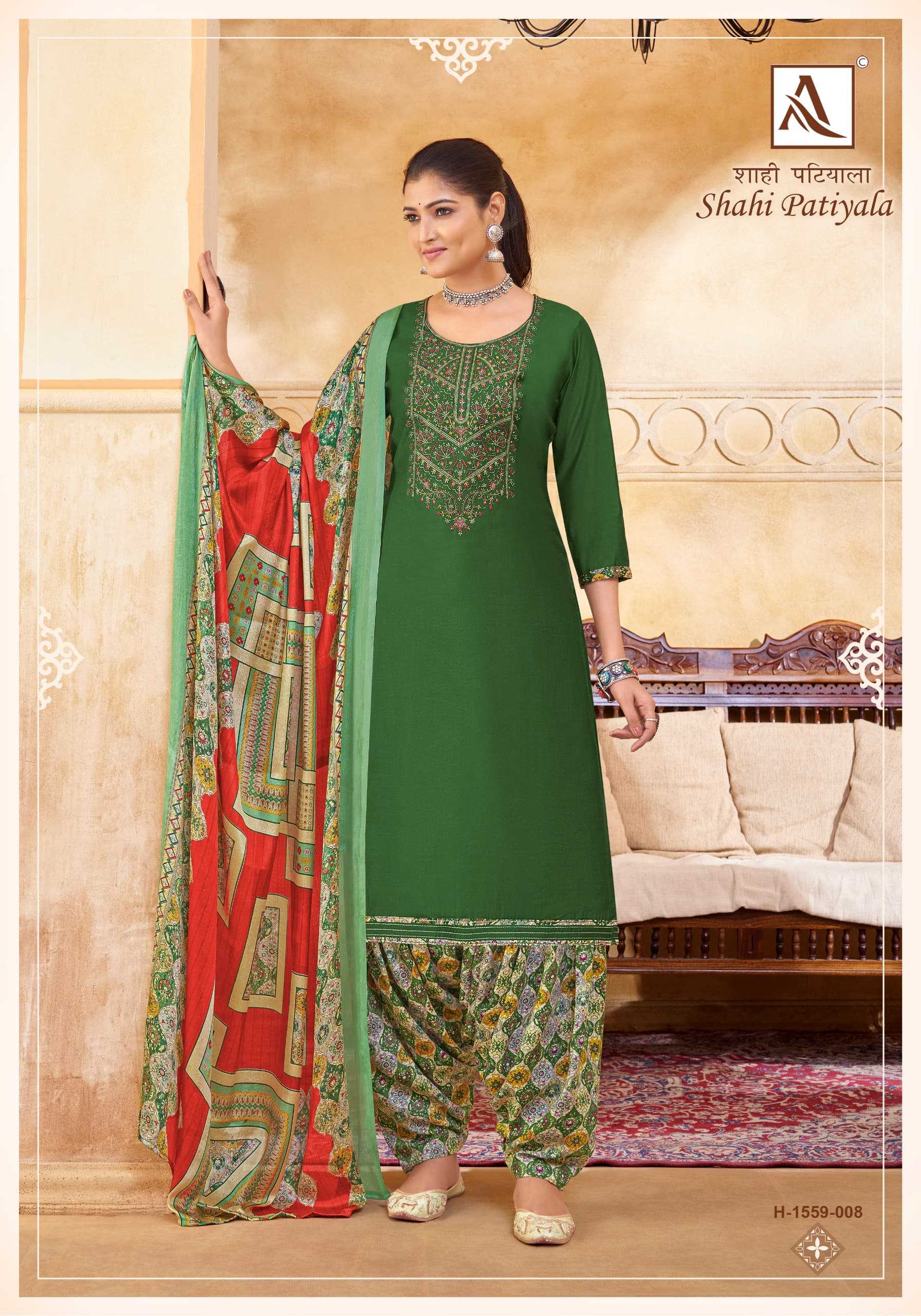 Looking for alok suit presents shahi patiyala launch embellished viscose salwar suit exports Full Catalouge at Best Price? Buy Now alok suit presents shahi patiyala launch embellished viscose salwar suit exports at Wholesale Rate of Rs 5990 with Total 10 Pcs from authroized dealer and supplier of Alok Suit Brand. Cost of Each piece is just only Rs 599 which is very low and affordable price to resale the product in your retail store. rrgandhi is Surat based Wholesale Supplier & Dealer of Alok Suit Brand. Click on Brand name to Know more about Brand's products.