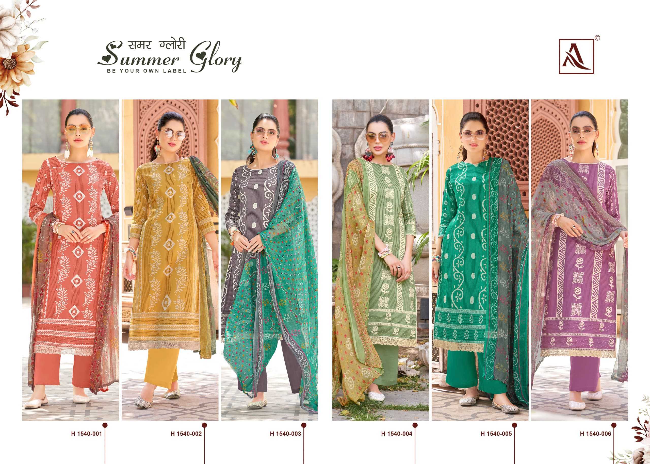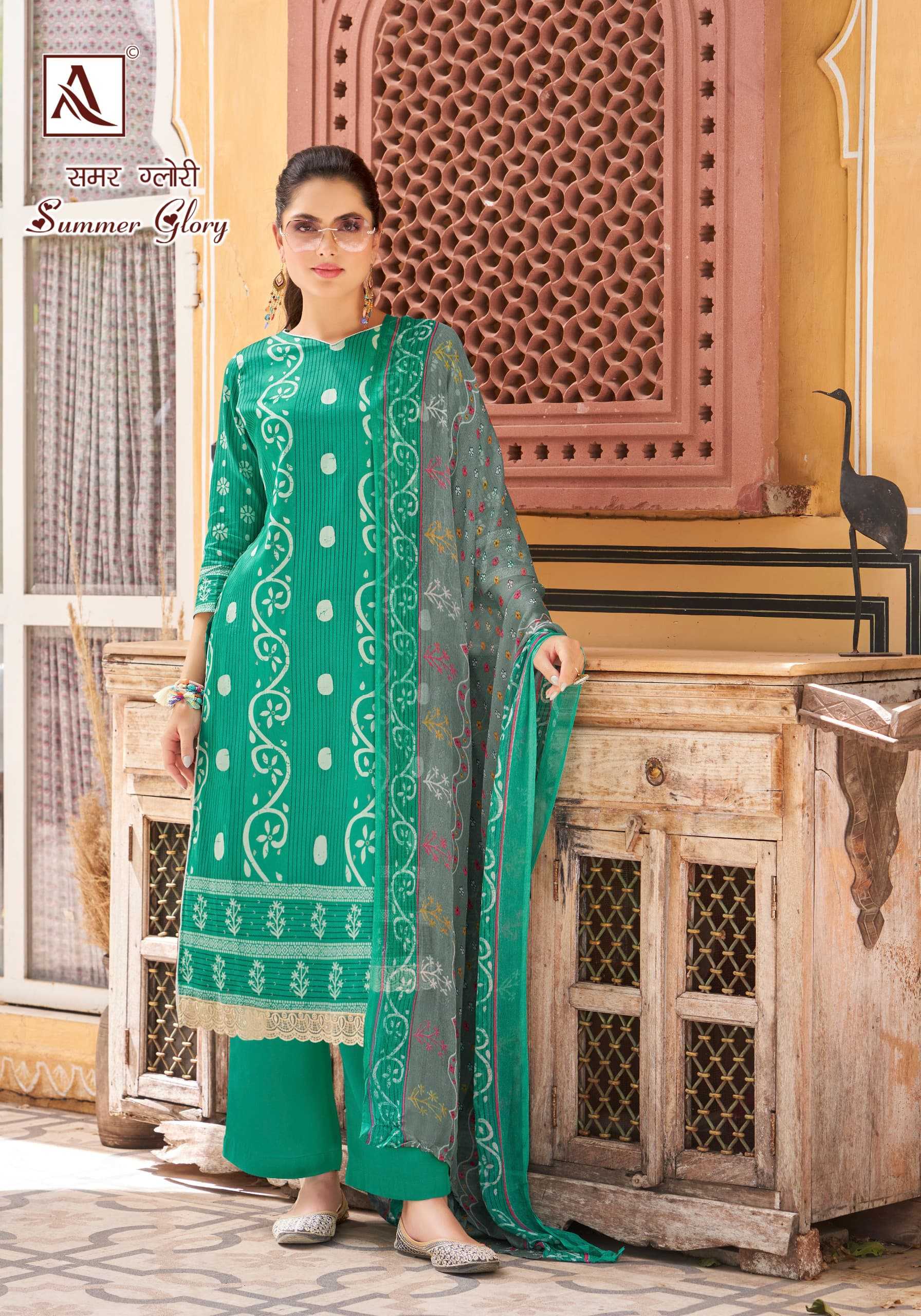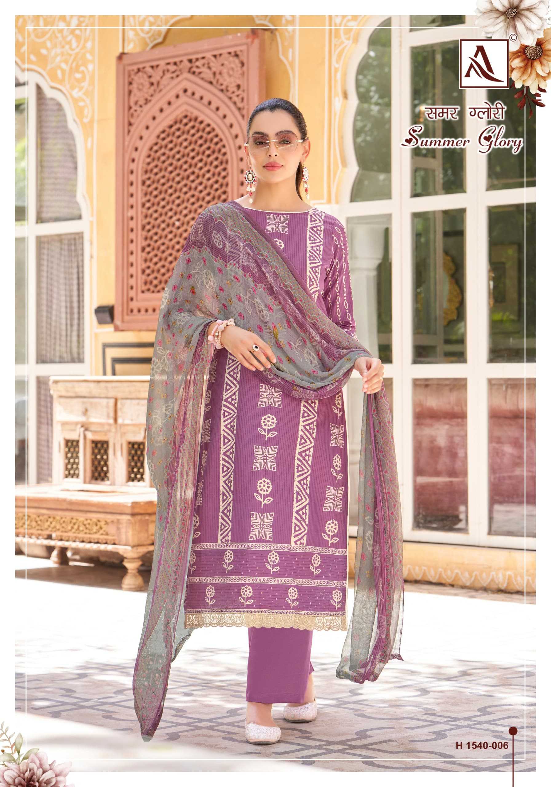 Looking for alok suit presents summer glory fancy zam designer elegant look pakistani salwar suit Full Catalouge at Best Price? Buy Now alok suit presents summer glory fancy zam designer elegant look pakistani salwar suit at Wholesale Rate of Rs 4440 with Total 6 Pcs from authroized dealer and supplier of Alok Suit Brand. Cost of Each piece is just only Rs 740 which is very low and affordable price to resale the product in your retail store. rrgandhi is Surat based Wholesale Supplier & Dealer of Alok Suit Brand. Click on Brand name to Know more about Brand's products.