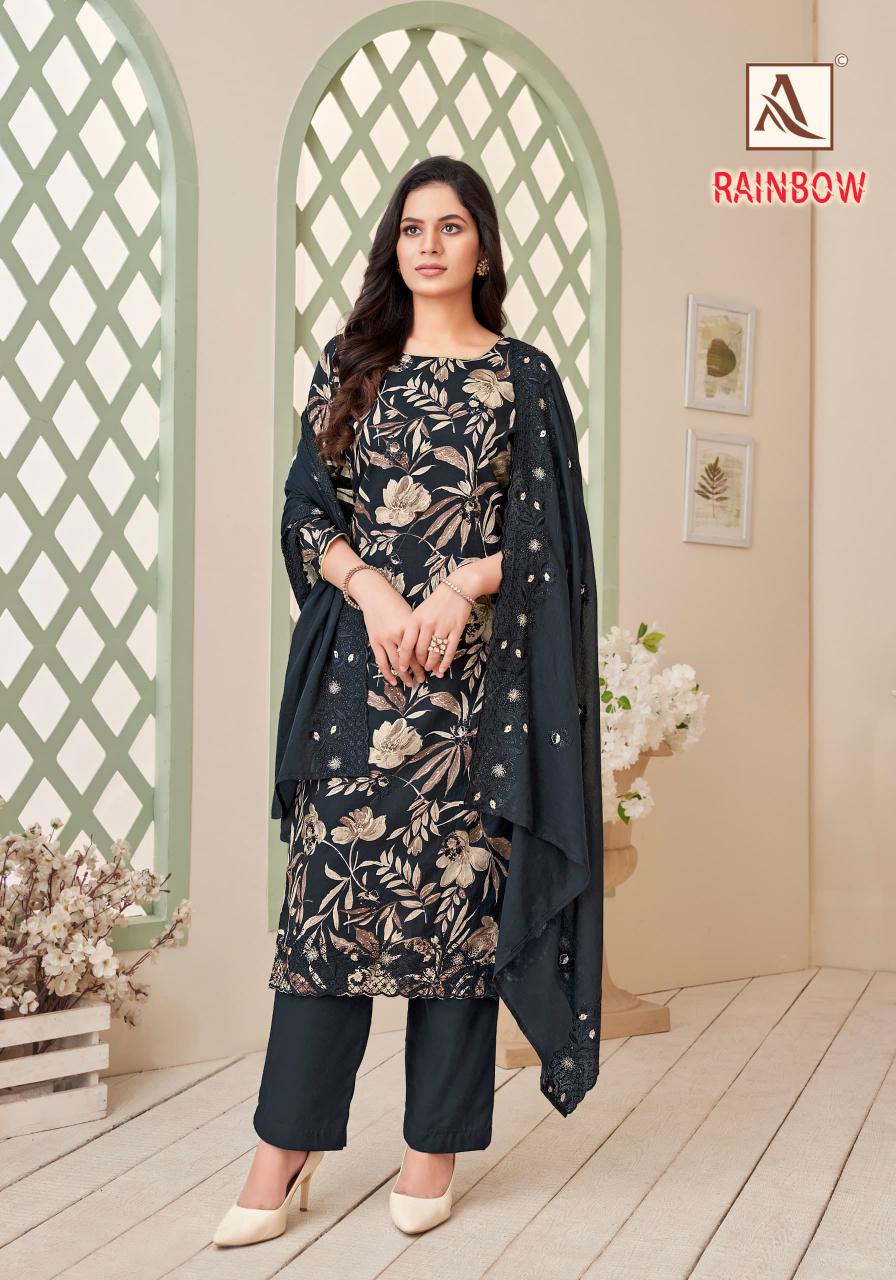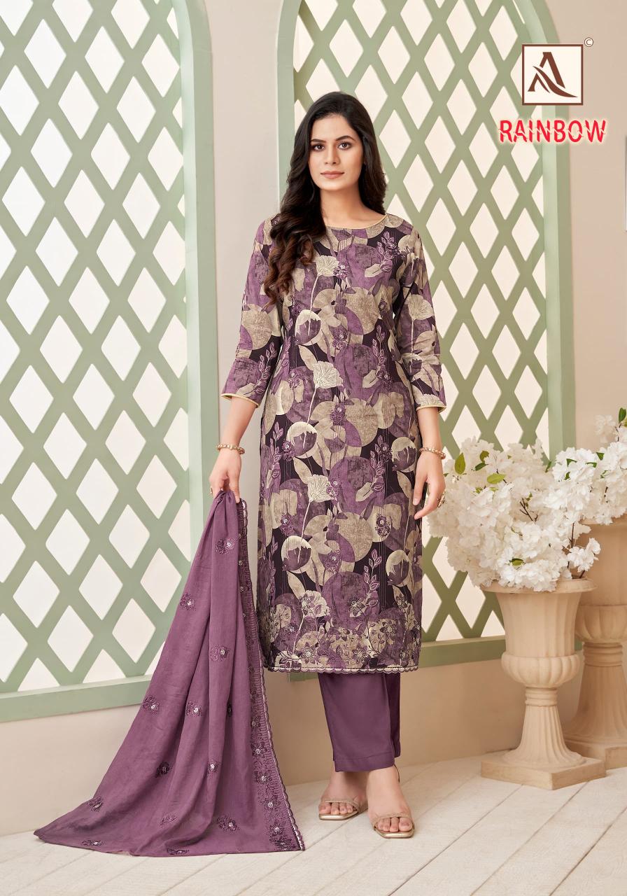 Looking for alok suits rainbow beautiful print cotton ladies suits Full Catalouge at Best Price? Buy Now alok suits rainbow beautiful print cotton ladies suits at Wholesale Rate of Rs 5394 with Total 6 Pcs from authroized dealer and supplier of Alok Suit Brand. Cost of Each piece is just only Rs 899 which is very low and affordable price to resale the product in your retail store. rrgandhi is Surat based Wholesale Supplier & Dealer of Alok Suit Brand. Click on Brand name to Know more about Brand's products.