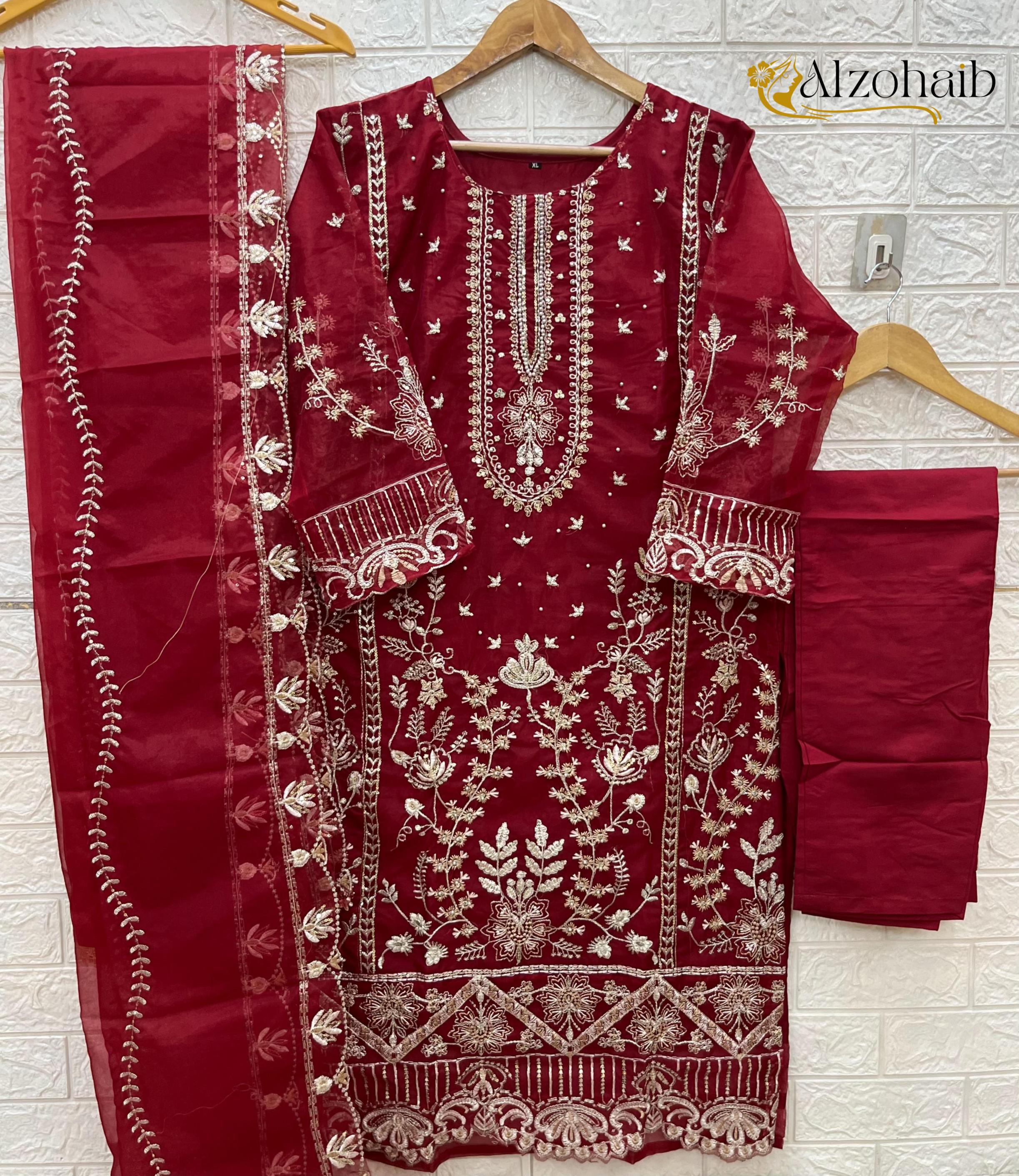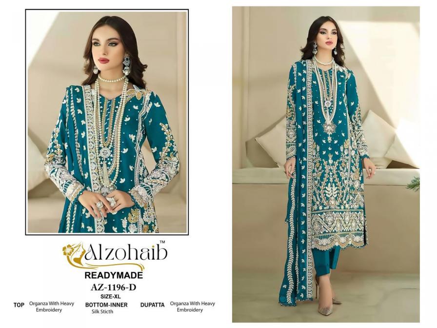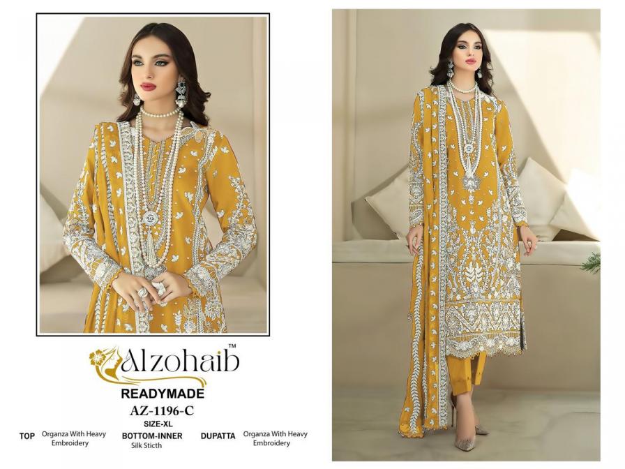 Looking for ALZOHAIB AAFA READYMADE 1196 ORGANZA SHOP TRENDY PAKISTANI SUITS Full Catalouge at Best Price? Buy Now ALZOHAIB AAFA READYMADE 1196 ORGANZA SHOP TRENDY PAKISTANI SUITS at Wholesale Rate of Rs 10000 with Total 8 Pcs from authroized dealer and supplier of Al Zohaib Textile Brand. Cost of Each piece is just only Rs 1250 which is very low and affordable price to resale the product in your retail store. rrgandhi is Surat based Wholesale Supplier & Dealer of Al Zohaib Textile Brand. Click on Brand name to Know more about Brand's products.