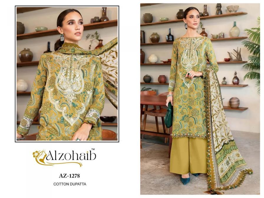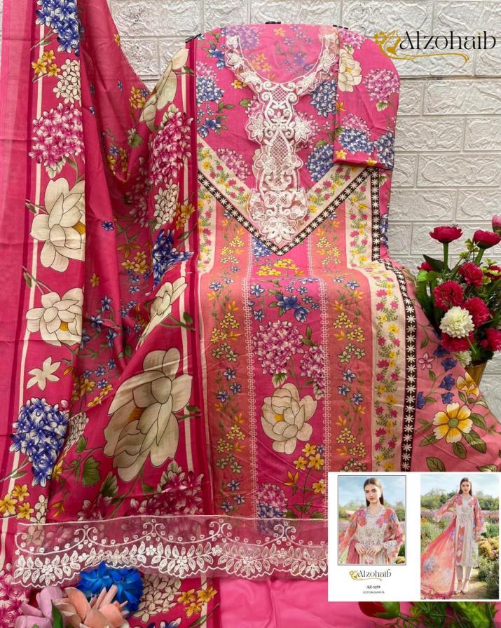 Looking for ALZOHAIB ANAYA COTTON PAKISTANI PRINT FANCY DRESS MATERIAL Full Catalouge at Best Price? Buy Now ALZOHAIB ANAYA COTTON PAKISTANI PRINT FANCY DRESS MATERIAL at Wholesale Rate of Rs 2875 with Total 5 Pcs from authroized dealer and supplier of Al Zohaib Textile Brand. Cost of Each piece is just only Rs 575 which is very low and affordable price to resale the product in your retail store. rrgandhi is Surat based Wholesale Supplier & Dealer of Al Zohaib Textile Brand. Click on Brand name to Know more about Brand's products.