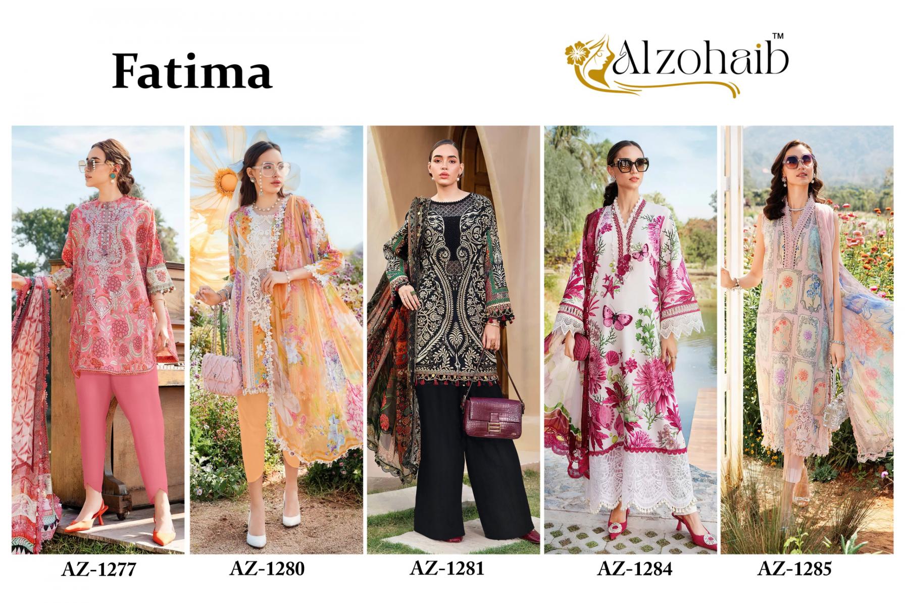 Looking for ALZOHAIB FATIMA COTTON PAKISTANI STYLISH DRESS MATERIALS Full Catalouge at Best Price? Buy Now ALZOHAIB FATIMA COTTON PAKISTANI STYLISH DRESS MATERIALS at Wholesale Rate of Rs 2875 with Total 5 Pcs from authroized dealer and supplier of Al Zohaib Textile Brand. Cost of Each piece is just only Rs 575 which is very low and affordable price to resale the product in your retail store. rrgandhi is Surat based Wholesale Supplier & Dealer of Al Zohaib Textile Brand. Click on Brand name to Know more about Brand's products.