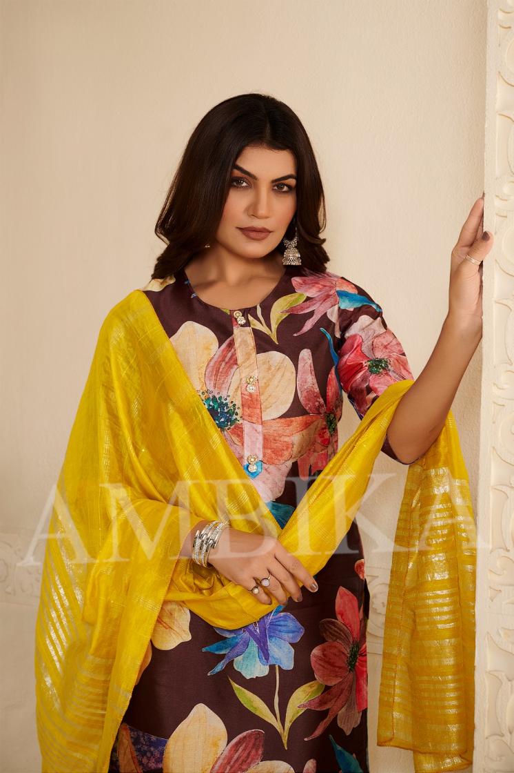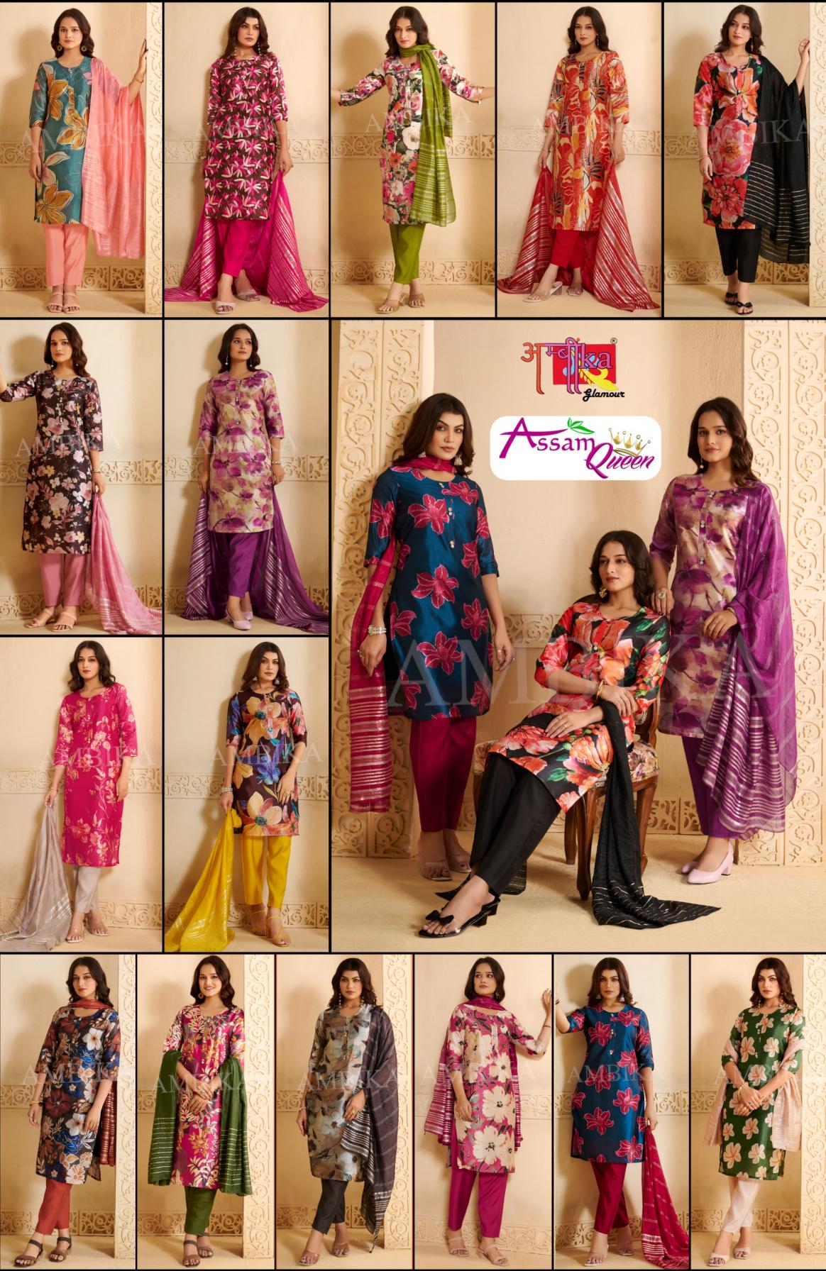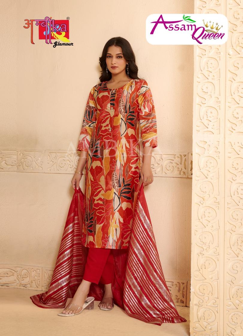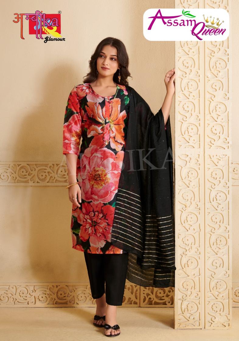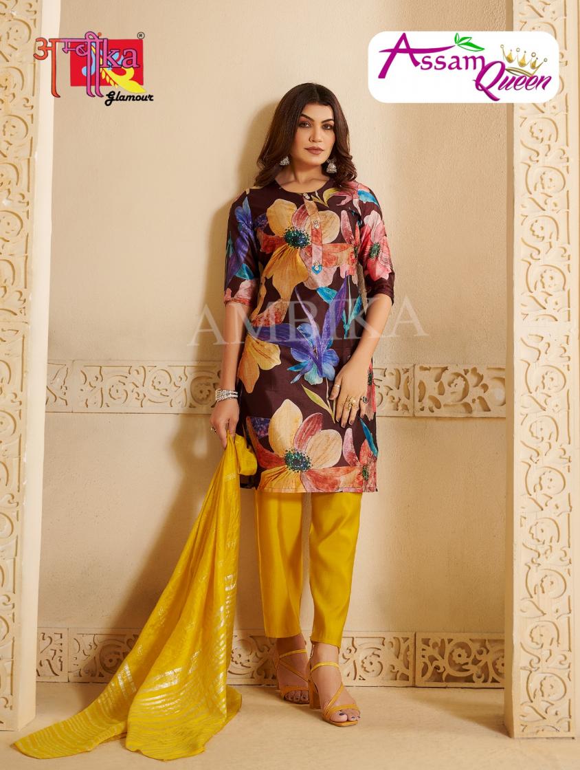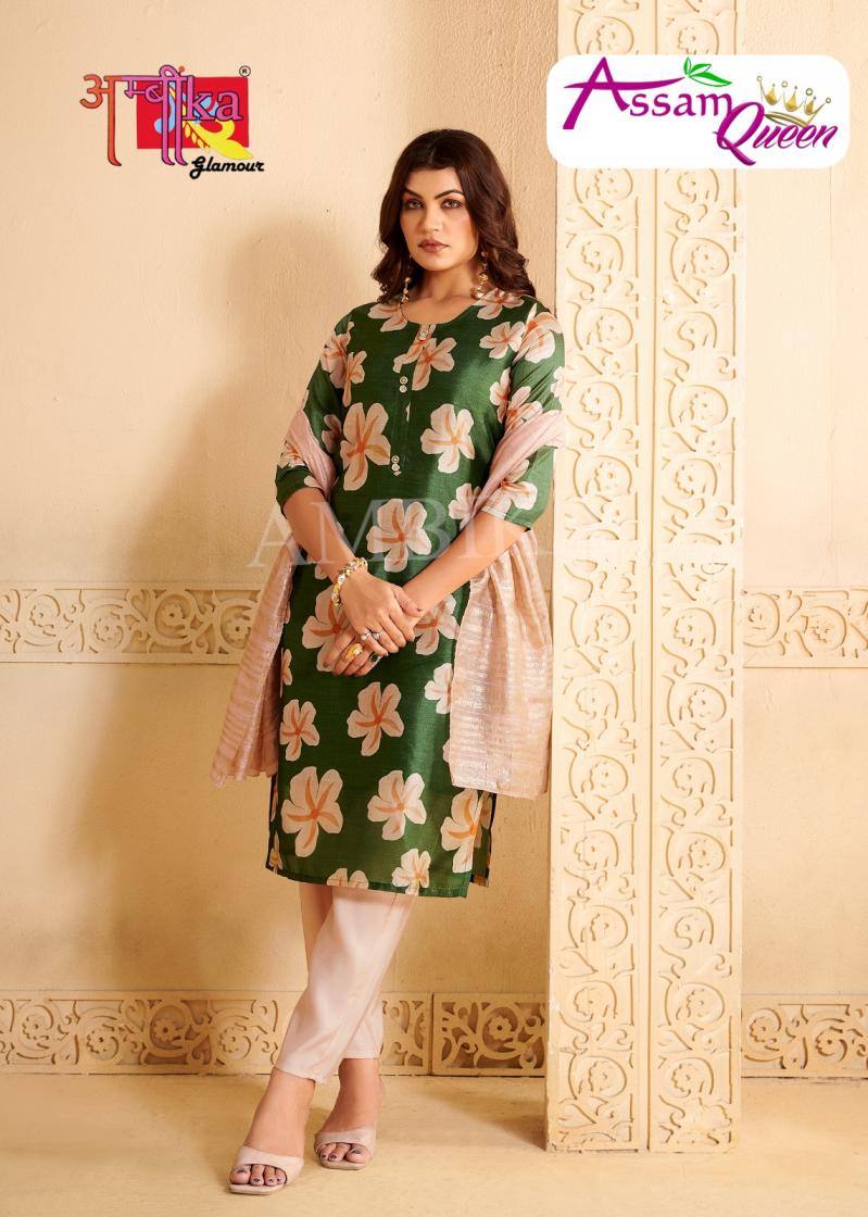 Looking for AMBIKA ASSAM QUEEN VOL 2 AMAZING ASSAM SILK READYMADE COMBO SUITS Full Catalouge at Best Price? Buy Now AMBIKA ASSAM QUEEN VOL 2 AMAZING ASSAM SILK READYMADE COMBO SUITS at Wholesale Rate of Rs 31920 with Total 56 Pcs from authroized dealer and supplier of Ambika Kurtis Brand. Cost of Each piece is just only Rs 570 which is very low and affordable price to resale the product in your retail store. rrgandhi is Surat based Wholesale Supplier & Dealer of Ambika Kurtis Brand. Click on Brand name to Know more about Brand's products.