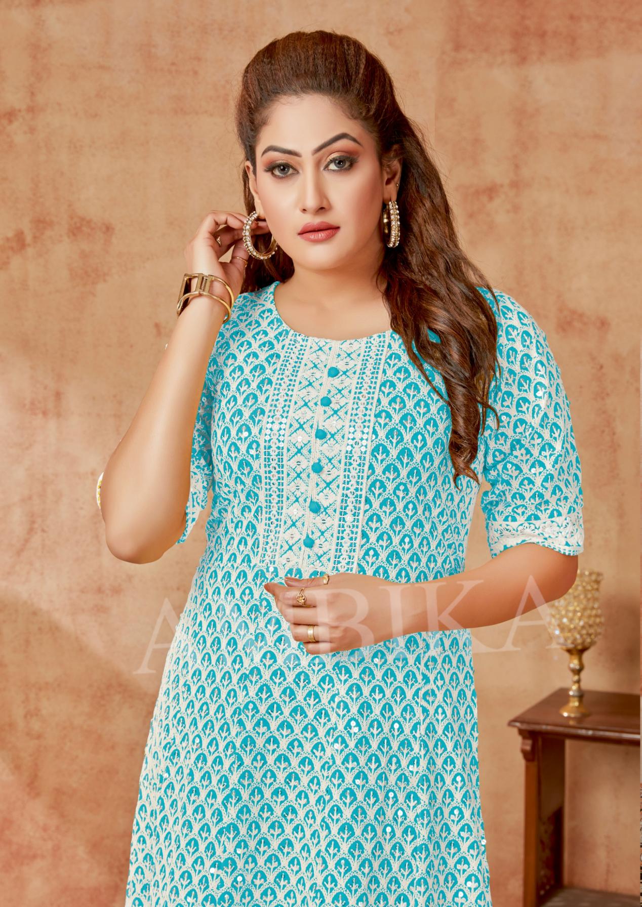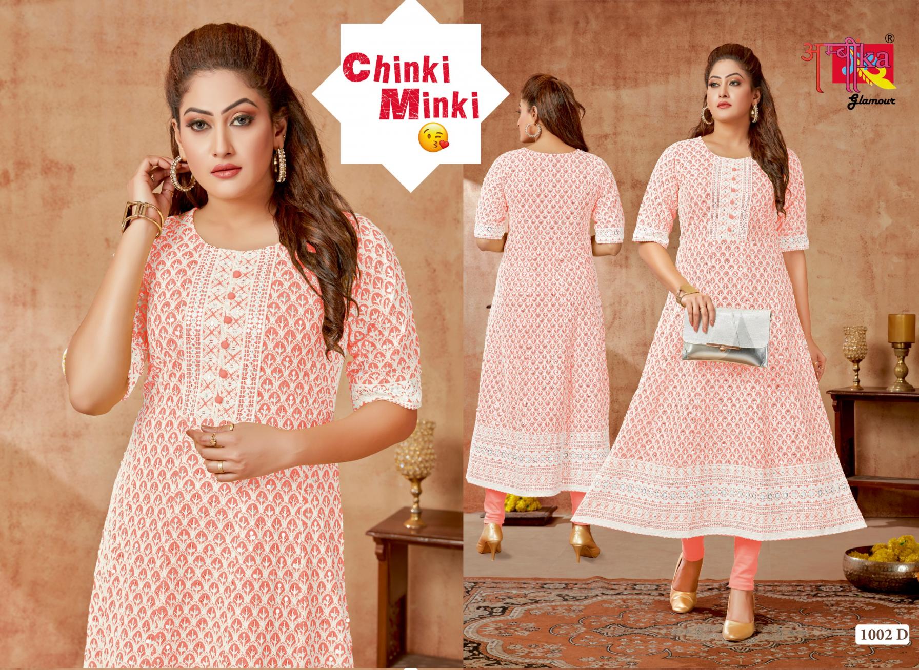 Looking for AMBIKA CHINKI MINKI READYMADE RAYON FANCY COMBO SETS KURTI Full Catalouge at Best Price? Buy Now AMBIKA CHINKI MINKI READYMADE RAYON FANCY COMBO SETS KURTI at Wholesale Rate of Rs 32960 with Total 64 Pcs from authroized dealer and supplier of Ambika Kurtis Brand. Cost of Each piece is just only Rs 515 which is very low and affordable price to resale the product in your retail store. rrgandhi is Surat based Wholesale Supplier & Dealer of Ambika Kurtis Brand. Click on Brand name to Know more about Brand's products.