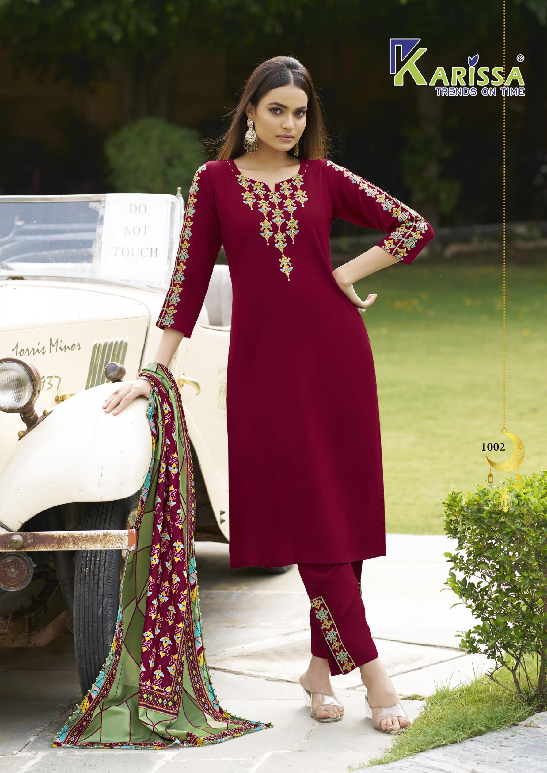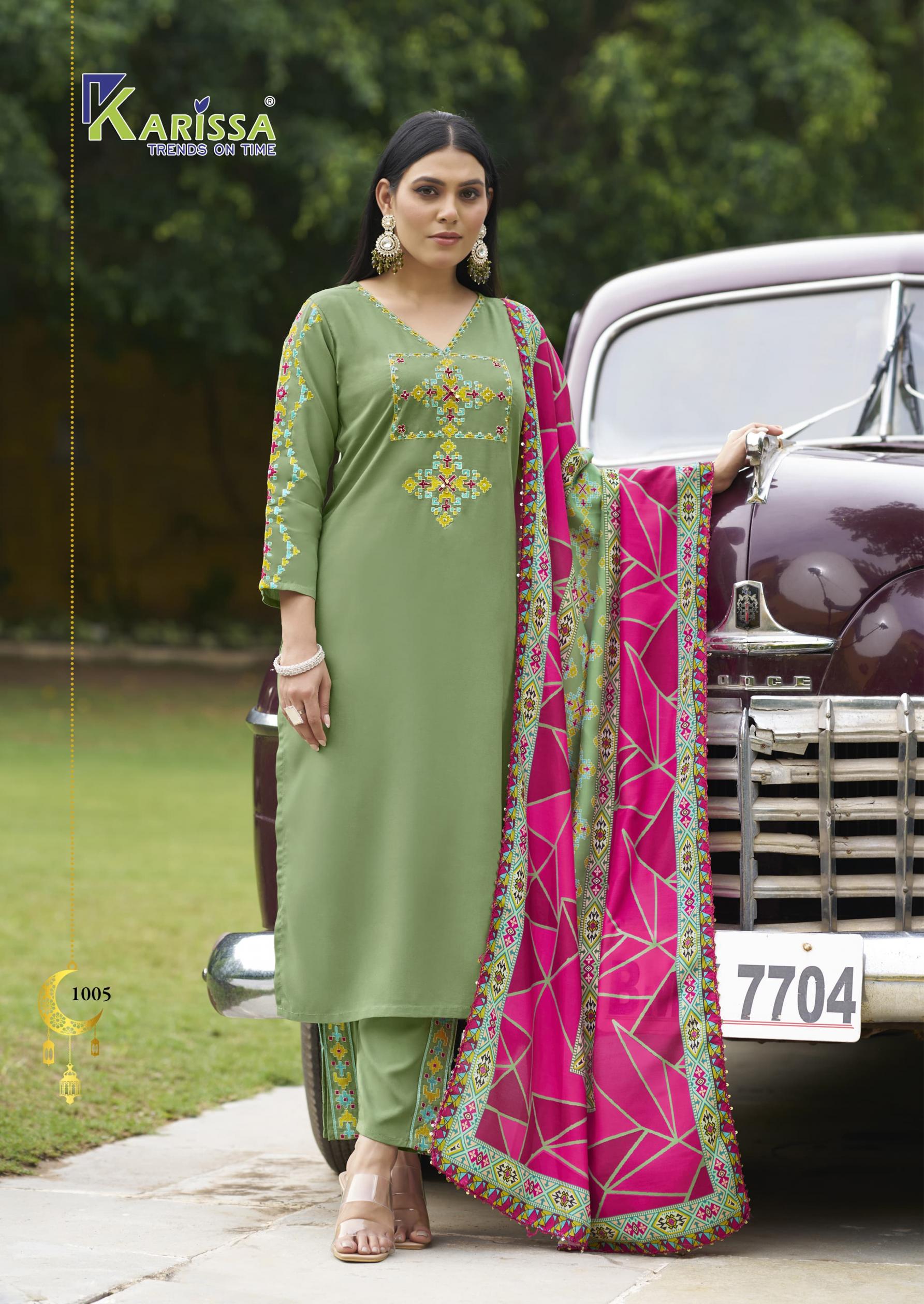 Looking for ANIKA BY KARISSA LAUNCH 3PCS DRESS Full Catalouge at Best Price? Buy Now ANIKA BY KARISSA LAUNCH 3PCS DRESS at Wholesale Rate of Rs 5790 with Total 6 Pcs from authroized dealer and supplier of Karissa Brand. Cost of Each piece is just only Rs 965 which is very low and affordable price to resale the product in your retail store. rrgandhi is Surat based Wholesale Supplier & Dealer of Karissa Brand. Click on Brand name to Know more about Brand's products.