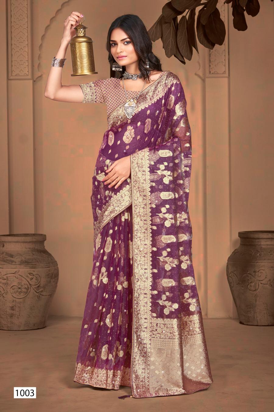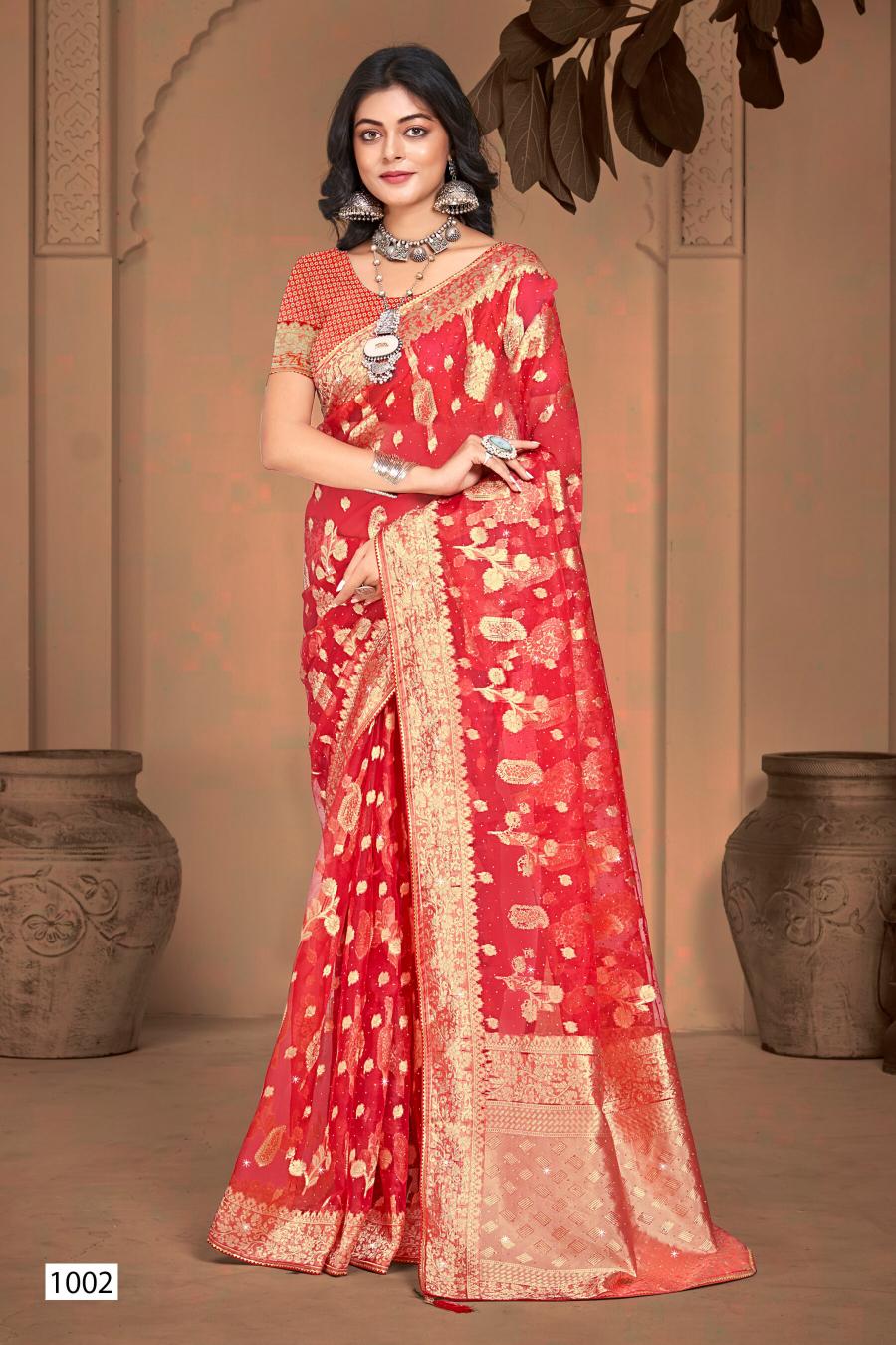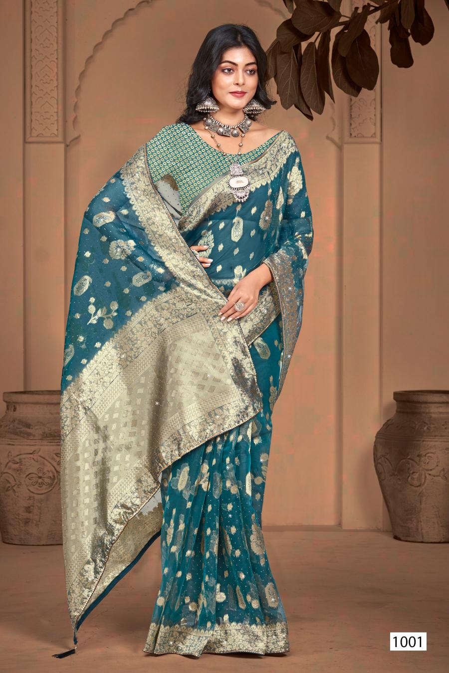 Looking for Ankita Swarovski Saroj Vol.6 organza silk saree Full Catalouge at Best Price? Buy Now Ankita Swarovski Saroj Vol.6 organza silk saree at Wholesale Rate of Rs 3480 with Total 6 Pcs from authroized dealer and supplier of Saroj Textiles Brand. Cost of Each piece is just only Rs 580 which is very low and affordable price to resale the product in your retail store. rrgandhi is Surat based Wholesale Supplier & Dealer of Saroj Textiles Brand. Click on Brand name to Know more about Brand's products.