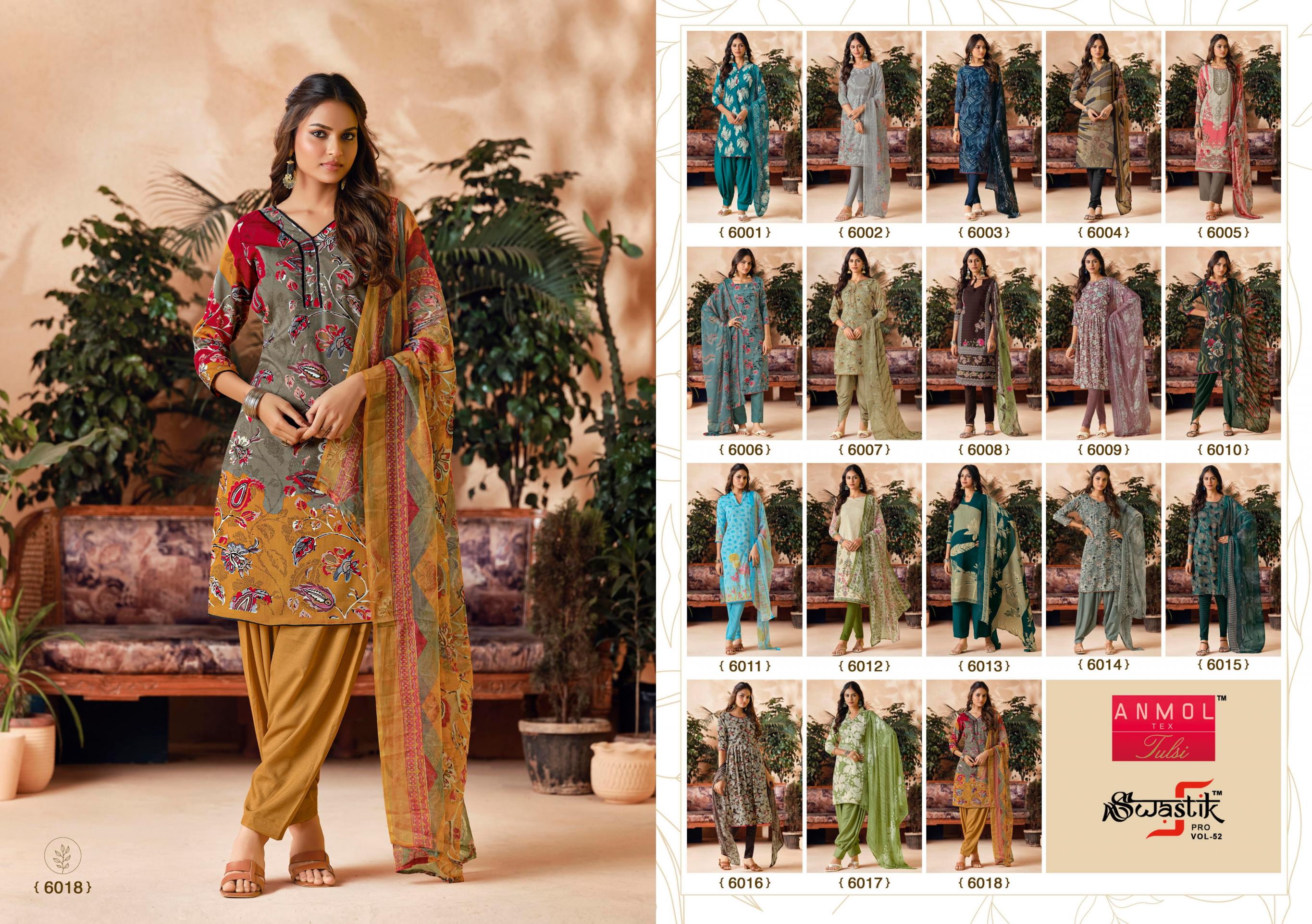 Looking for ANMOL TEX SWASTIK PRO VOL 52 UNIQUE AMERICAN SUIT FOR WOMENS Full Catalouge at Best Price? Buy Now ANMOL TEX SWASTIK PRO VOL 52 UNIQUE AMERICAN SUIT FOR WOMENS at Wholesale Rate of Rs 5040 with Total 18 Pcs from authroized dealer and supplier of Anmol Tex Brand. Cost of Each piece is just only Rs 280 which is very low and affordable price to resale the product in your retail store. rrgandhi is Surat based Wholesale Supplier & Dealer of Anmol Tex Brand. Click on Brand name to Know more about Brand's products.