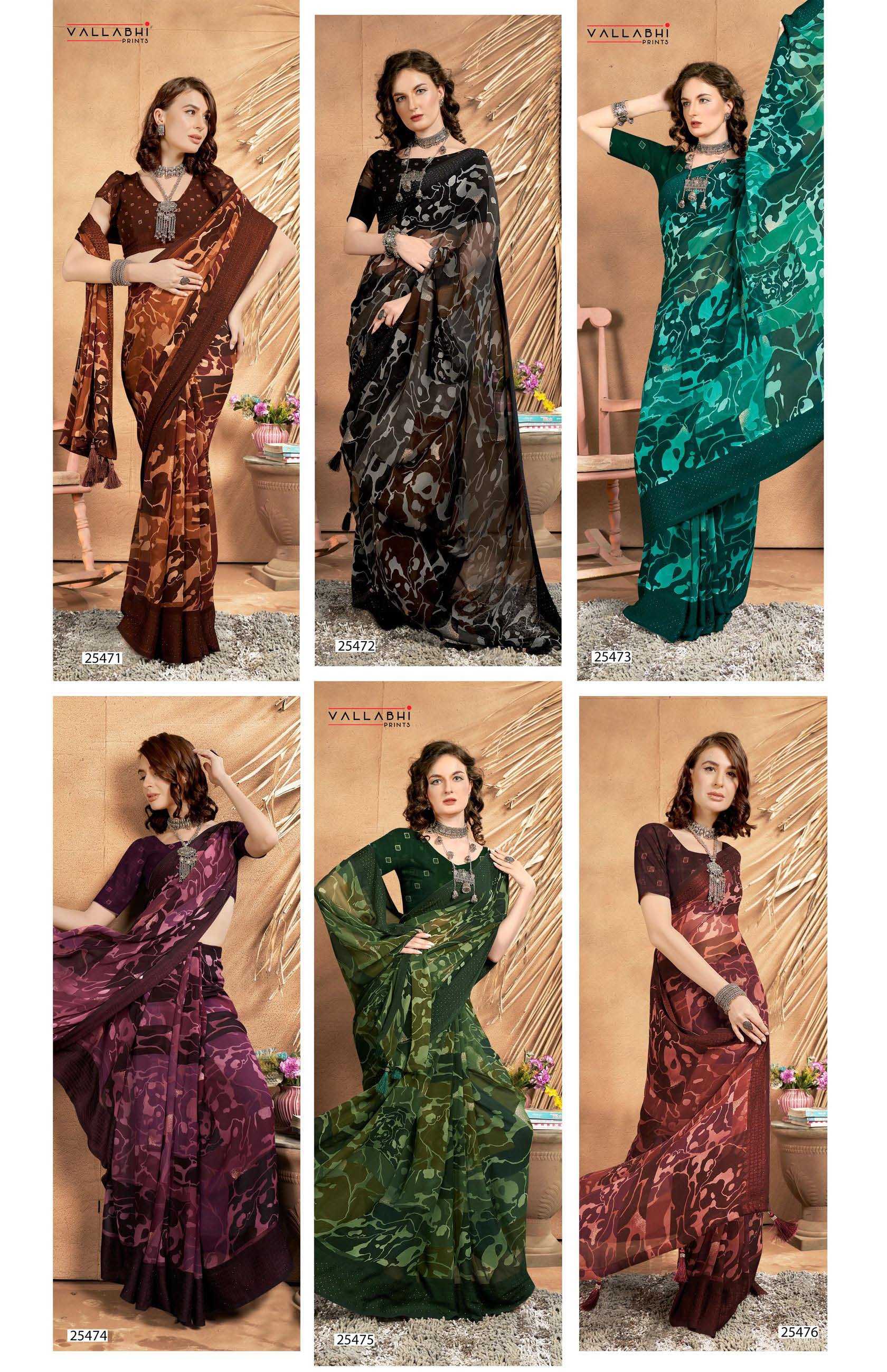 Looking for annara vol 3 by vallabhi prints 25471-25476 fancy georgette new trendy saree wholesaler Full Catalouge at Best Price? Buy Now annara vol 3 by vallabhi prints 25471-25476 fancy georgette new trendy saree wholesaler at Wholesale Rate of Rs 5310 with Total 6 Pcs from authroized dealer and supplier of Vallabhi Prints Brand. Cost of Each piece is just only Rs 885 which is very low and affordable price to resale the product in your retail store. rrgandhi is Surat based Wholesale Supplier & Dealer of Vallabhi Prints Brand. Click on Brand name to Know more about Brand's products.
