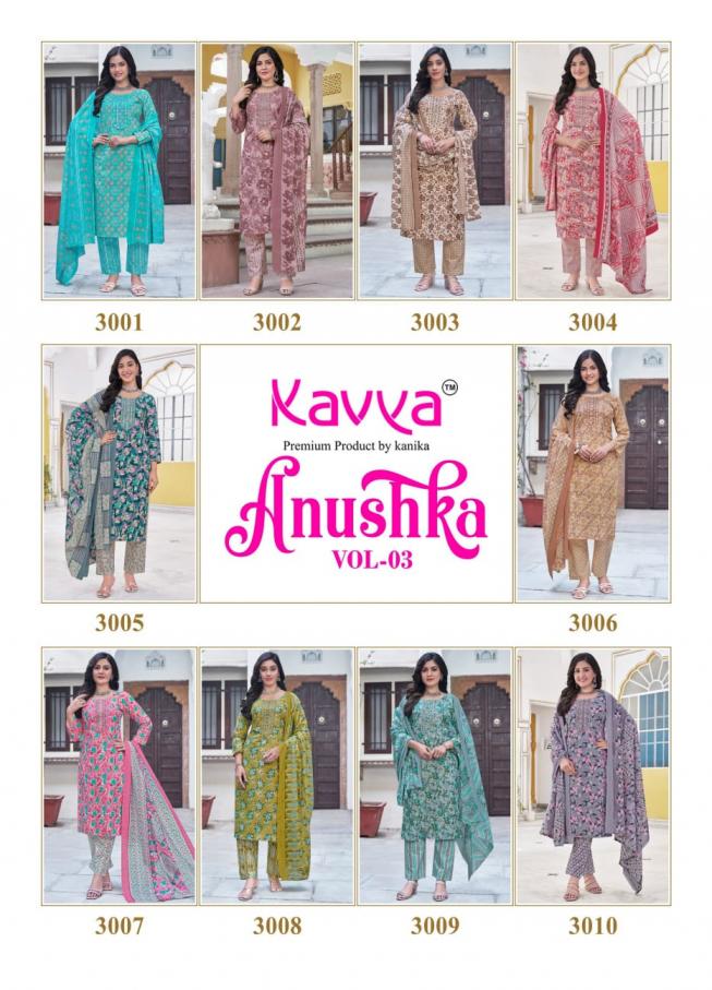 Looking for ANUSHKA VOL 3 BY KAVYA READYMADE UNIQUE COTTON 3PCS DRESS Full Catalouge at Best Price? Buy Now ANUSHKA VOL 3 BY KAVYA READYMADE UNIQUE COTTON 3PCS DRESS at Wholesale Rate of Rs 4900 with Total 10 Pcs from authroized dealer and supplier of Kavya by Kanika Brand. Cost of Each piece is just only Rs 490 which is very low and affordable price to resale the product in your retail store. rrgandhi is Surat based Wholesale Supplier & Dealer of Kavya by Kanika Brand. Click on Brand name to Know more about Brand's products.