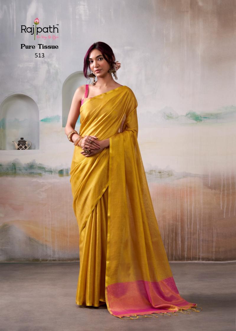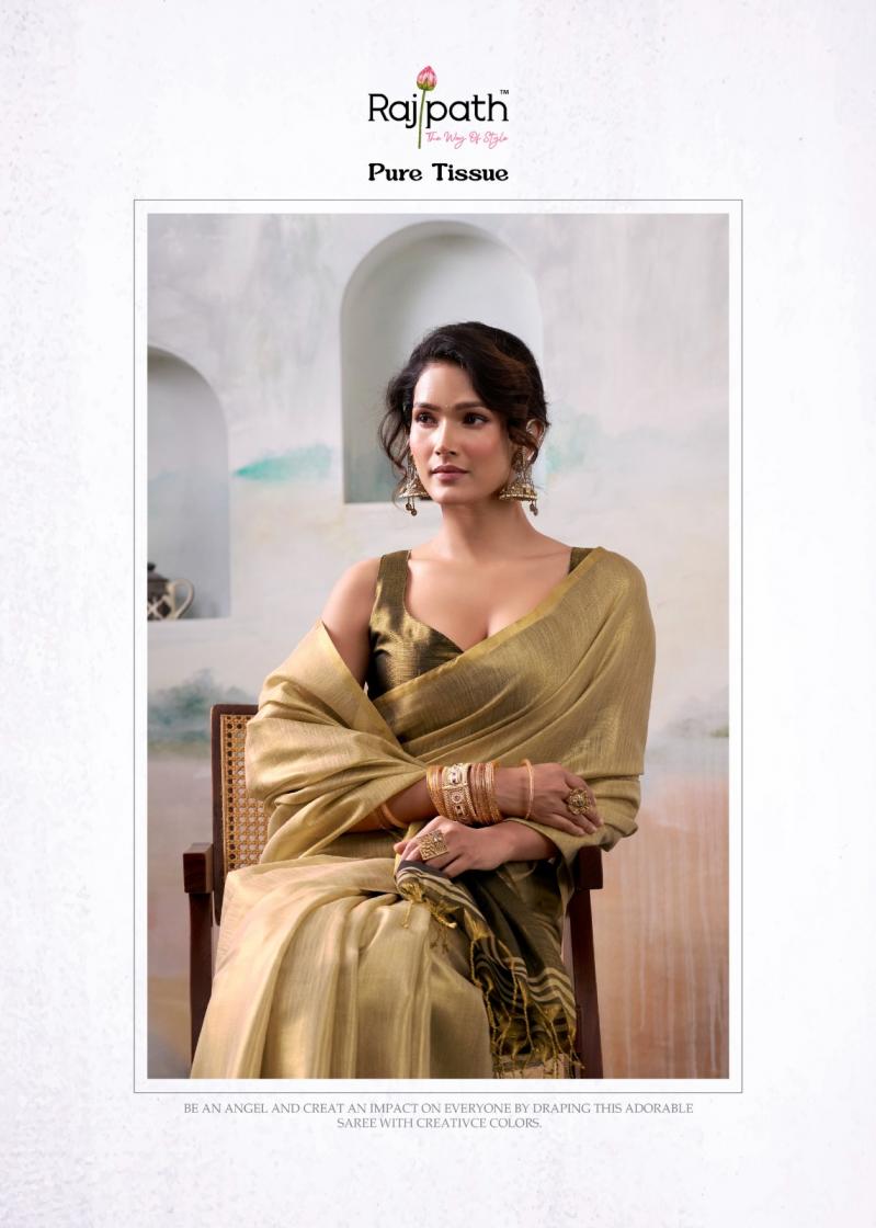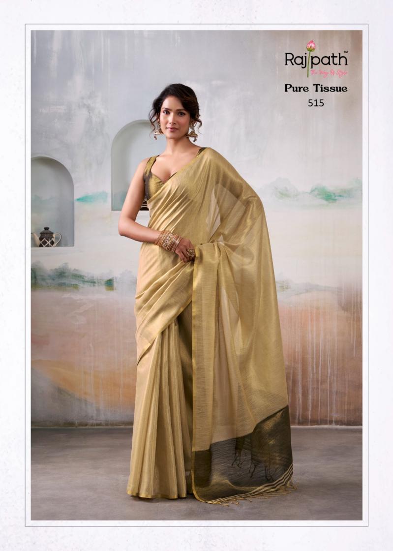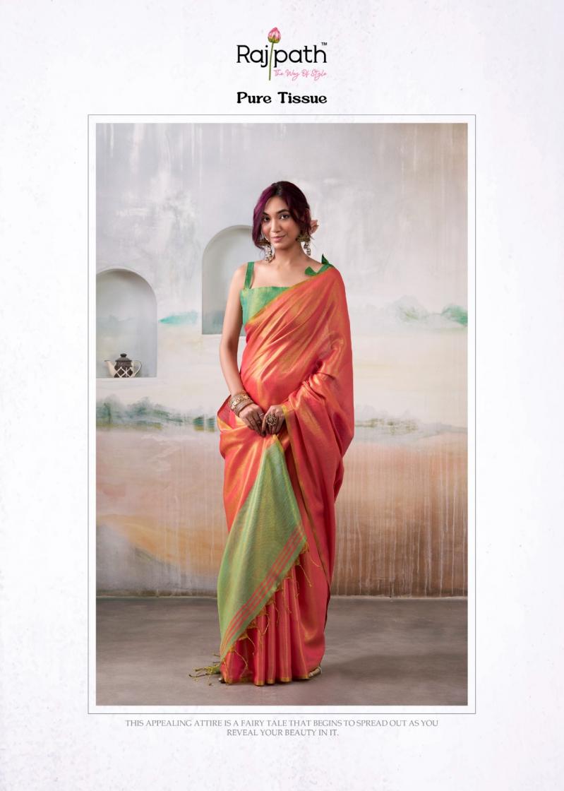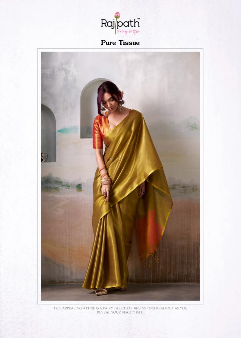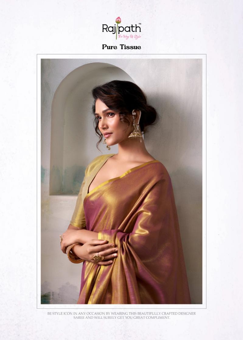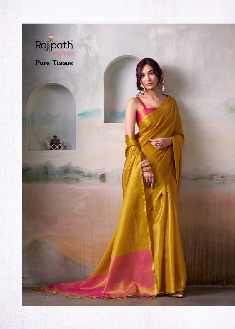 Looking for ANVIKA TISSUE BY RAJPATH HANDLOOM TISSUE UNIQUE DESIGN SAREES Full Catalouge at Best Price? Buy Now ANVIKA TISSUE BY RAJPATH HANDLOOM TISSUE UNIQUE DESIGN SAREES at Wholesale Rate of Rs 5370 with Total 6 Pcs from authroized dealer and supplier of Rajpath Brand. Cost of Each piece is just only Rs 895 which is very low and affordable price to resale the product in your retail store. rrgandhi is Surat based Wholesale Supplier & Dealer of Rajpath Brand. Click on Brand name to Know more about Brand's products.