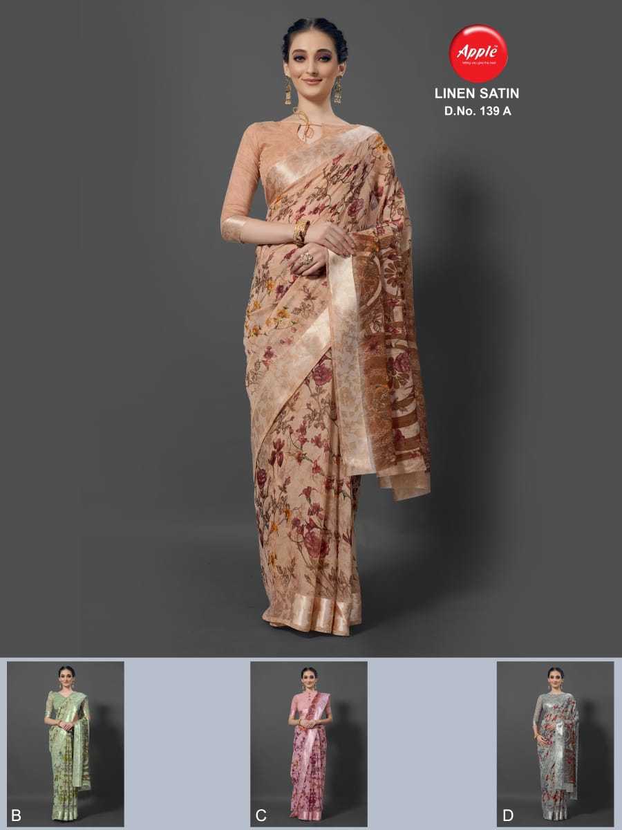 Looking for apple sarees new style linen satin soft linen saree with blouse exports Full Catalouge at Best Price? Buy Now apple sarees new style linen satin soft linen saree with blouse exports at Wholesale Rate of Rs 4200 with Total 12 Pcs from authroized dealer and supplier of Apple Sarees Brand. Cost of Each piece is just only Rs 350 which is very low and affordable price to resale the product in your retail store. rrgandhi is Surat based Wholesale Supplier & Dealer of Apple Sarees Brand. Click on Brand name to Know more about Brand's products.