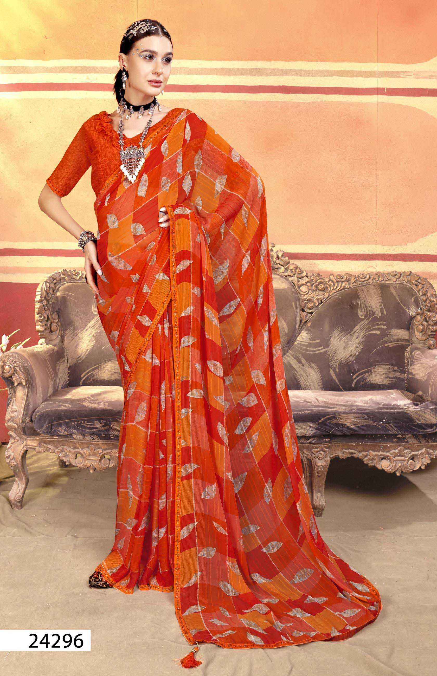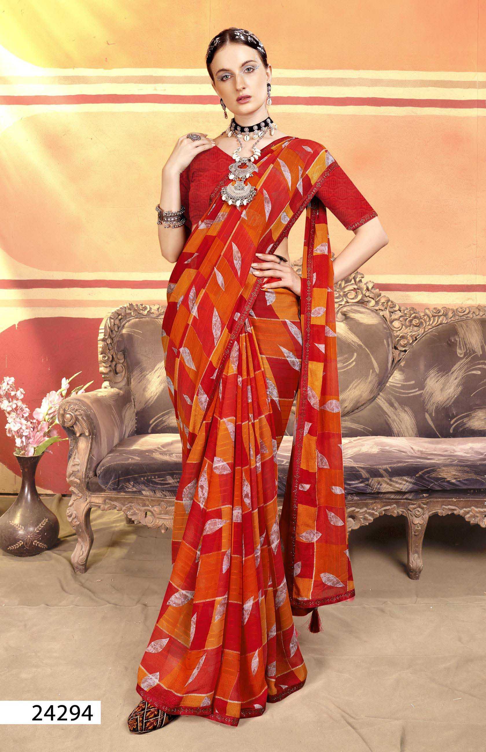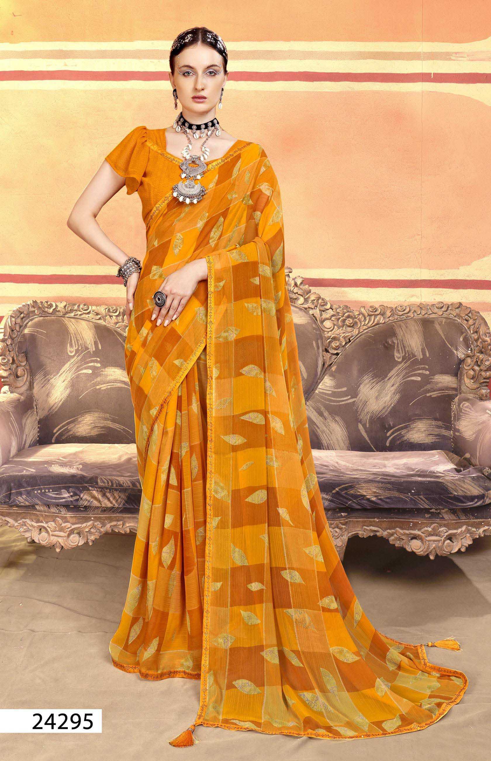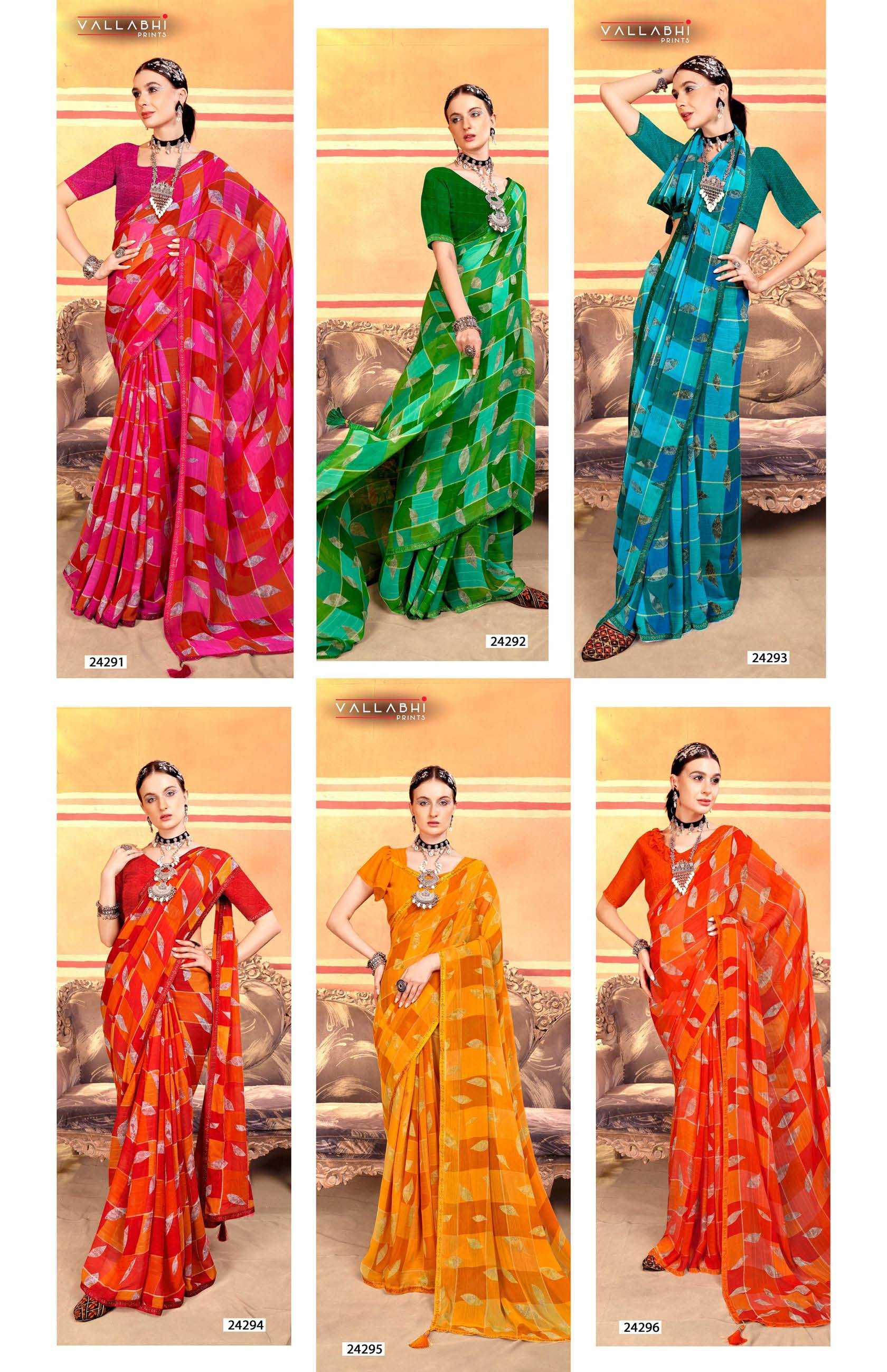 Looking for arnika vol 2 by vallabhi prints 24291-24296 series amazing georgette saree exports Full Catalouge at Best Price? Buy Now arnika vol 2 by vallabhi prints 24291-24296 series amazing georgette saree exports at Wholesale Rate of Rs 4650 with Total 6 Pcs from authroized dealer and supplier of Vallabhi Prints Brand. Cost of Each piece is just only Rs 775 which is very low and affordable price to resale the product in your retail store. rrgandhi is Surat based Wholesale Supplier & Dealer of Vallabhi Prints Brand. Click on Brand name to Know more about Brand's products.
