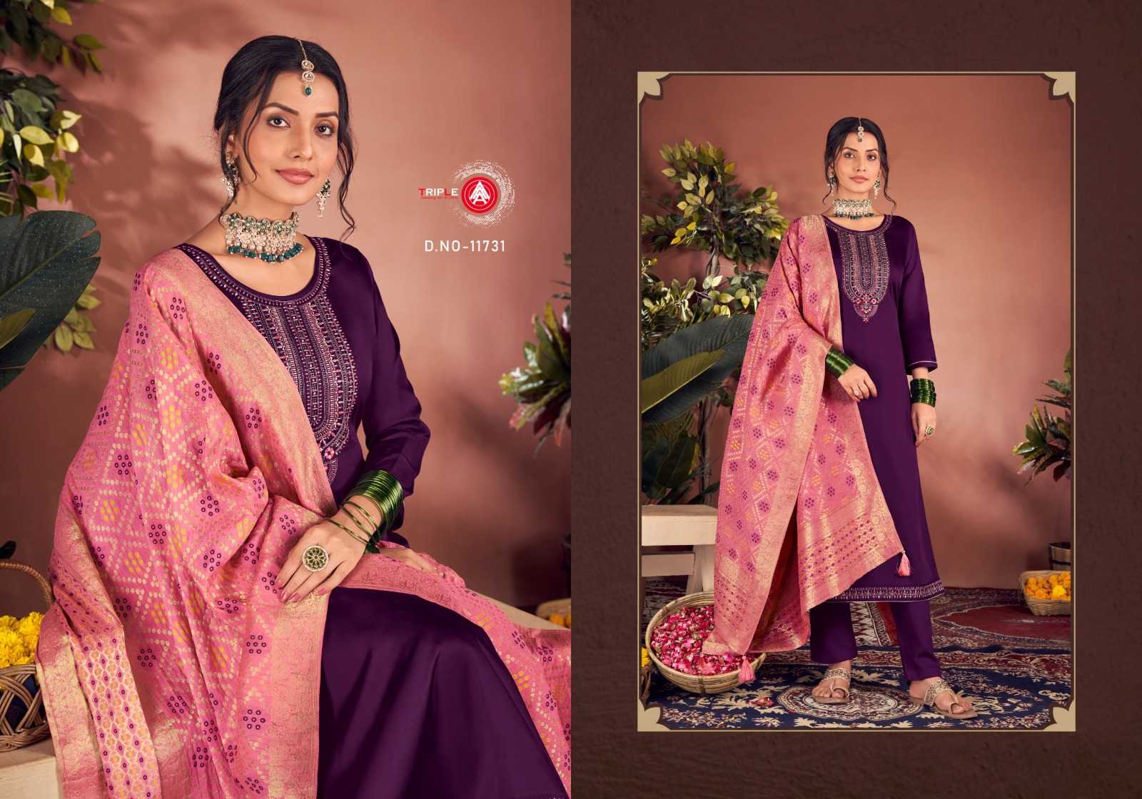 Looking for AROOS BY TRIPLE A JAM SILK COTTON BOLLYWOOD PARTY WEAR UNSTITCHED SALWAR KAMEEZ Full Catalouge at Best Price? Buy Now AROOS BY TRIPLE A JAM SILK COTTON BOLLYWOOD PARTY WEAR UNSTITCHED SALWAR KAMEEZ at Wholesale Rate of Rs 5394 with Total 6 Pcs from authroized dealer and supplier of Triple A Brand. Cost of Each piece is just only Rs 899 which is very low and affordable price to resale the product in your retail store. rrgandhi is Surat based Wholesale Supplier & Dealer of Triple A Brand. Click on Brand name to Know more about Brand's products.