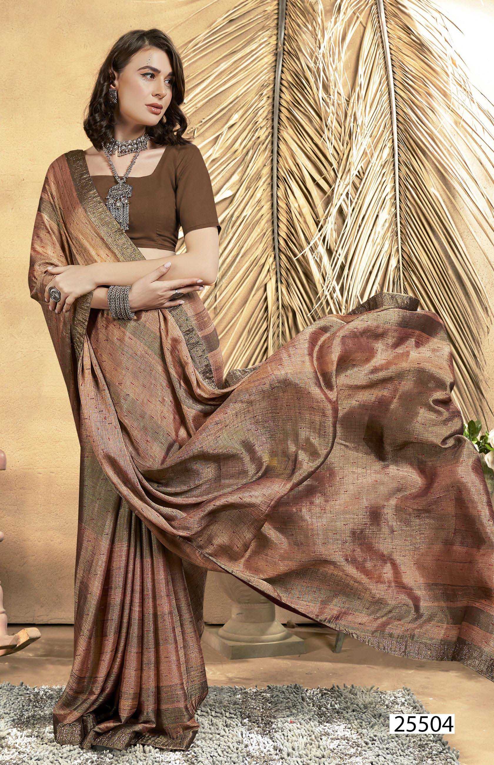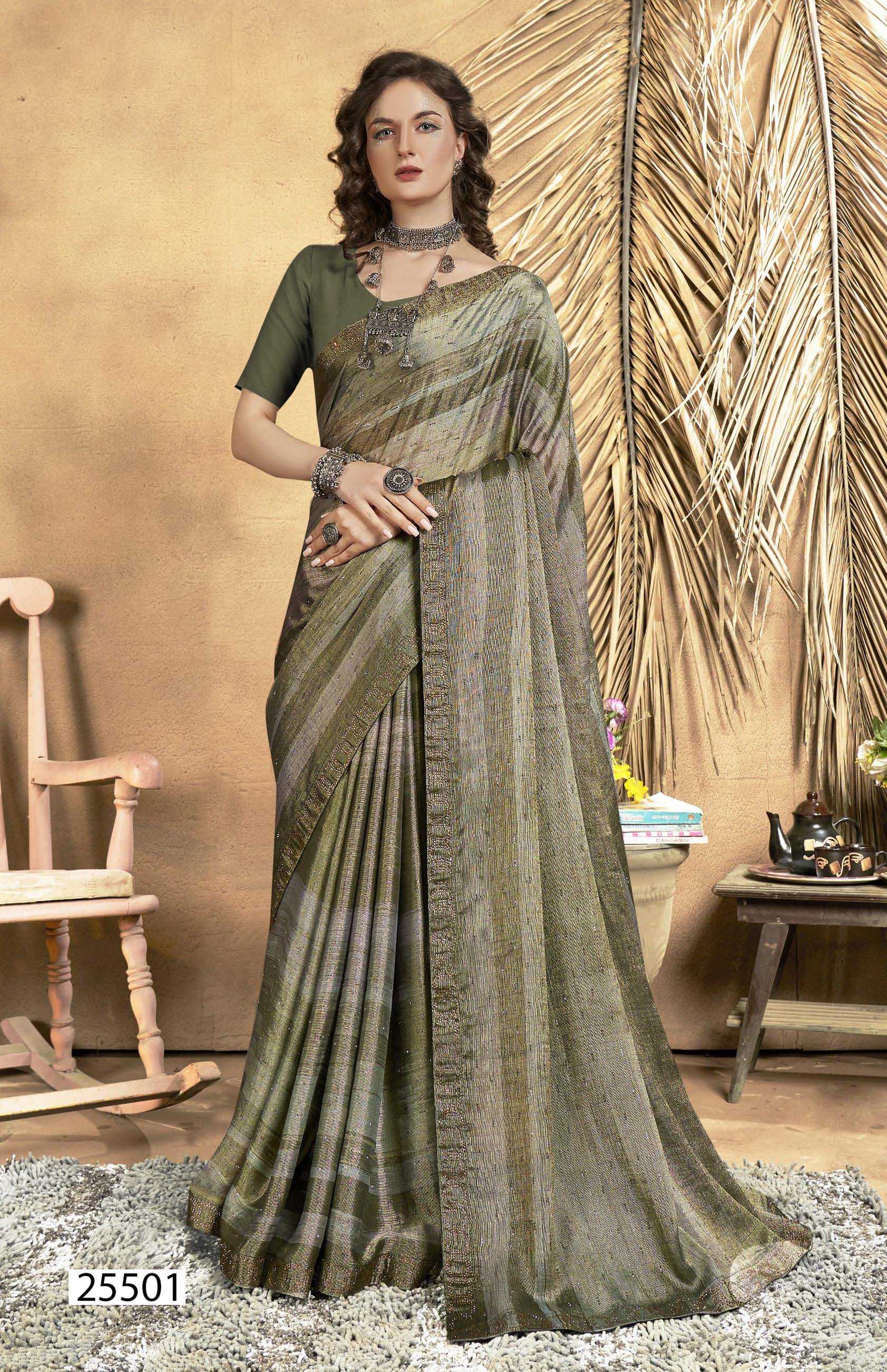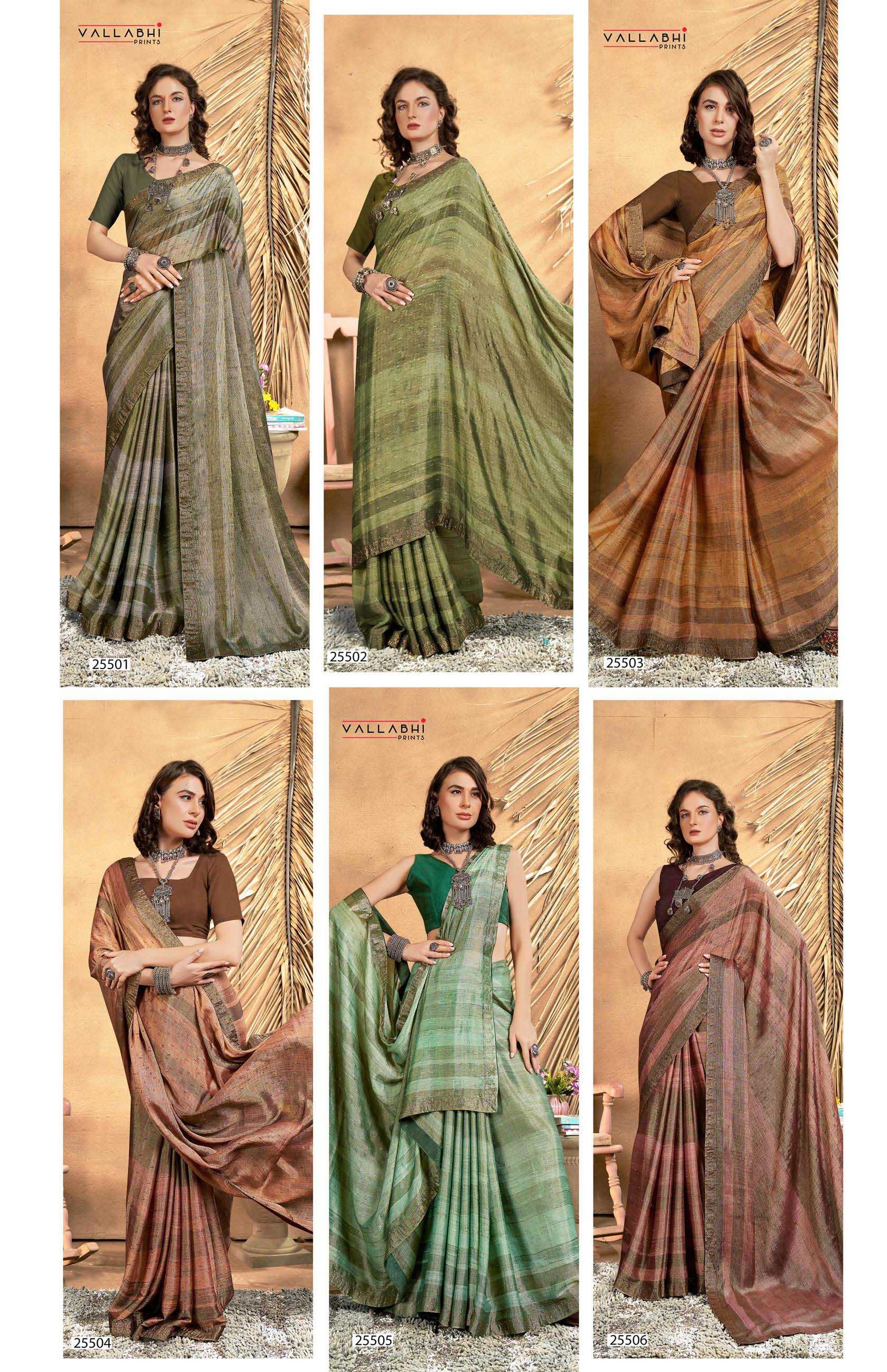 Looking for avyaan vol 3 by vallabhi prints 25501-25506 brasso swarovski ethnic style saree exports Full Catalouge at Best Price? Buy Now avyaan vol 3 by vallabhi prints 25501-25506 brasso swarovski ethnic style saree exports at Wholesale Rate of Rs 7080 with Total 6 Pcs from authroized dealer and supplier of Vallabhi Prints Brand. Cost of Each piece is just only Rs 1180 which is very low and affordable price to resale the product in your retail store. rrgandhi is Surat based Wholesale Supplier & Dealer of Vallabhi Prints Brand. Click on Brand name to Know more about Brand's products.