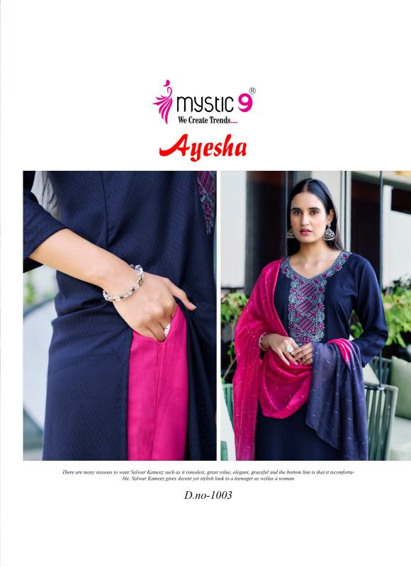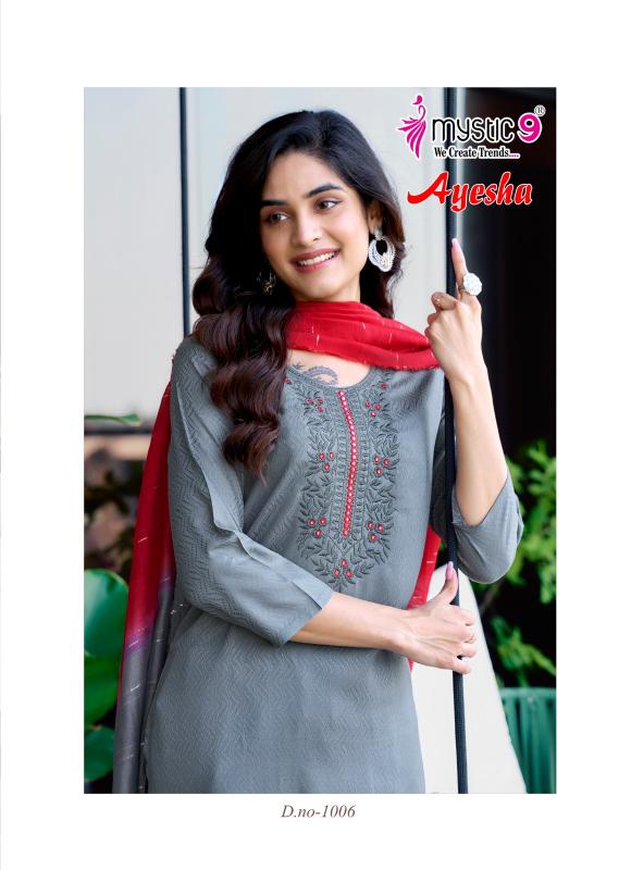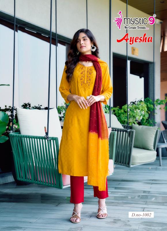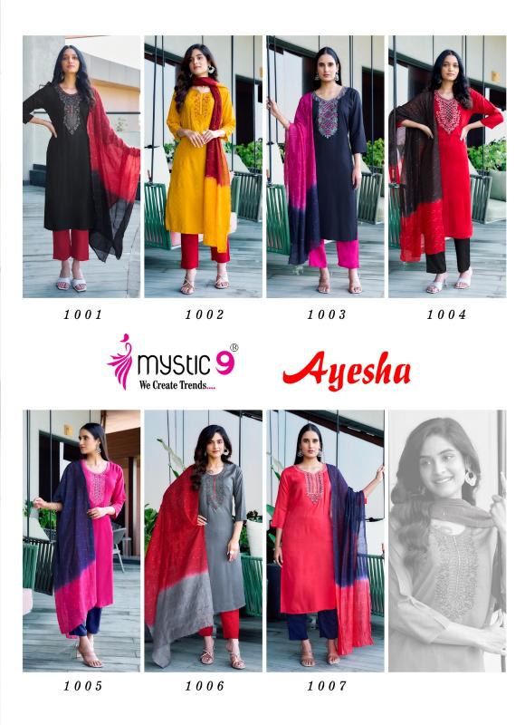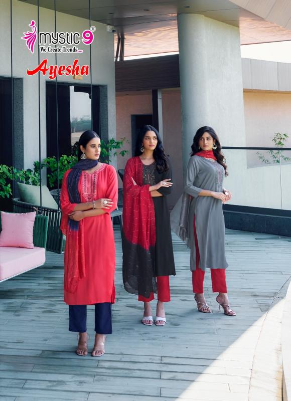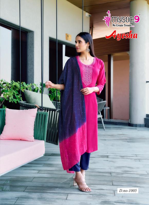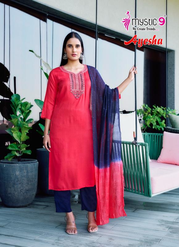 Looking for AYESHA VOL 1 BY MYSTIC 9 READYMADE DRESS Full Catalouge at Best Price? Buy Now AYESHA VOL 1 BY MYSTIC 9 READYMADE DRESS at Wholesale Rate of Rs 4095 with Total 7 Pcs from authroized dealer and supplier of Mystic9 Brand. Cost of Each piece is just only Rs 585 which is very low and affordable price to resale the product in your retail store. rrgandhi is Surat based Wholesale Supplier & Dealer of Mystic9 Brand. Click on Brand name to Know more about Brand's products.