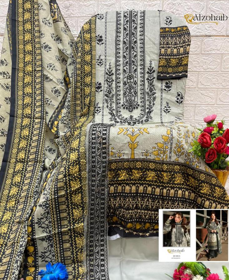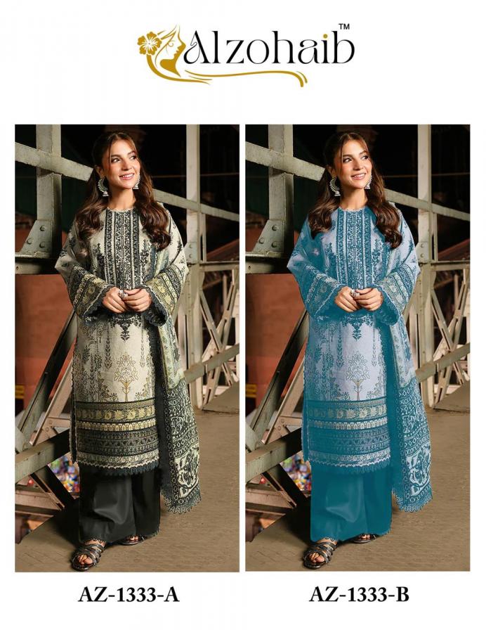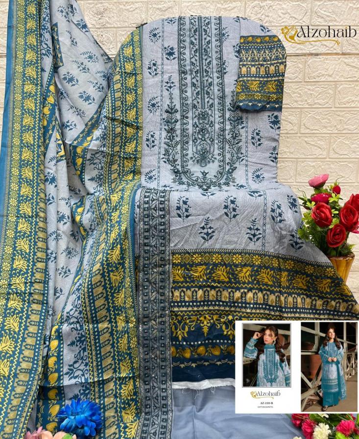 Looking for AZ 1333AB BY ALZOHAIB COTTON UNIQUE COLOURS PAKISTANI SUITS Full Catalouge at Best Price? Buy Now AZ 1333AB BY ALZOHAIB COTTON UNIQUE COLOURS PAKISTANI SUITS at Wholesale Rate of Rs 1150 with Total 2 Pcs from authroized dealer and supplier of Al Zohaib Textile Brand. Cost of Each piece is just only Rs 575 which is very low and affordable price to resale the product in your retail store. rrgandhi is Surat based Wholesale Supplier & Dealer of Al Zohaib Textile Brand. Click on Brand name to Know more about Brand's products.