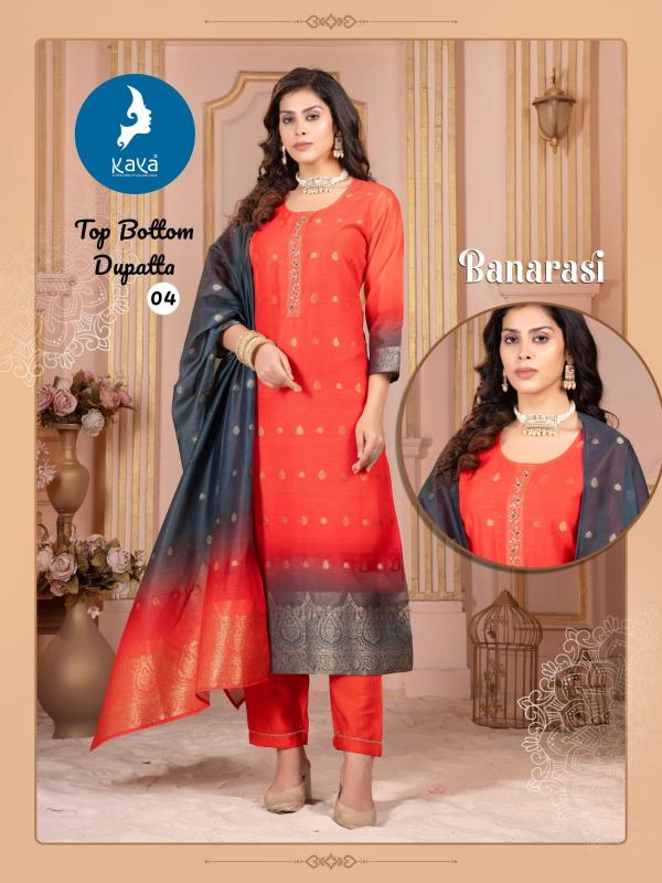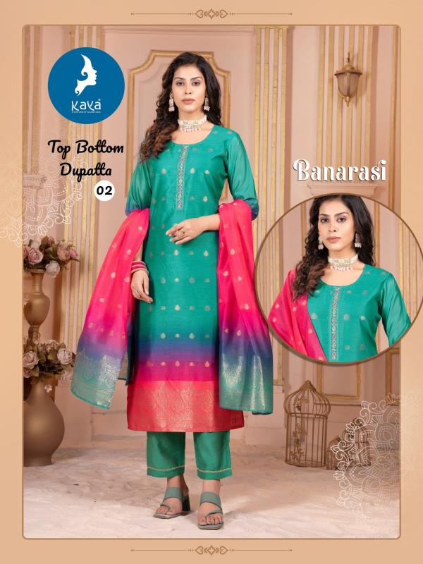 Looking for banarasi by kaya fullstitch big size chanderi jacquard suits Full Catalouge at Best Price? Buy Now banarasi by kaya fullstitch big size chanderi jacquard suits at Wholesale Rate of Rs 6720 with Total 6 Pcs from authroized dealer and supplier of Kaya Brand. Cost of Each piece is just only Rs 1120 which is very low and affordable price to resale the product in your retail store. rrgandhi is Surat based Wholesale Supplier & Dealer of Kaya Brand. Click on Brand name to Know more about Brand's products.