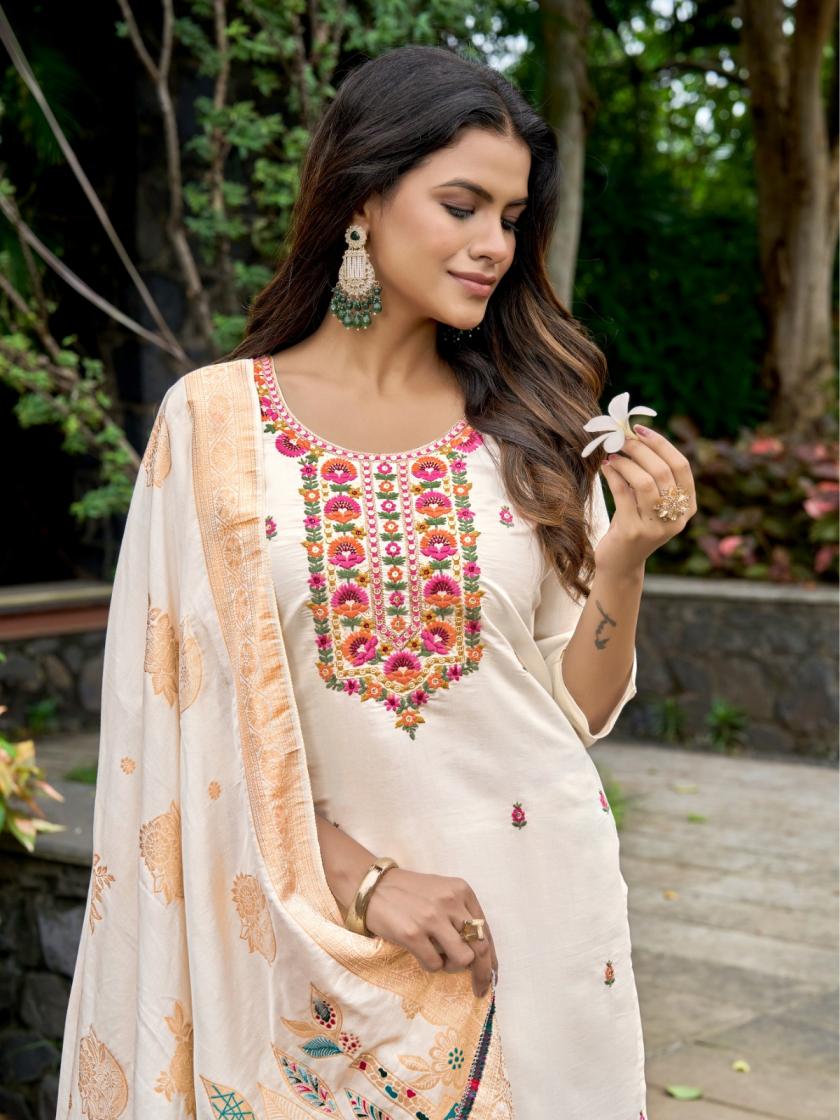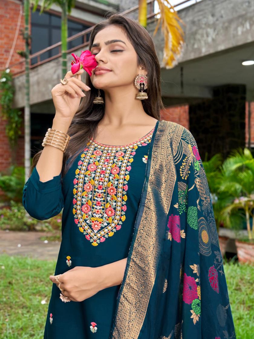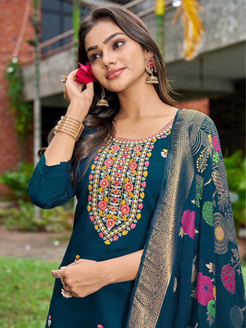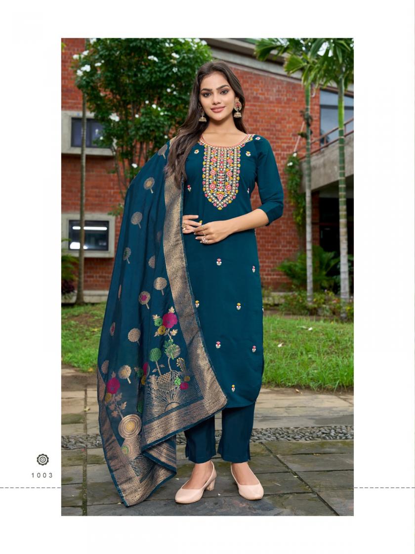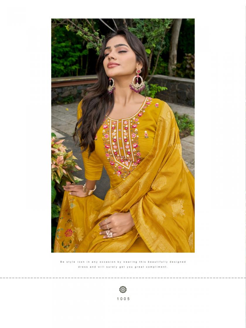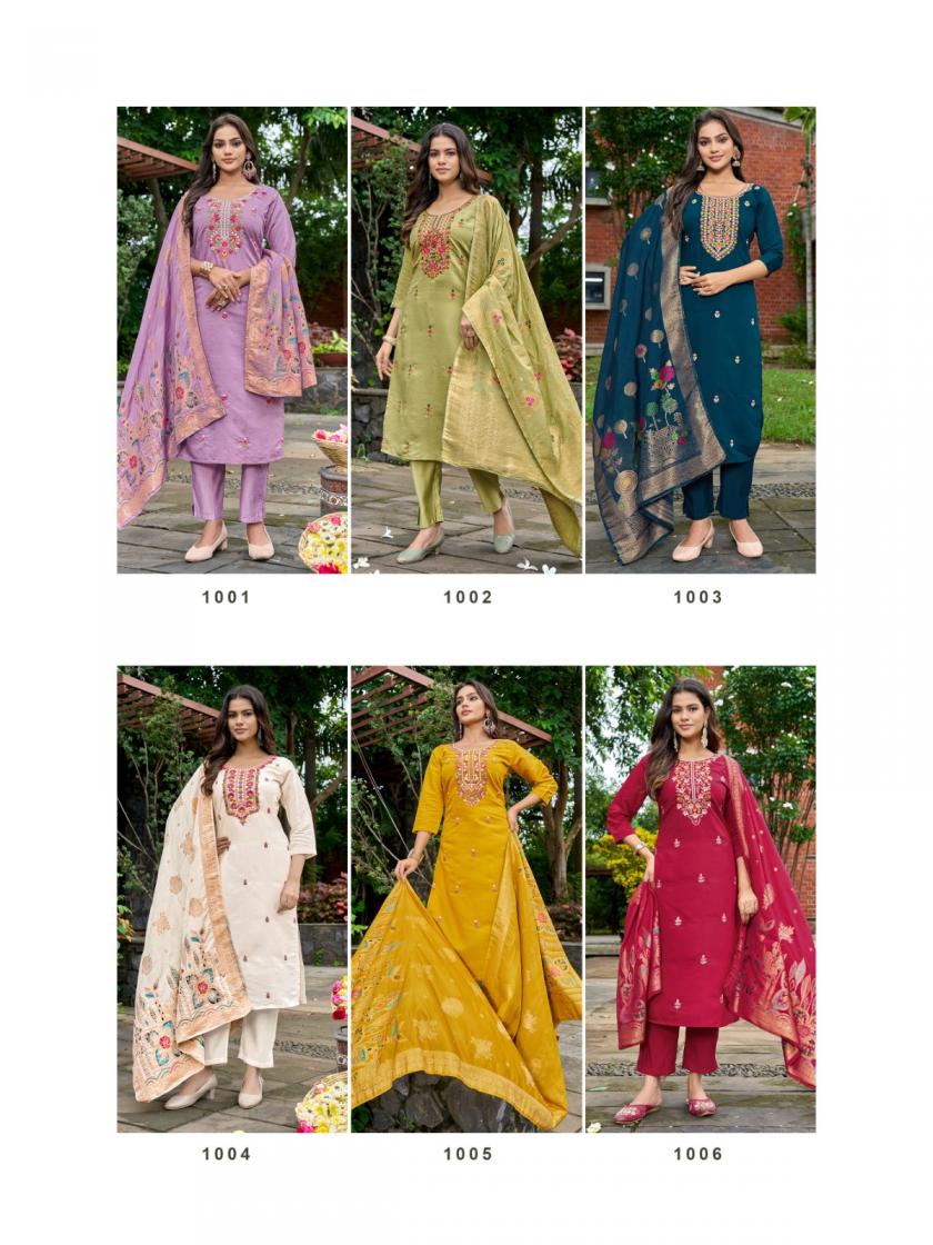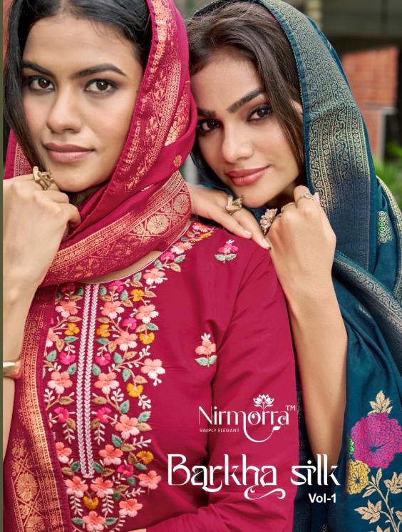 Looking for BARKHA SILK VOL 1 BY NIRMORRA READYMADE PREMIUM SILK DESIGNER SUITS Full Catalouge at Best Price? Buy Now BARKHA SILK VOL 1 BY NIRMORRA READYMADE PREMIUM SILK DESIGNER SUITS at Wholesale Rate of Rs 6594 with Total 6 Pcs from authroized dealer and supplier of Nirmorra Brand. Cost of Each piece is just only Rs 1099 which is very low and affordable price to resale the product in your retail store. rrgandhi is Surat based Wholesale Supplier & Dealer of Nirmorra Brand. Click on Brand name to Know more about Brand's products.