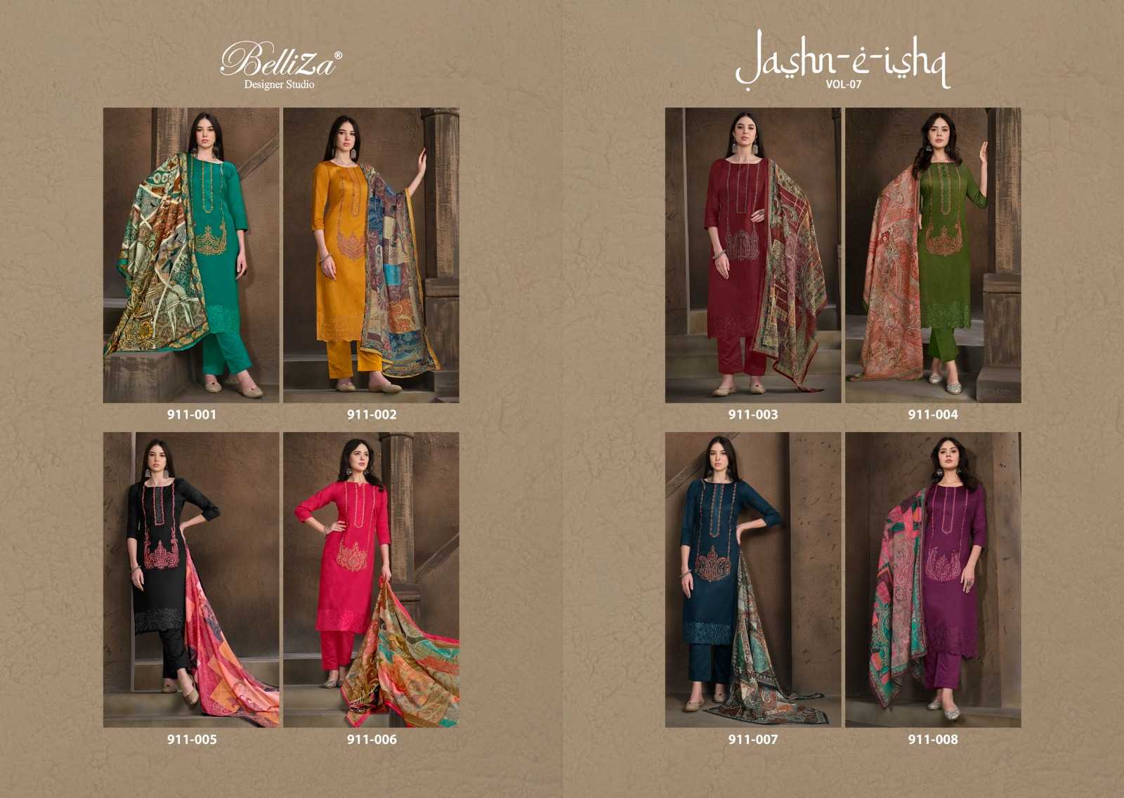 Looking for belliza designer present jashn e ishq vol 7 ethnic stylish pure heavy jam Pakistani salwar suit Full Catalouge at Best Price? Buy Now belliza designer present jashn e ishq vol 7 ethnic stylish pure heavy jam Pakistani salwar suit at Wholesale Rate of Rs 6360 with Total 8 Pcs from authroized dealer and supplier of Belliza Designer Studio Brand. Cost of Each piece is just only Rs 795 which is very low and affordable price to resale the product in your retail store. rrgandhi is Surat based Wholesale Supplier & Dealer of Belliza Designer Studio Brand. Click on Brand name to Know more about Brand's products.
