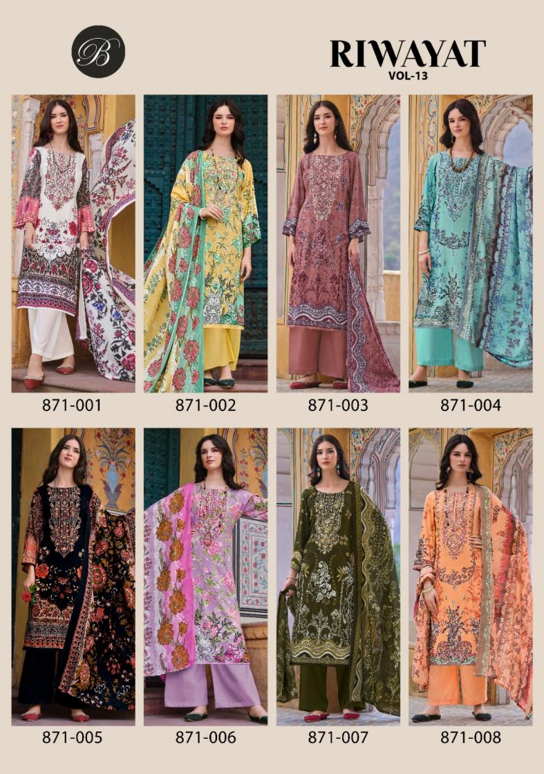 Looking for BELLIZA DESIGNER RIWAYAT VOL 13 FULL STITCH VISCOSE RAYON BIG SIZE PAKISTANI 3PCS DRESS Full Catalouge at Best Price? Buy Now BELLIZA DESIGNER RIWAYAT VOL 13 FULL STITCH VISCOSE RAYON BIG SIZE PAKISTANI 3PCS DRESS at Wholesale Rate of Rs 8200 with Total 8 Pcs from authroized dealer and supplier of Belliza Designer Studio Brand. Cost of Each piece is just only Rs 1025 which is very low and affordable price to resale the product in your retail store. rrgandhi is Surat based Wholesale Supplier & Dealer of Belliza Designer Studio Brand. Click on Brand name to Know more about Brand's products.