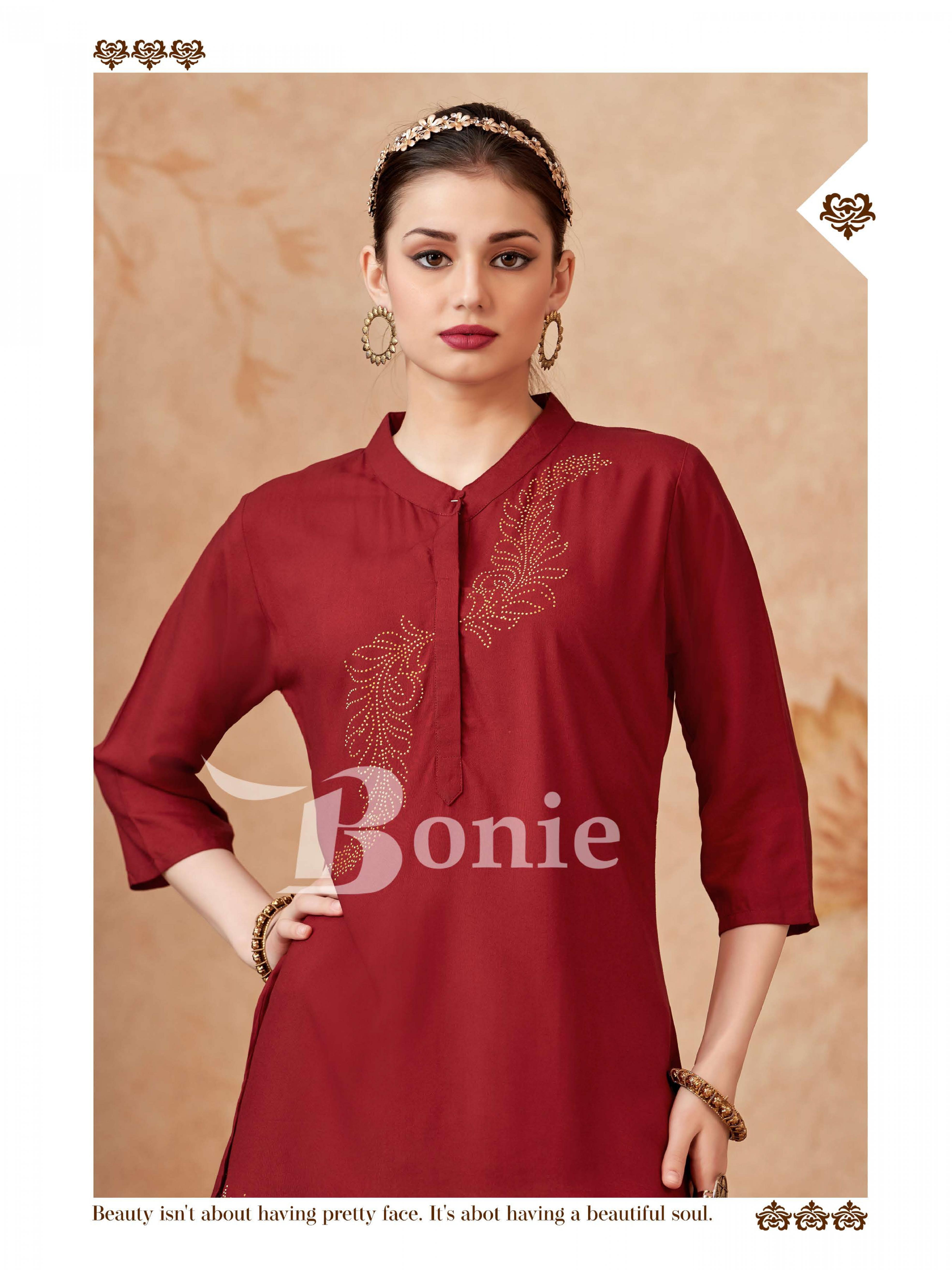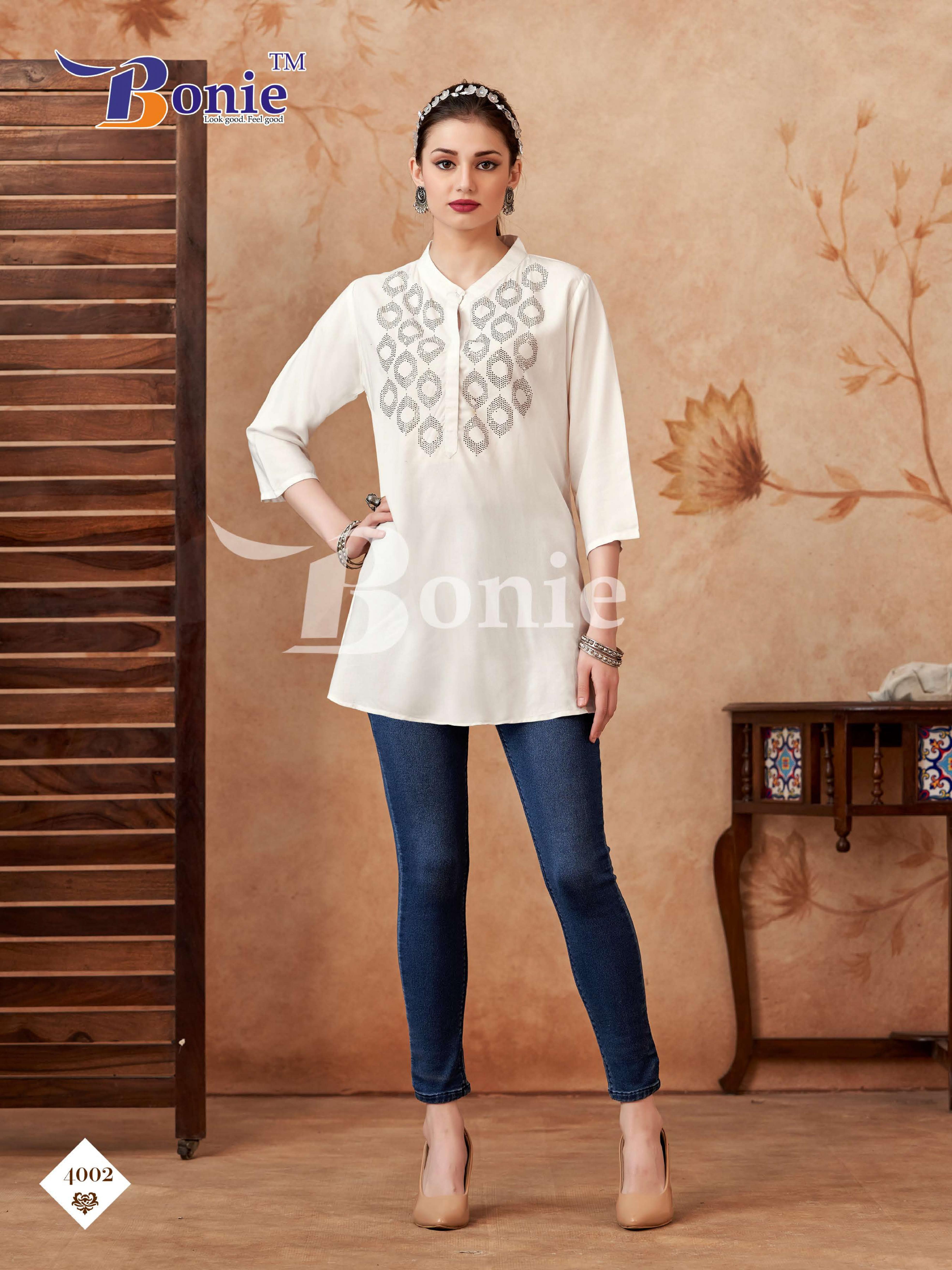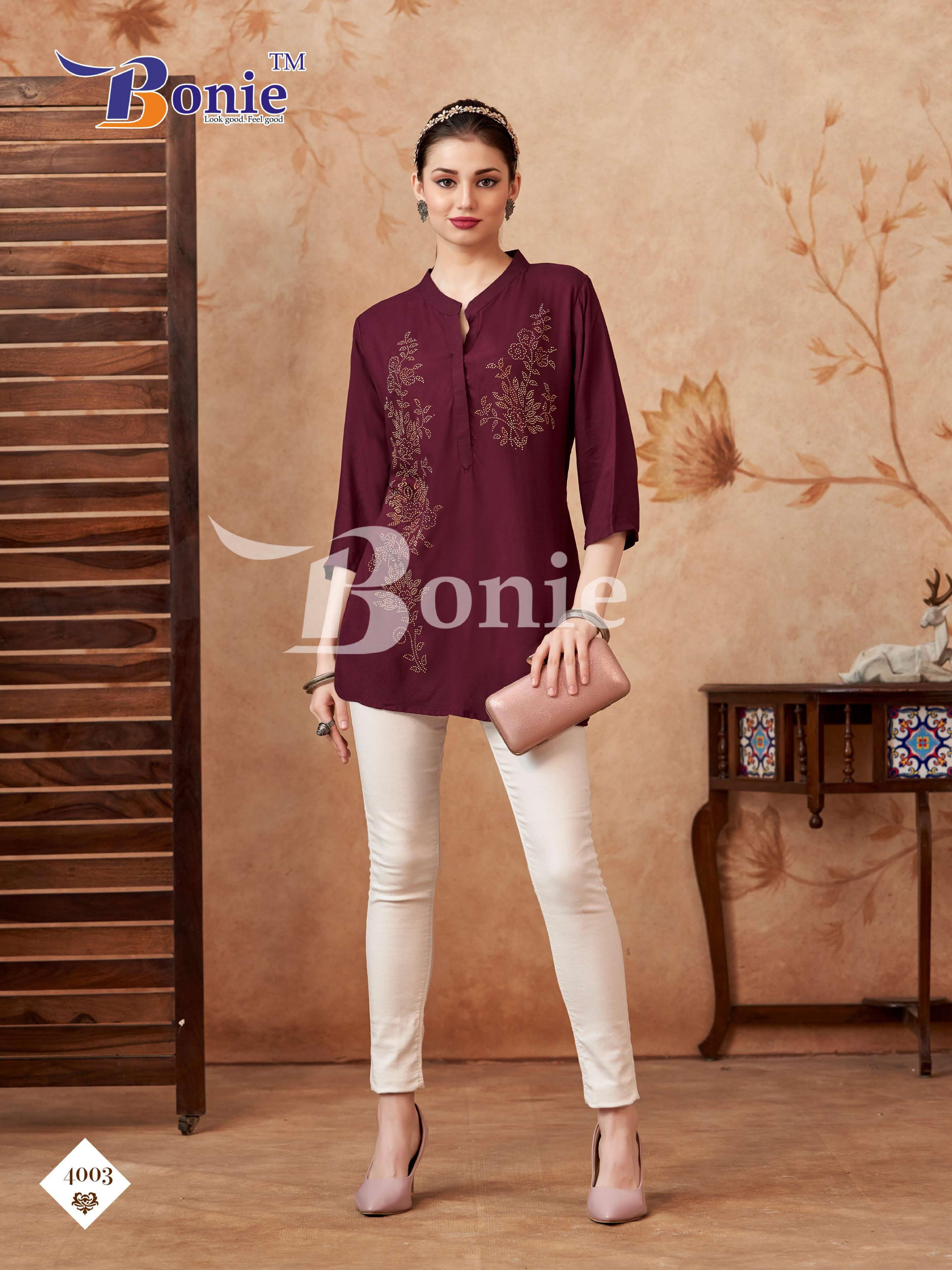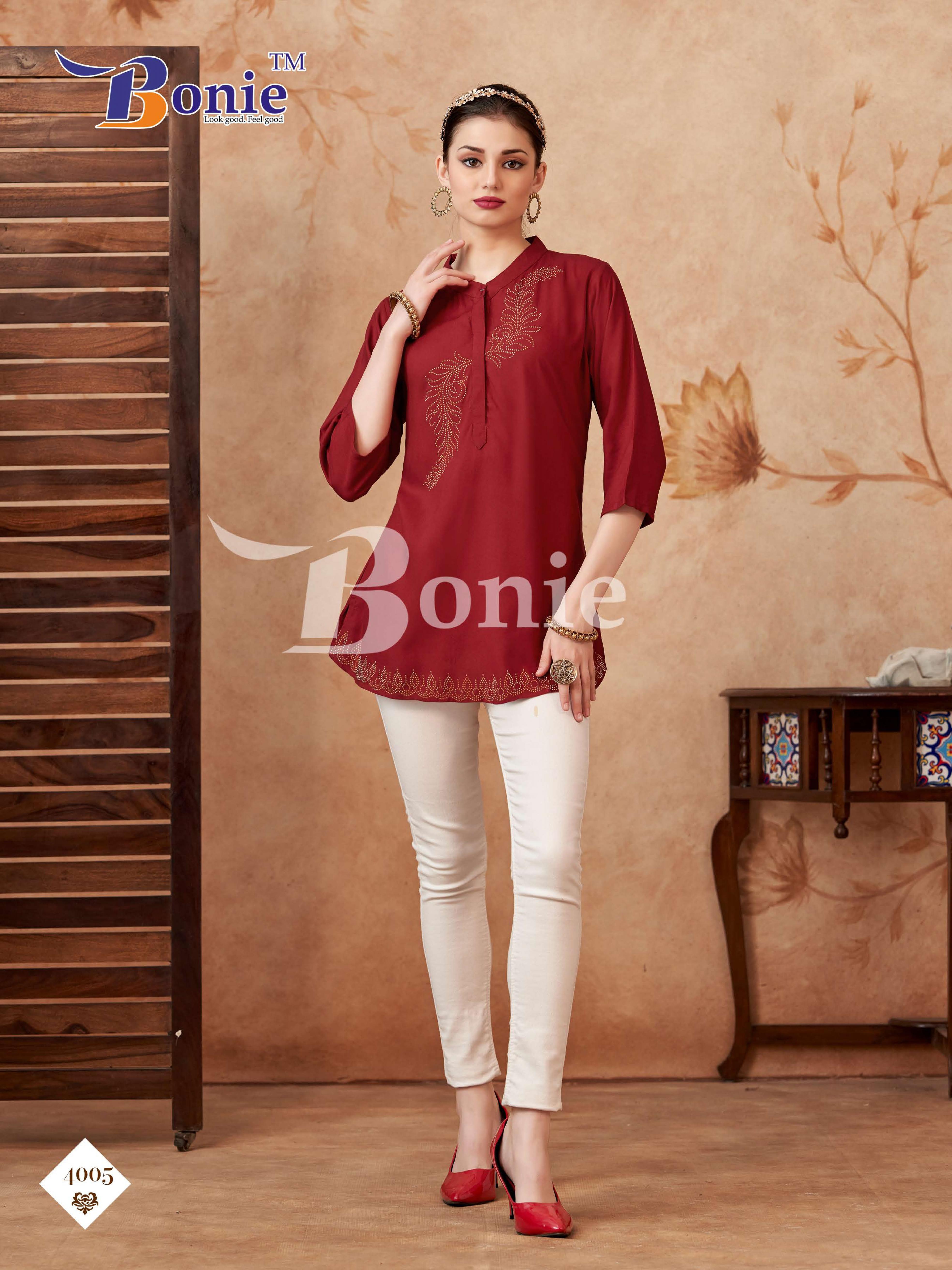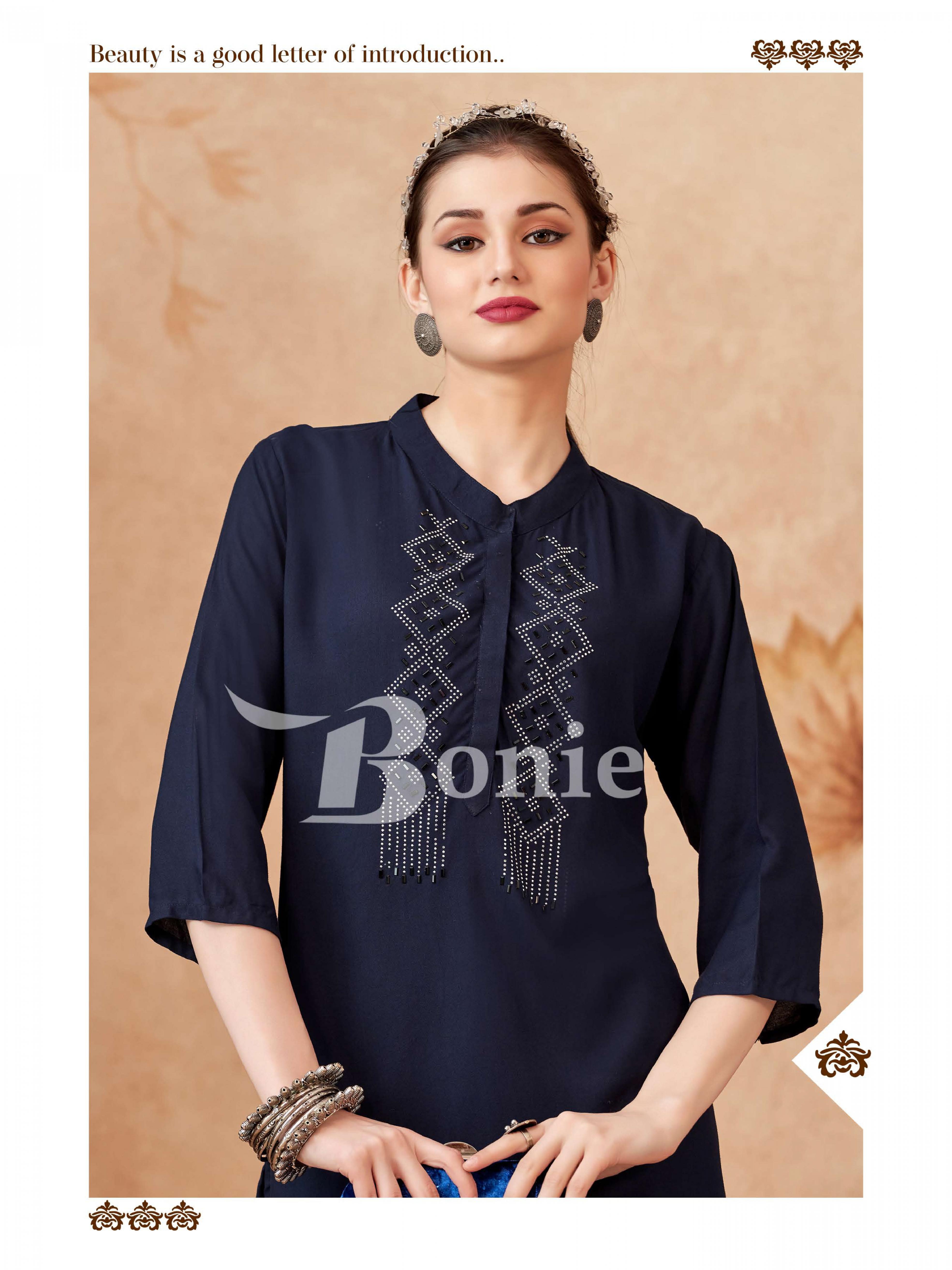 Looking for BERKHA VOL 4 BY BONIE READYMADE RAYON CLASSIC WESTERN TOPS Full Catalouge at Best Price? Buy Now BERKHA VOL 4 BY BONIE READYMADE RAYON CLASSIC WESTERN TOPS at Wholesale Rate of Rs 1470 with Total 6 Pcs from authroized dealer and supplier of Bonie Brand. Cost of Each piece is just only Rs 245 which is very low and affordable price to resale the product in your retail store. rrgandhi is Surat based Wholesale Supplier & Dealer of Bonie Brand. Click on Brand name to Know more about Brand's products.