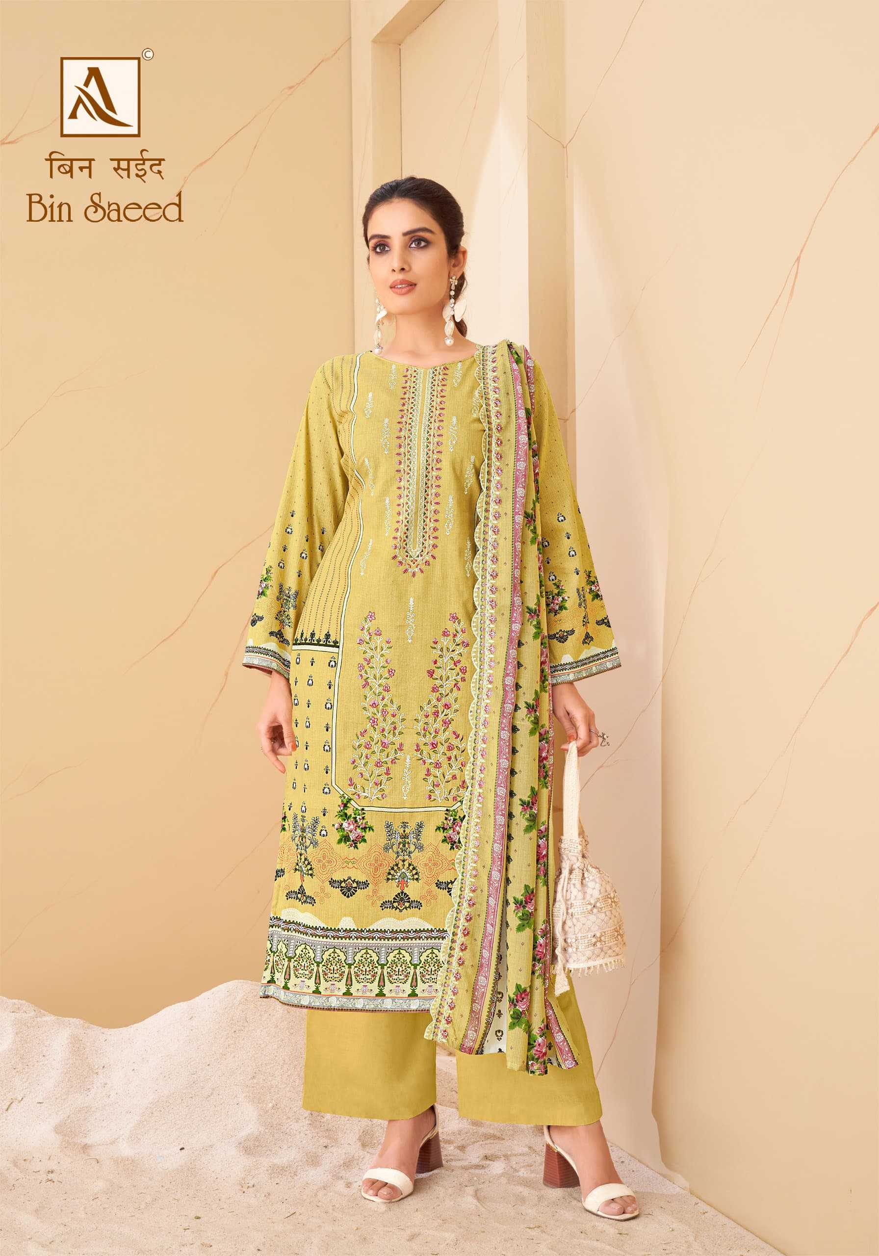 Looking for bin saeed by alok suit modern pakistani fancy embroidery work salwar suit dress material Full Catalouge at Best Price? Buy Now bin saeed by alok suit modern pakistani fancy embroidery work salwar suit dress material at Wholesale Rate of Rs 4320 with Total 6 Pcs from authroized dealer and supplier of Alok Suit Brand. Cost of Each piece is just only Rs 720 which is very low and affordable price to resale the product in your retail store. rrgandhi is Surat based Wholesale Supplier & Dealer of Alok Suit Brand. Click on Brand name to Know more about Brand's products.