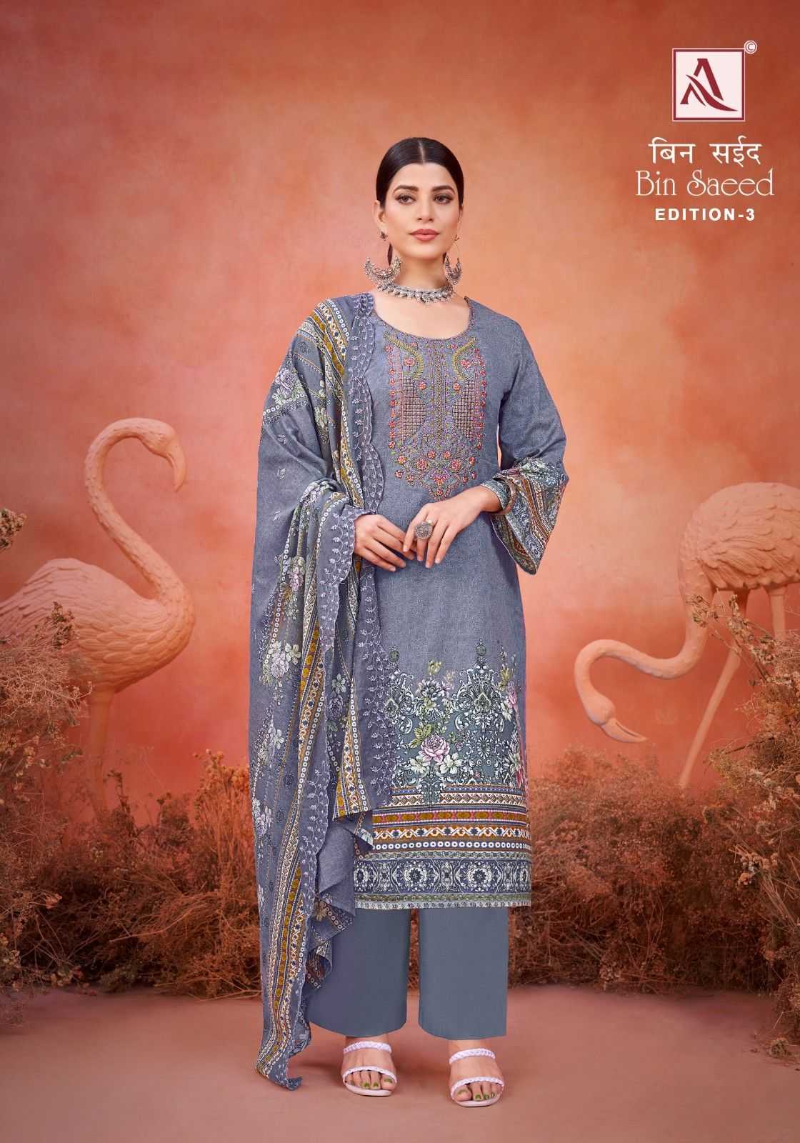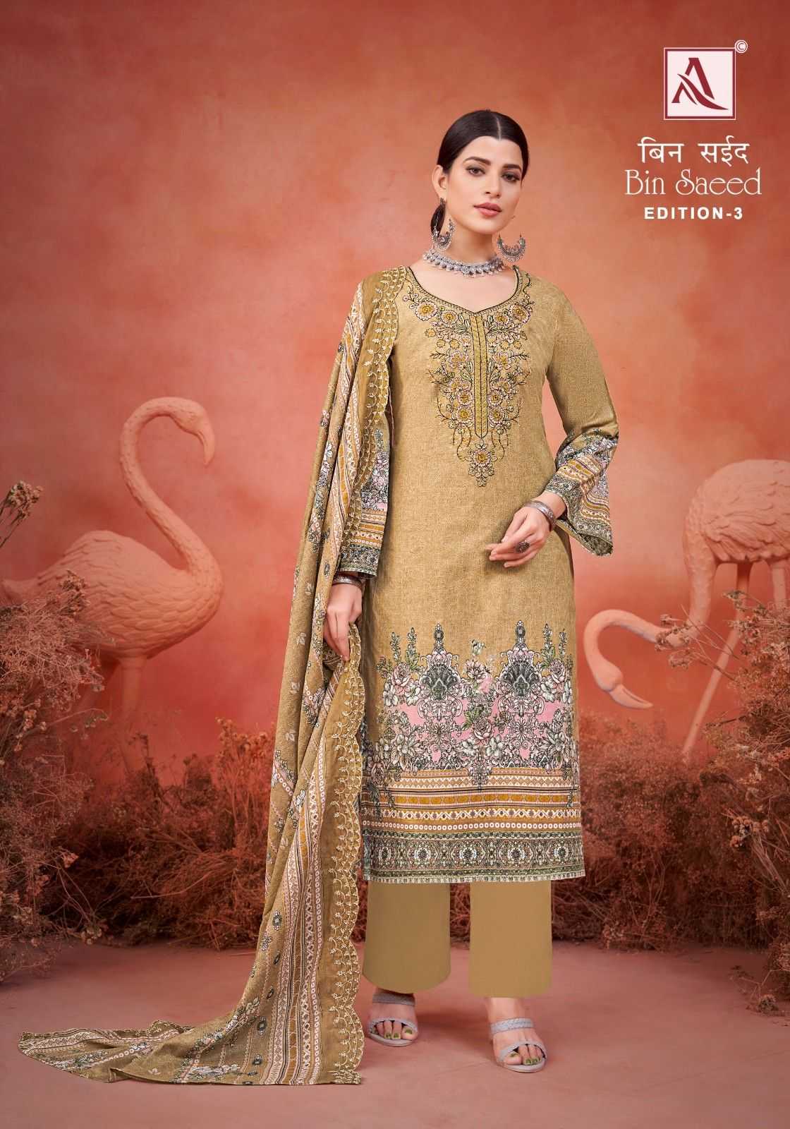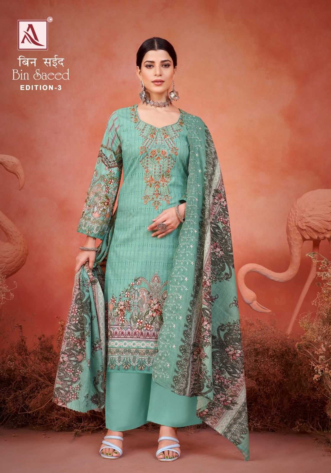 Looking for bin saeed vol 3 alok suits fancy embroidery work pakistani salwar suits Full Catalouge at Best Price? Buy Now bin saeed vol 3 alok suits fancy embroidery work pakistani salwar suits at Wholesale Rate of Rs 5760 with Total 8 Pcs from authroized dealer and supplier of Alok Suit Brand. Cost of Each piece is just only Rs 720 which is very low and affordable price to resale the product in your retail store. rrgandhi is Surat based Wholesale Supplier & Dealer of Alok Suit Brand. Click on Brand name to Know more about Brand's products.