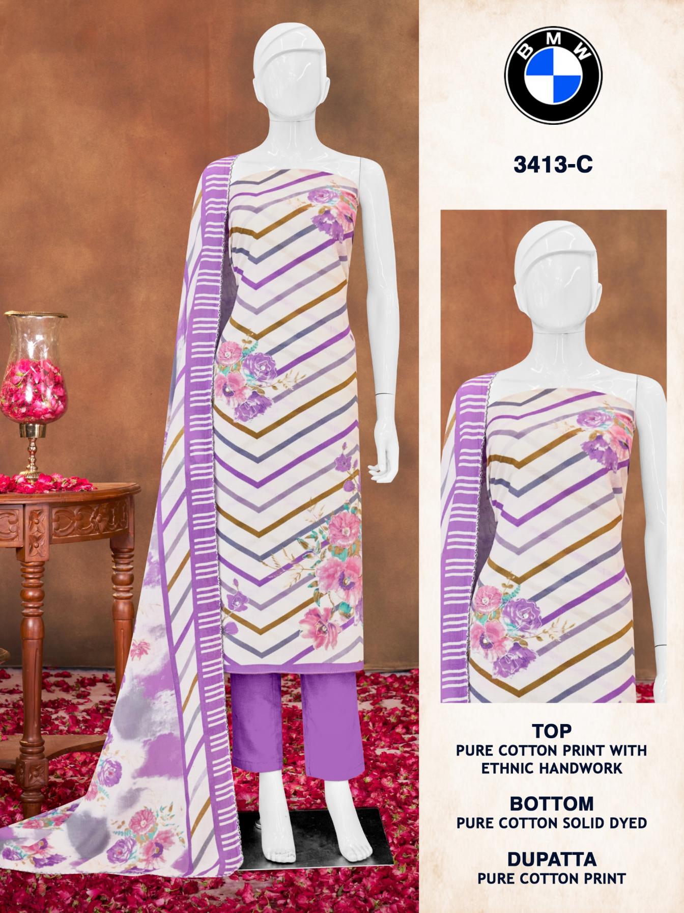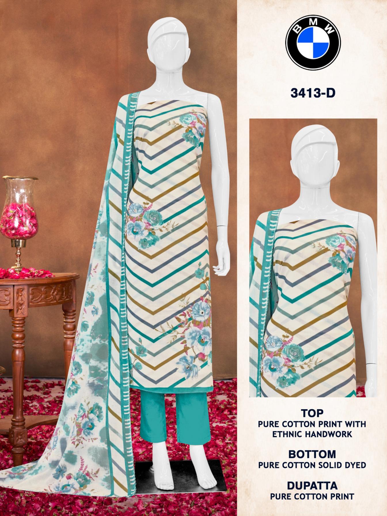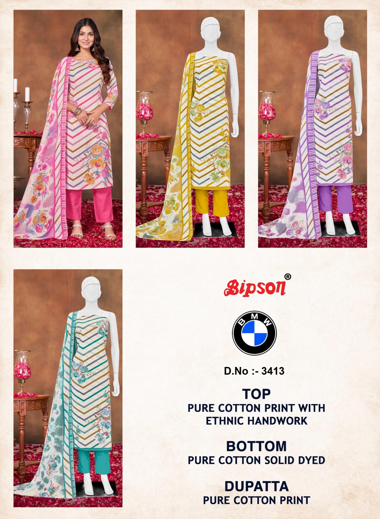 Looking for BIPSON PRINTS BMW 3413 COTTON FANCY SUIT FOR WOMEN Full Catalouge at Best Price? Buy Now BIPSON PRINTS BMW 3413 COTTON FANCY SUIT FOR WOMEN at Wholesale Rate of Rs 1980 with Total 4 Pcs from authroized dealer and supplier of Bipson Fashion Brand. Cost of Each piece is just only Rs 495 which is very low and affordable price to resale the product in your retail store. rrgandhi is Surat based Wholesale Supplier & Dealer of Bipson Fashion Brand. Click on Brand name to Know more about Brand's products.
