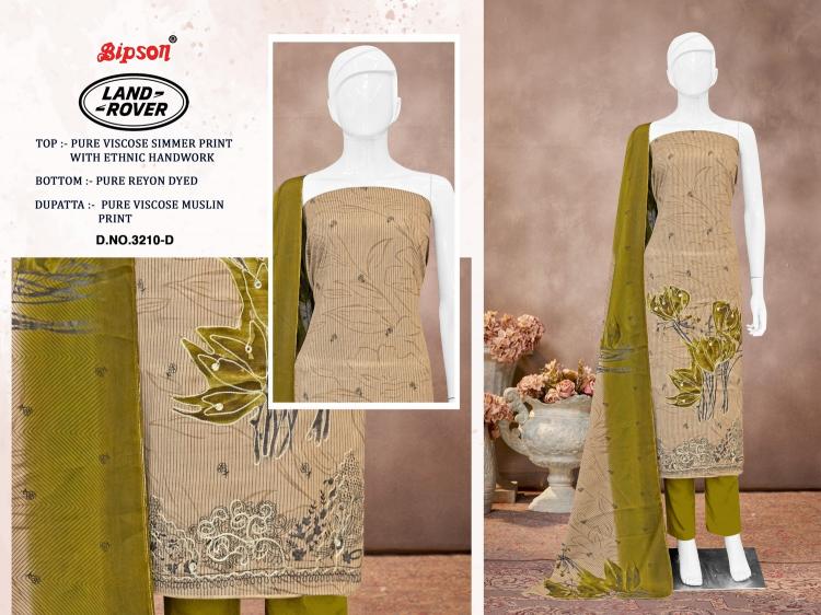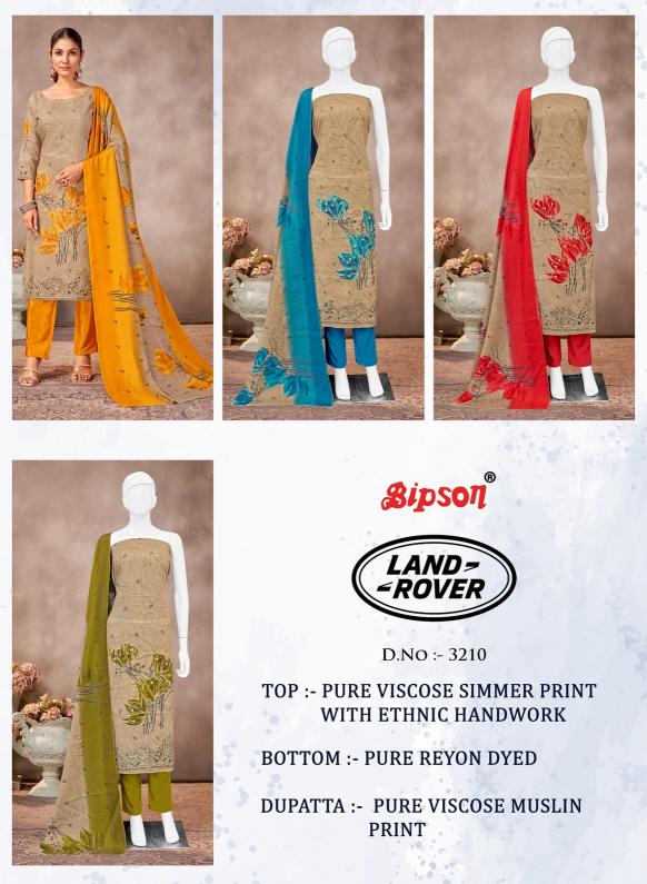 Looking for bipson prints land rover 3210 viscose simmer unstitch 3pcs dress Full Catalouge at Best Price? Buy Now bipson prints land rover 3210 viscose simmer unstitch 3pcs dress at Wholesale Rate of Rs 3140 with Total 4 Pcs from authroized dealer and supplier of Bipson Fashion Brand. Cost of Each piece is just only Rs 785 which is very low and affordable price to resale the product in your retail store. rrgandhi is Surat based Wholesale Supplier & Dealer of Bipson Fashion Brand. Click on Brand name to Know more about Brand's products.