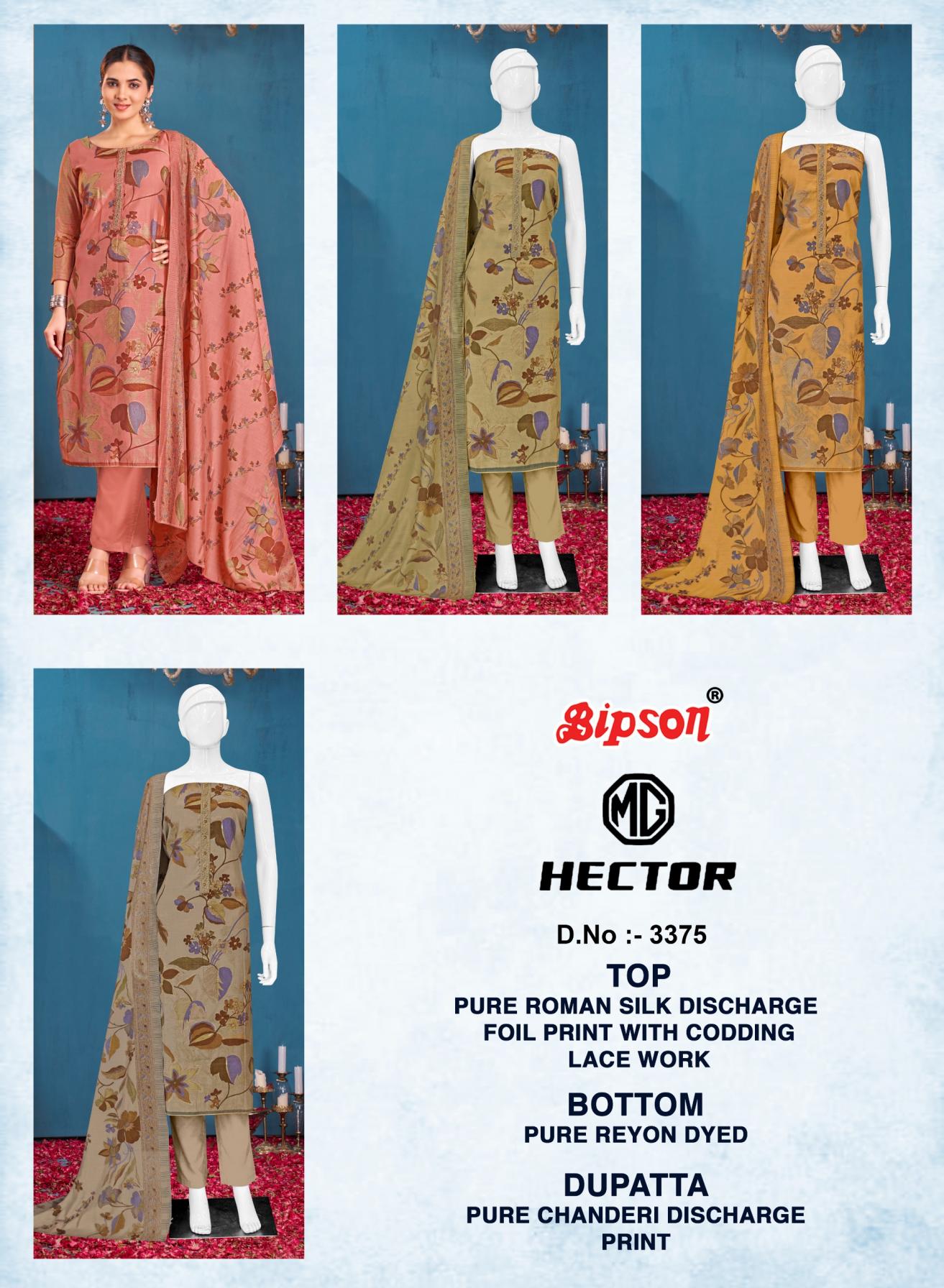Looking for BIPSON PRINTS MG HECTOR 3375 ROMAN SILK PRETTY 3PCS DRESS Full Catalouge at Best Price? Buy Now BIPSON PRINTS MG HECTOR 3375 ROMAN SILK PRETTY 3PCS DRESS at Wholesale Rate of Rs 2780 with Total 4 Pcs from authroized dealer and supplier of Bipson Fashion Brand. Cost of Each piece is just only Rs 695 which is very low and affordable price to resale the product in your retail store. rrgandhi is Surat based Wholesale Supplier & Dealer of Bipson Fashion Brand. Click on Brand name to Know more about Brand's products.