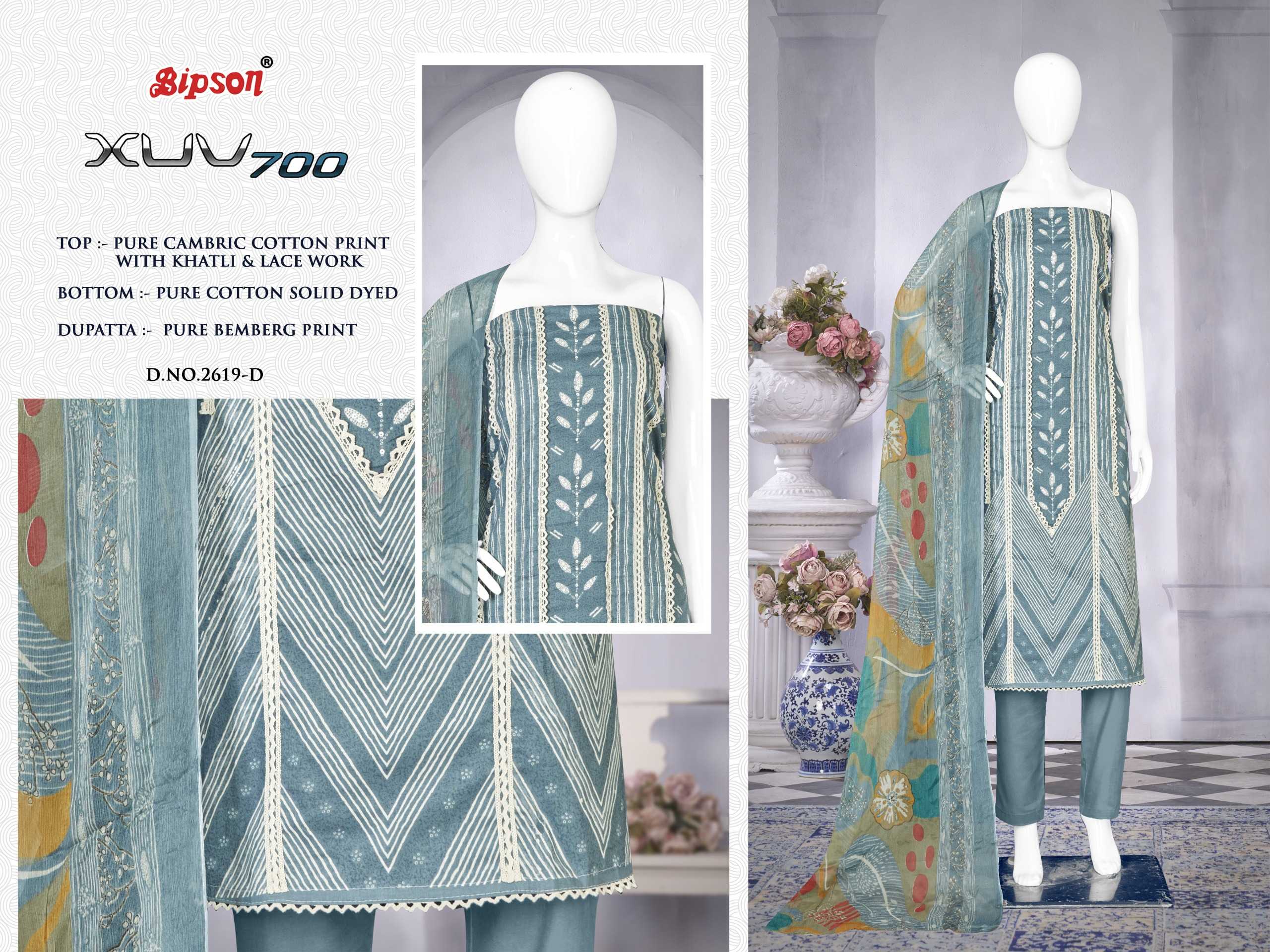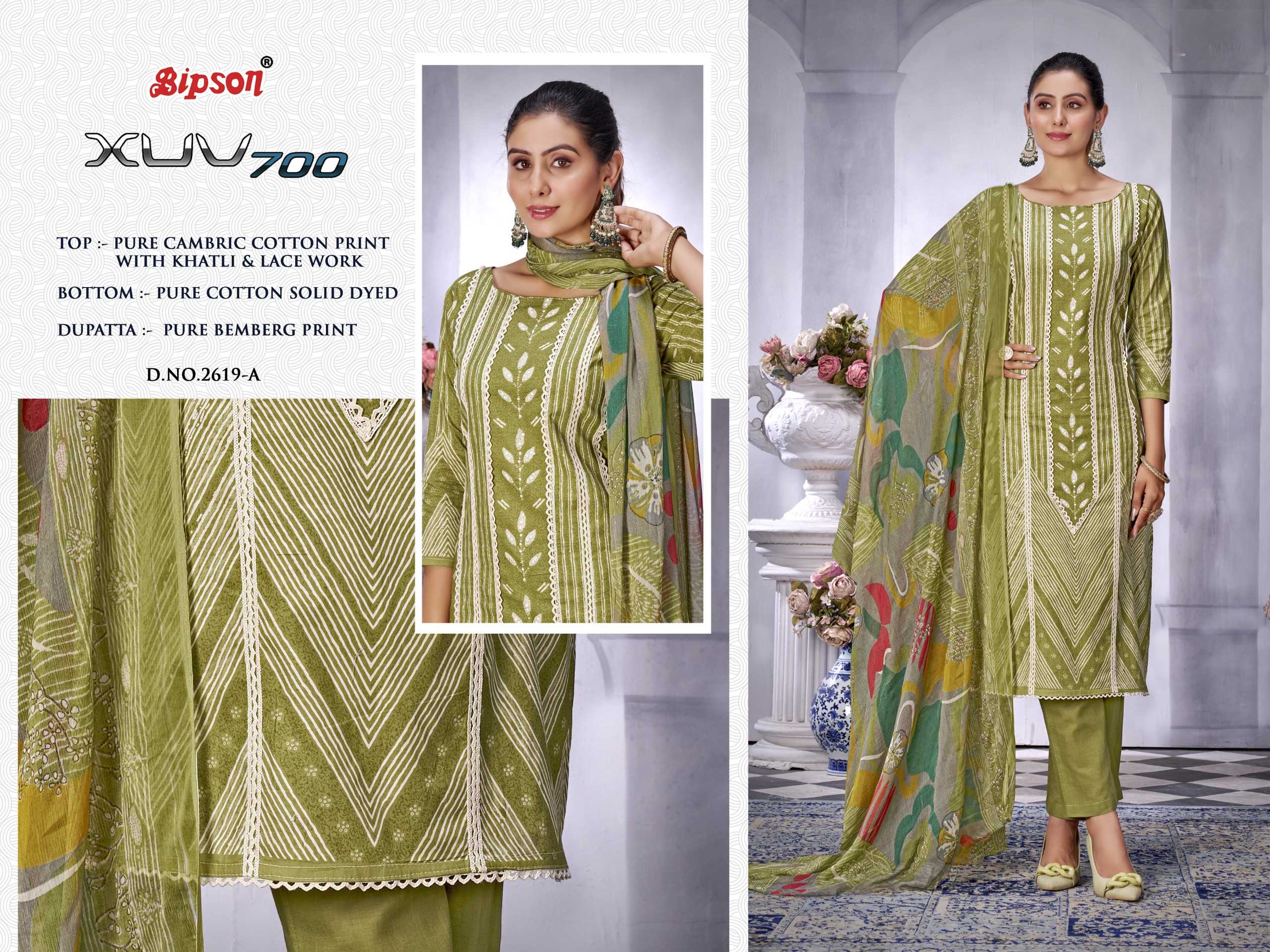 Looking for bipson prints presents xuv 2619 stylish unstitch cambric cotton salwar kameez Full Catalouge at Best Price? Buy Now bipson prints presents xuv 2619 stylish unstitch cambric cotton salwar kameez at Wholesale Rate of Rs 2900 with Total 4 Pcs from authroized dealer and supplier of Bipson Fashion Brand. Cost of Each piece is just only Rs 725 which is very low and affordable price to resale the product in your retail store. rrgandhi is Surat based Wholesale Supplier & Dealer of Bipson Fashion Brand. Click on Brand name to Know more about Brand's products.