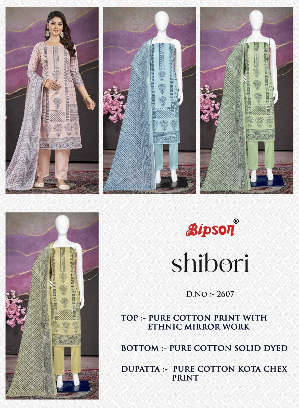 Looking for bipson prints shibori 2607 launch cotton print ethinic work 3pcs dress materal Full Catalouge at Best Price? Buy Now bipson prints shibori 2607 launch cotton print ethinic work 3pcs dress materal at Wholesale Rate of Rs 2100 with Total 4 Pcs from authroized dealer and supplier of Bipson Fashion Brand. Cost of Each piece is just only Rs 525 which is very low and affordable price to resale the product in your retail store. rrgandhi is Surat based Wholesale Supplier & Dealer of Bipson Fashion Brand. Click on Brand name to Know more about Brand's products.