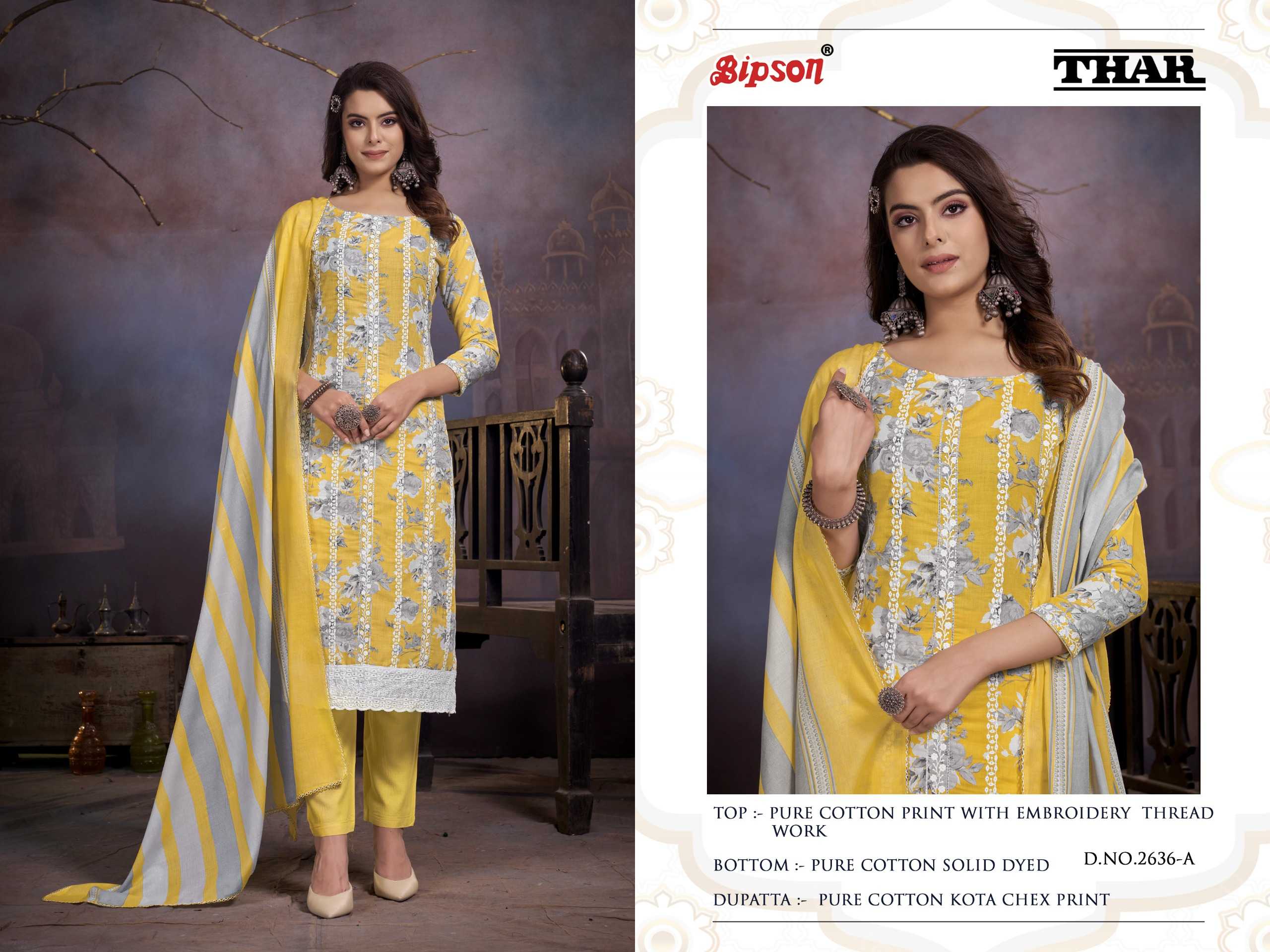 Looking for bipson tahar 2636 fancy regular use cotton unstitch salwar kameez Full Catalouge at Best Price? Buy Now bipson tahar 2636 fancy regular use cotton unstitch salwar kameez at Wholesale Rate of Rs 2220 with Total 4 Pcs from authroized dealer and supplier of Bipson Fashion Brand. Cost of Each piece is just only Rs 555 which is very low and affordable price to resale the product in your retail store. rrgandhi is Surat based Wholesale Supplier & Dealer of Bipson Fashion Brand. Click on Brand name to Know more about Brand's products.