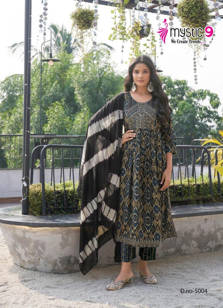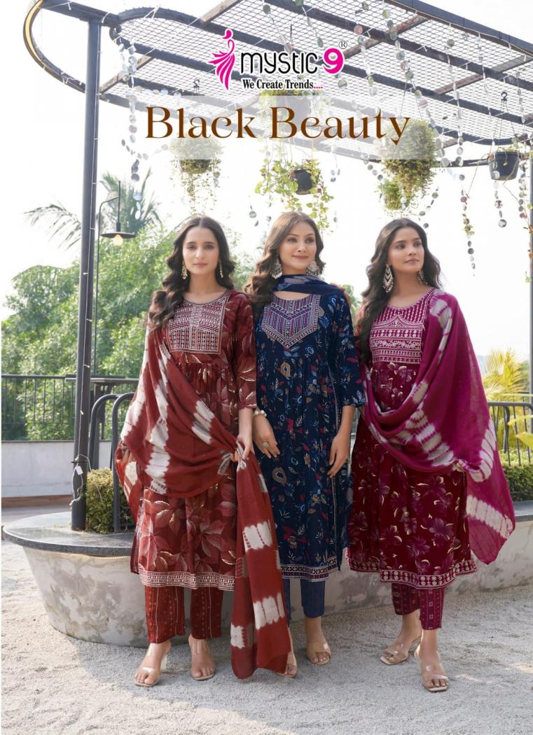 Looking for black beauty vol 5 by mystic9 full stitch rayon hit design fancy 3pcs dress Full Catalouge at Best Price? Buy Now black beauty vol 5 by mystic9 full stitch rayon hit design fancy 3pcs dress at Wholesale Rate of Rs 5480 with Total 8 Pcs from authroized dealer and supplier of Mystic9 Brand. Cost of Each piece is just only Rs 685 which is very low and affordable price to resale the product in your retail store. rrgandhi is Surat based Wholesale Supplier & Dealer of Mystic9 Brand. Click on Brand name to Know more about Brand's products.