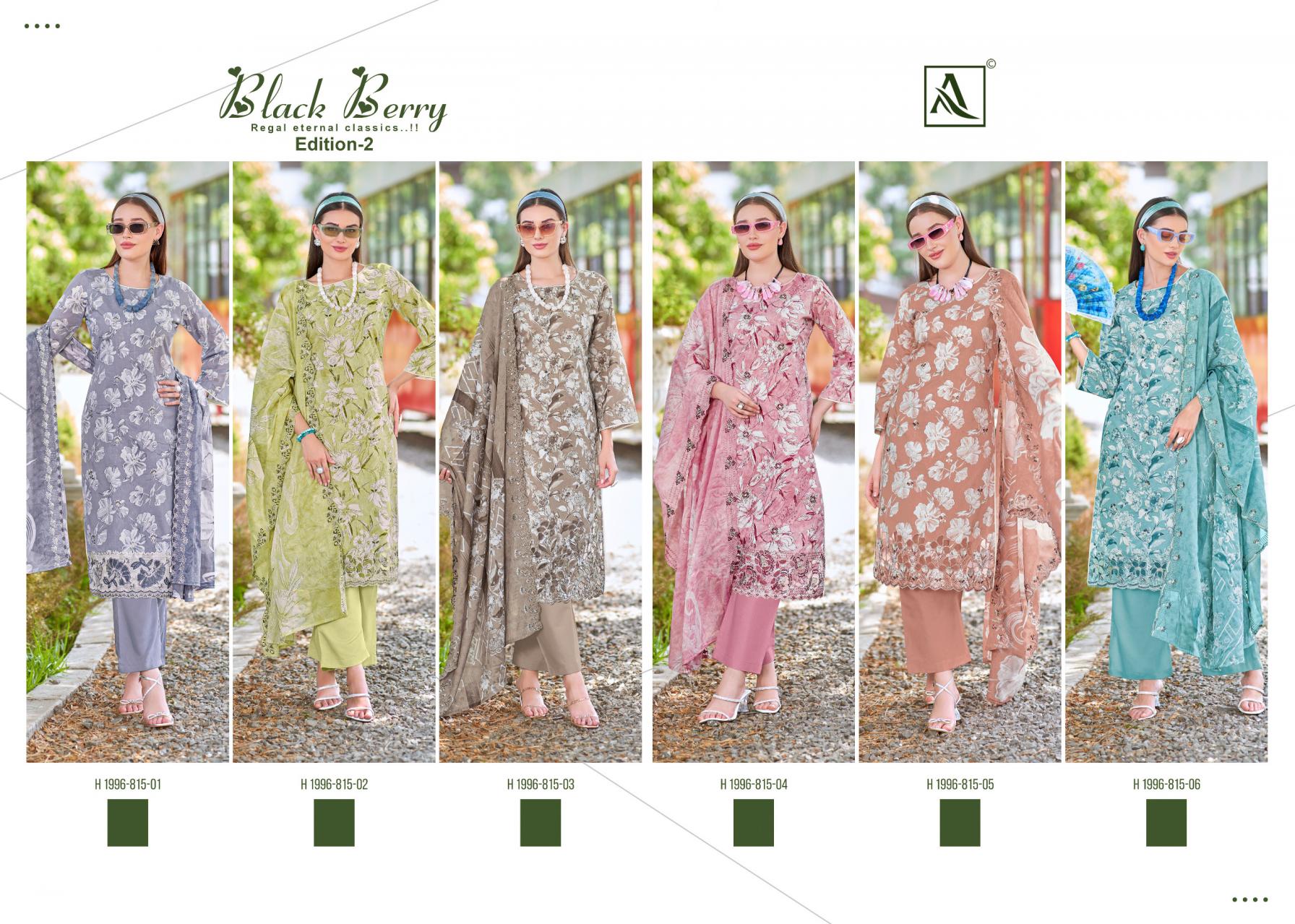 Looking for BLACK BERRY 2 BY ALOK SUITS UNSTITCH COTTON SUIT Full Catalouge at Best Price? Buy Now BLACK BERRY 2 BY ALOK SUITS UNSTITCH COTTON SUIT at Wholesale Rate of Rs 5220 with Total 6 Pcs from authroized dealer and supplier of Alok Suit Brand. Cost of Each piece is just only Rs 870 which is very low and affordable price to resale the product in your retail store. rrgandhi is Surat based Wholesale Supplier & Dealer of Alok Suit Brand. Click on Brand name to Know more about Brand's products.