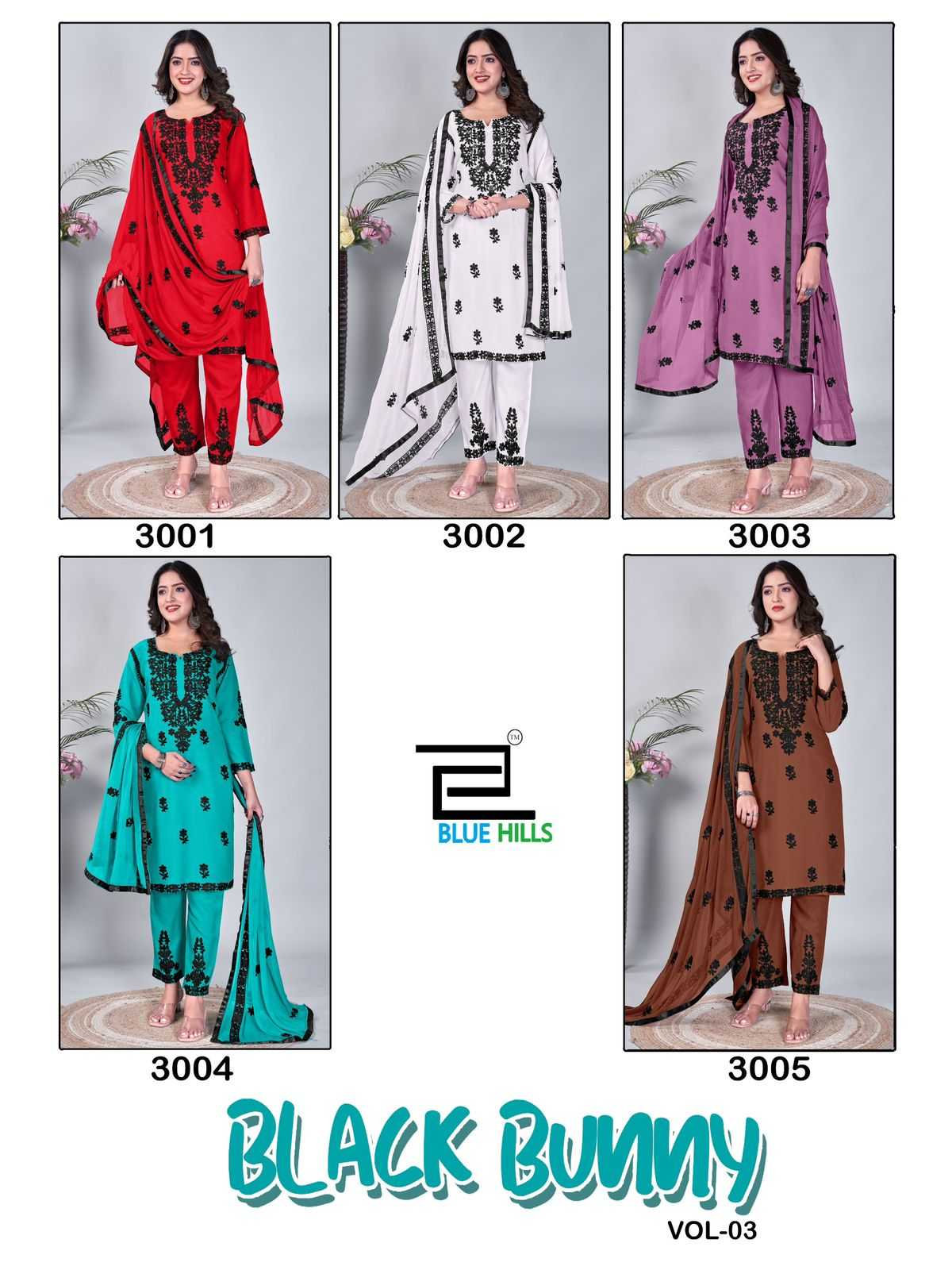 Looking for black bunny vol 3 by blue hills launch casual wear full stitch top bottom dupatta Full Catalouge at Best Price? Buy Now black bunny vol 3 by blue hills launch casual wear full stitch top bottom dupatta at Wholesale Rate of Rs 4000 with Total 5 Pcs from authroized dealer and supplier of Blue Hills Brand. Cost of Each piece is just only Rs 800 which is very low and affordable price to resale the product in your retail store. rrgandhi is Surat based Wholesale Supplier & Dealer of Blue Hills Brand. Click on Brand name to Know more about Brand's products.