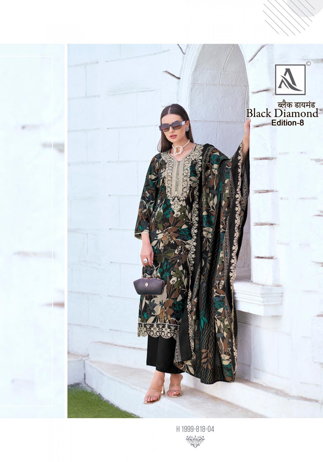 Looking for BLACK DIAMOND VOL 8 BY ALOK SUIT RAYON PAKISTANI DRESS MATERIAL Full Catalouge at Best Price? Buy Now BLACK DIAMOND VOL 8 BY ALOK SUIT RAYON PAKISTANI DRESS MATERIAL at Wholesale Rate of Rs 4794 with Total 6 Pcs from authroized dealer and supplier of Alok Suit Brand. Cost of Each piece is just only Rs 799 which is very low and affordable price to resale the product in your retail store. rrgandhi is Surat based Wholesale Supplier & Dealer of Alok Suit Brand. Click on Brand name to Know more about Brand's products.