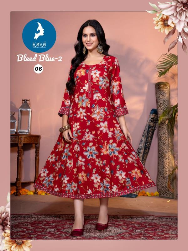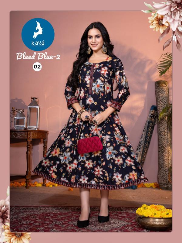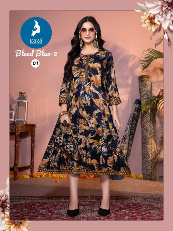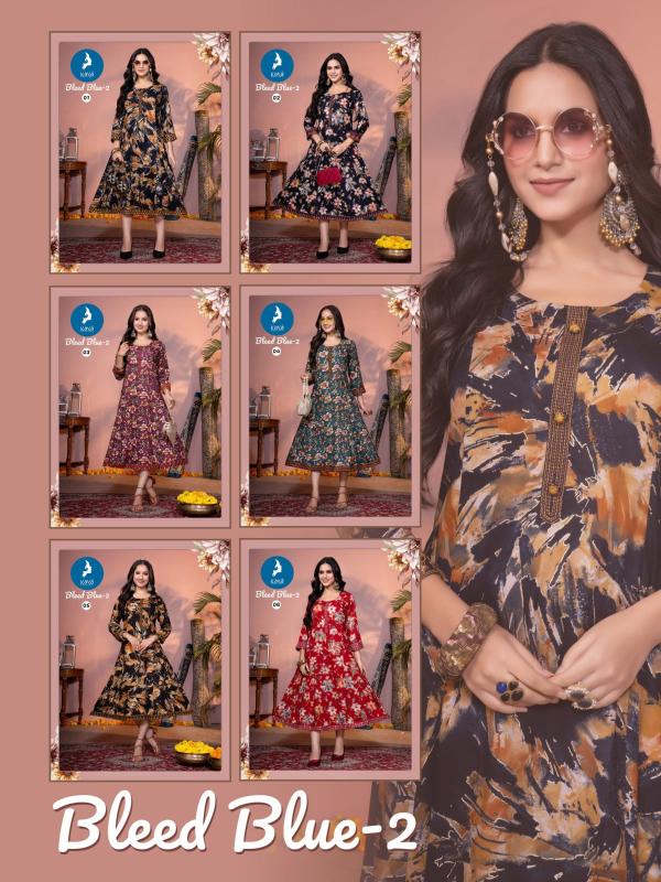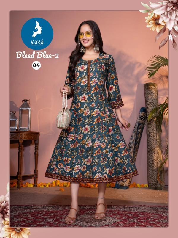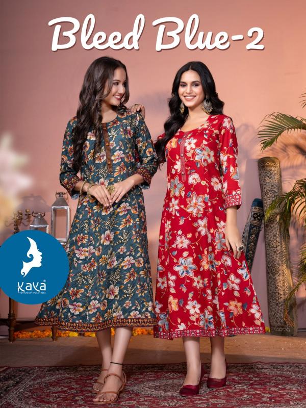 Looking for bleed blue vol 2 by kaya fullstitch beautiful fancy long kurti Full Catalouge at Best Price? Buy Now bleed blue vol 2 by kaya fullstitch beautiful fancy long kurti at Wholesale Rate of Rs 3570 with Total 6 Pcs from authroized dealer and supplier of Kaya Brand. Cost of Each piece is just only Rs 595 which is very low and affordable price to resale the product in your retail store. rrgandhi is Surat based Wholesale Supplier & Dealer of Kaya Brand. Click on Brand name to Know more about Brand's products.