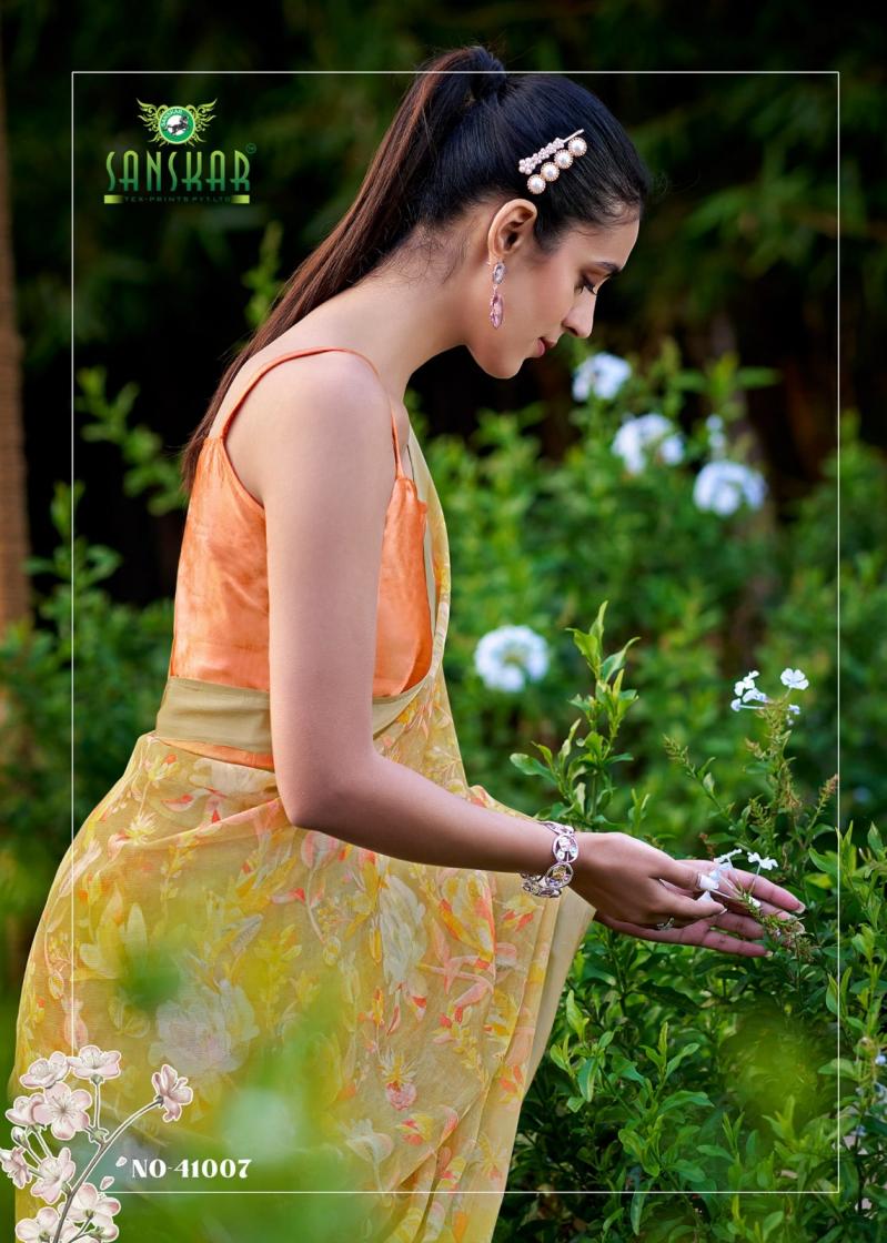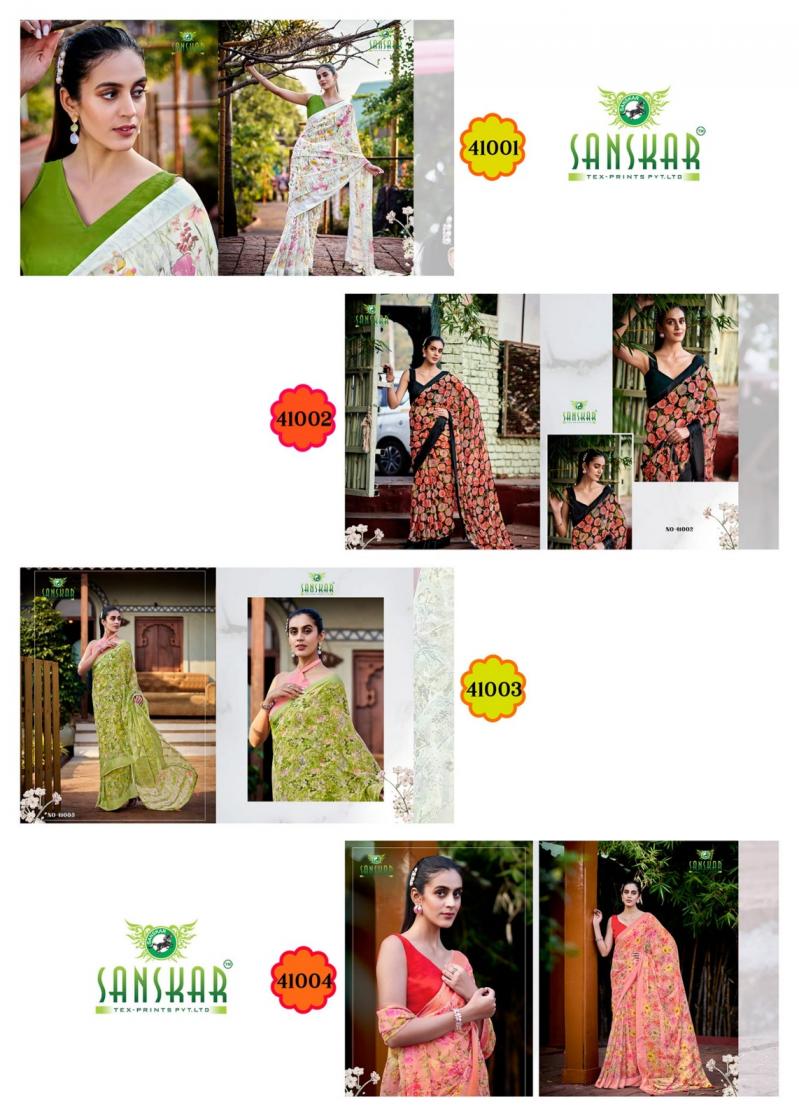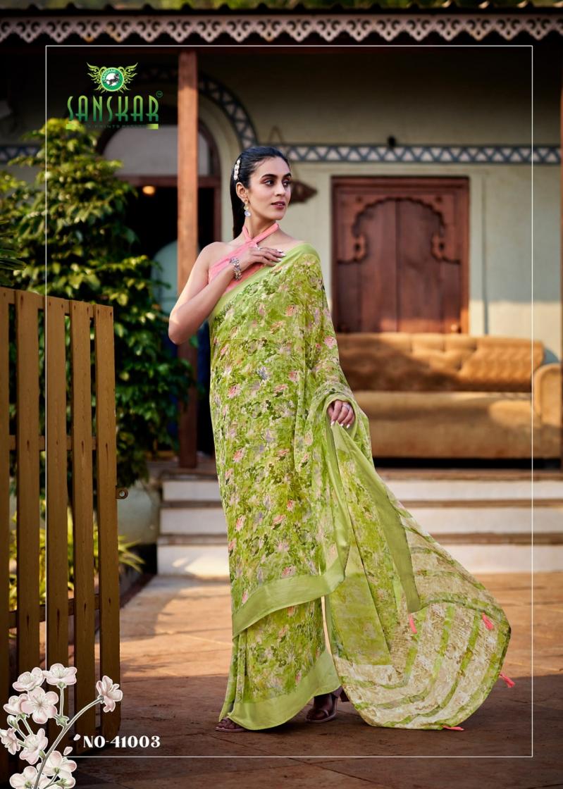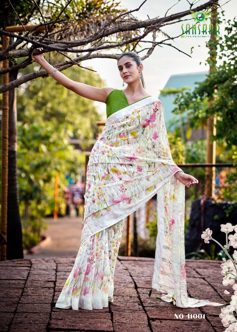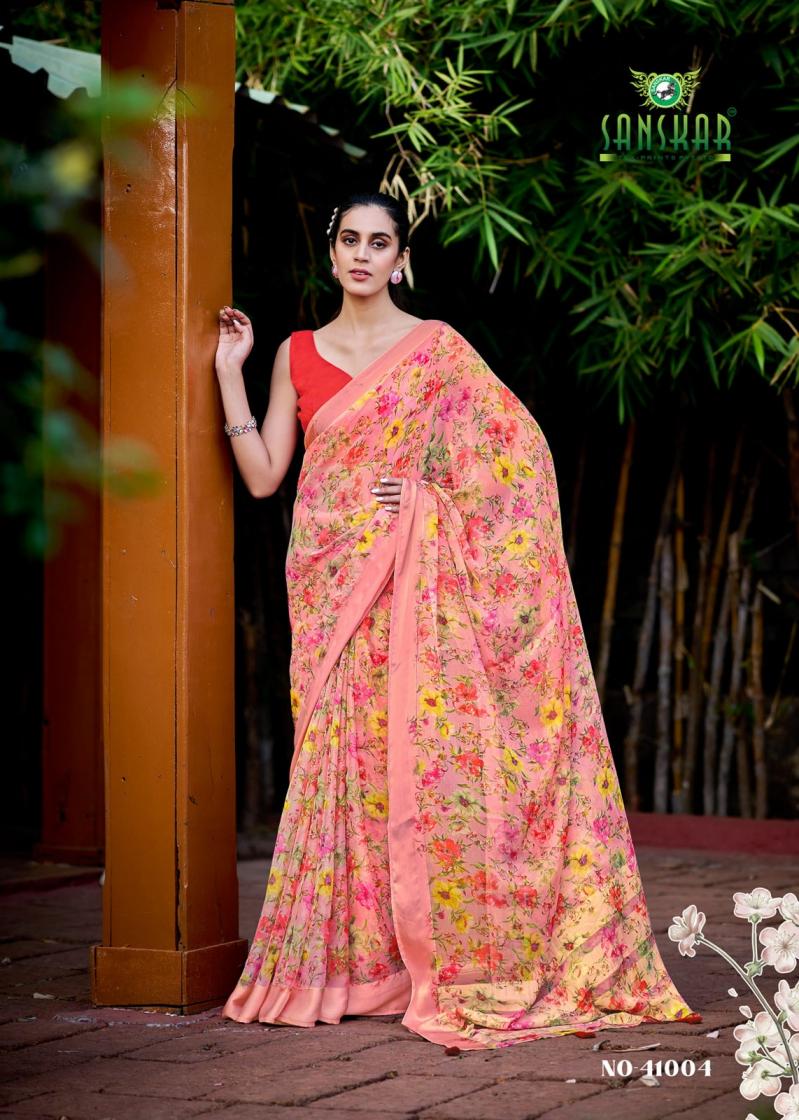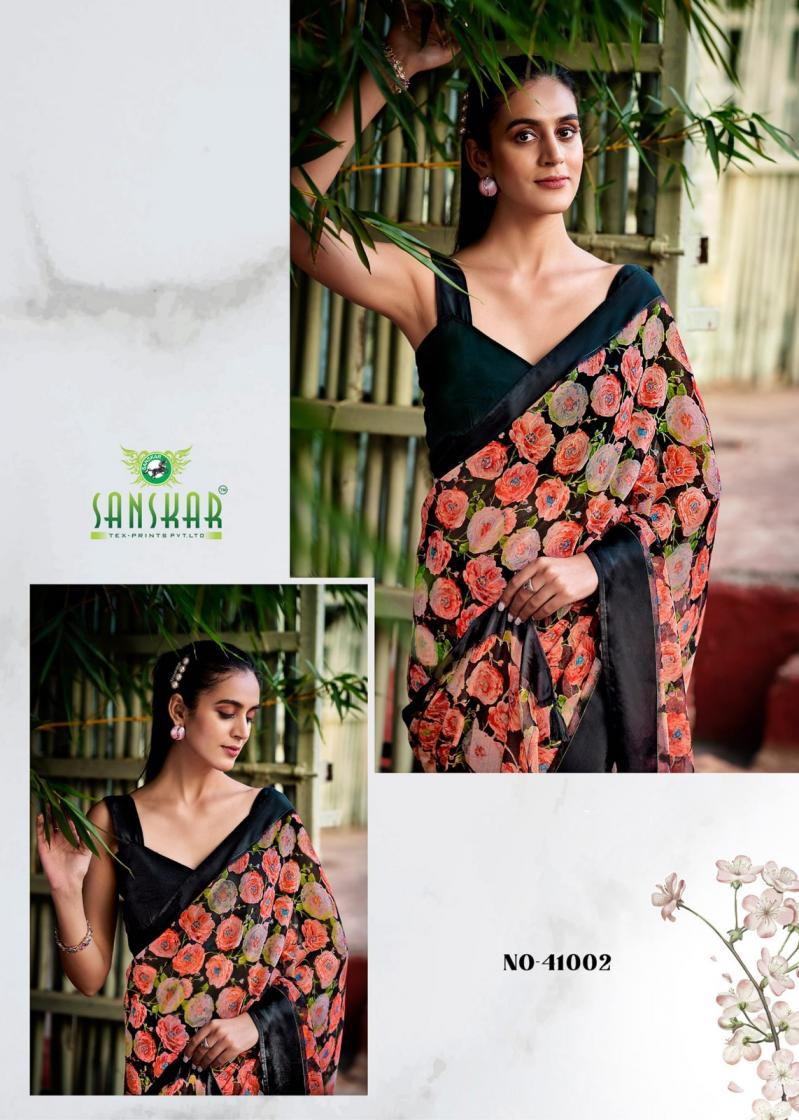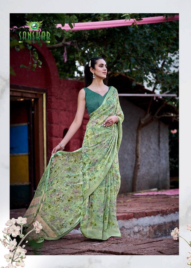 Looking for BLOSSOM BY SANSKAR TEX PRINTS SHIFFON FANCY SAREE ONLINE Full Catalouge at Best Price? Buy Now BLOSSOM BY SANSKAR TEX PRINTS SHIFFON FANCY SAREE ONLINE at Wholesale Rate of Rs 4680 with Total 8 Pcs from authroized dealer and supplier of Sanskar Tex Prints Brand. Cost of Each piece is just only Rs 585 which is very low and affordable price to resale the product in your retail store. rrgandhi is Surat based Wholesale Supplier & Dealer of Sanskar Tex Prints Brand. Click on Brand name to Know more about Brand's products.
