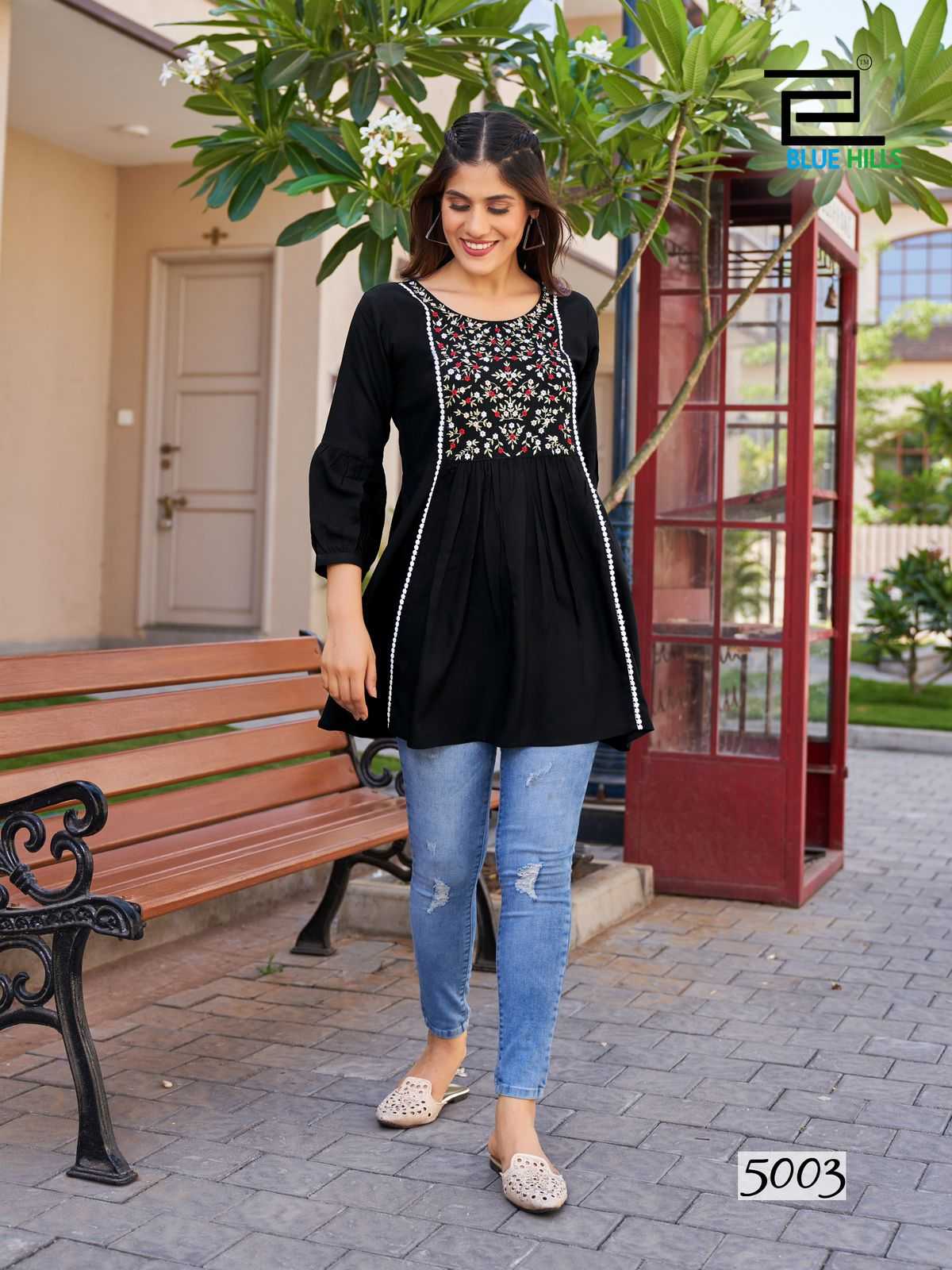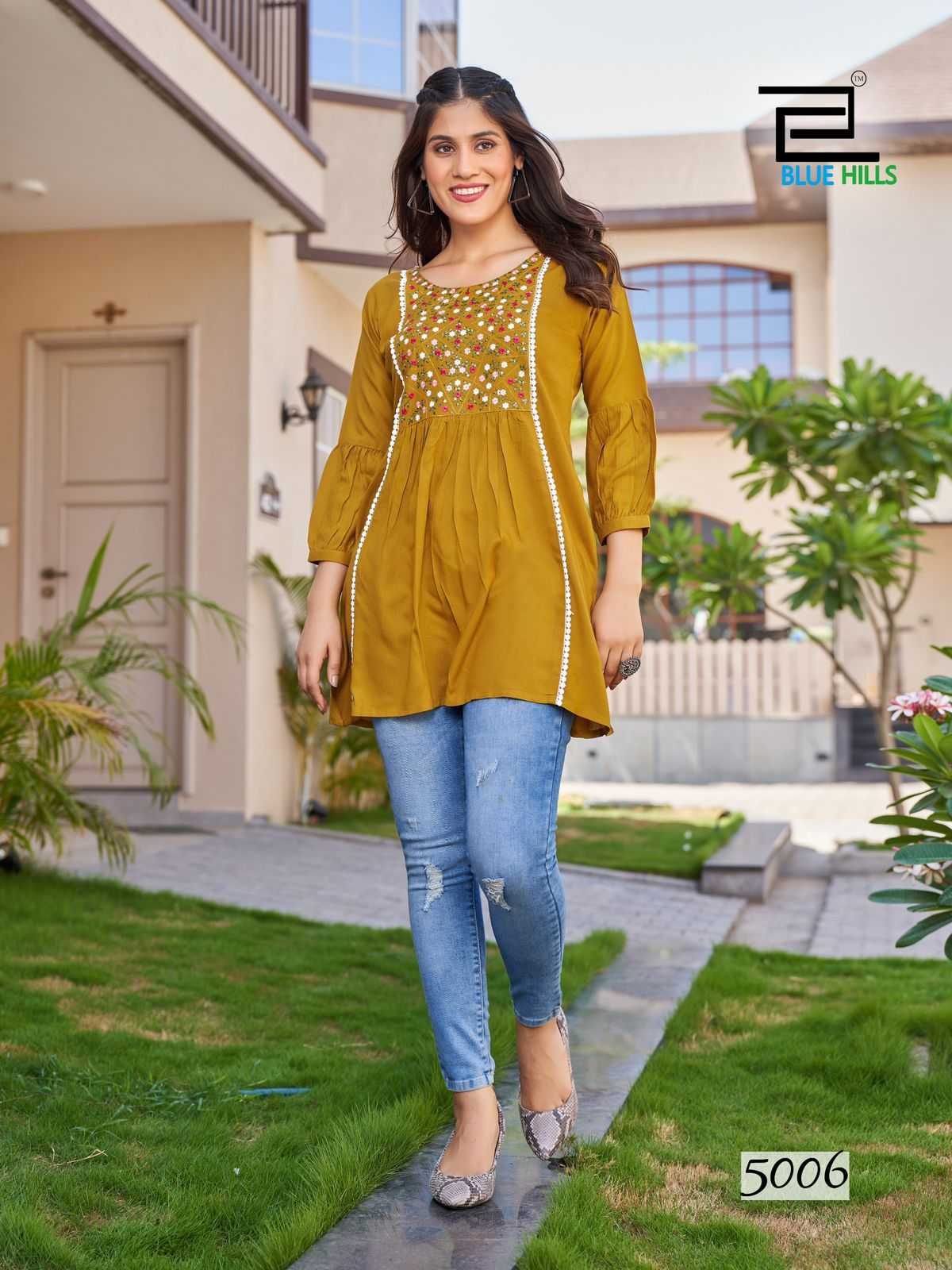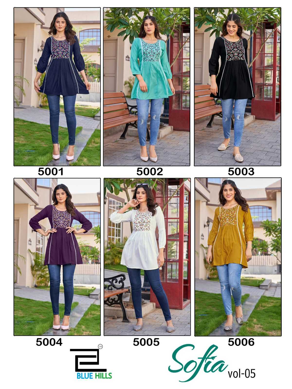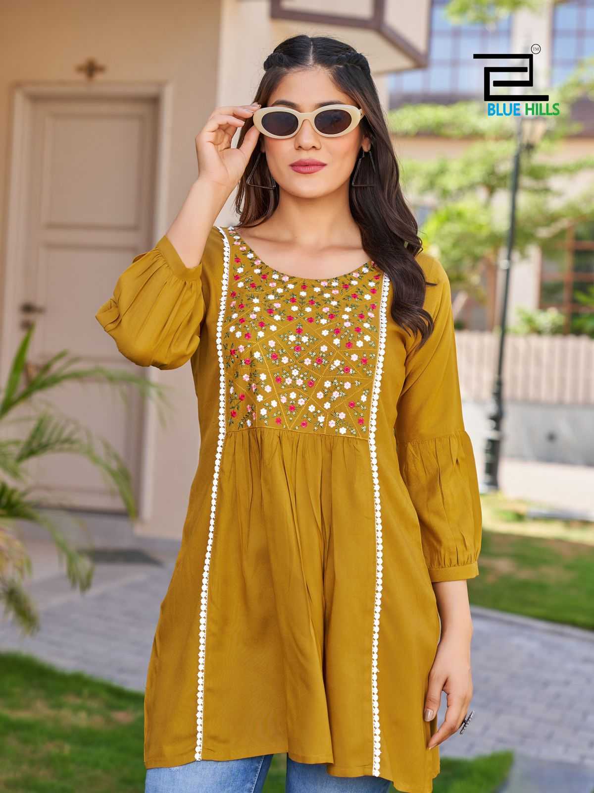 Looking for Blue Hills present by sofia vol 5 rayon daily wear short kurti Full Catalouge at Best Price? Buy Now Blue Hills present by sofia vol 5 rayon daily wear short kurti at Wholesale Rate of Rs 2280 with Total 6 Pcs from authroized dealer and supplier of Blue Hills Brand. Cost of Each piece is just only Rs 380 which is very low and affordable price to resale the product in your retail store. rrgandhi is Surat based Wholesale Supplier & Dealer of Blue Hills Brand. Click on Brand name to Know more about Brand's products.
