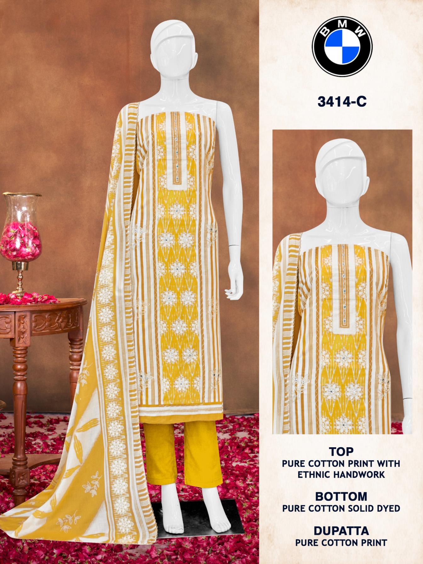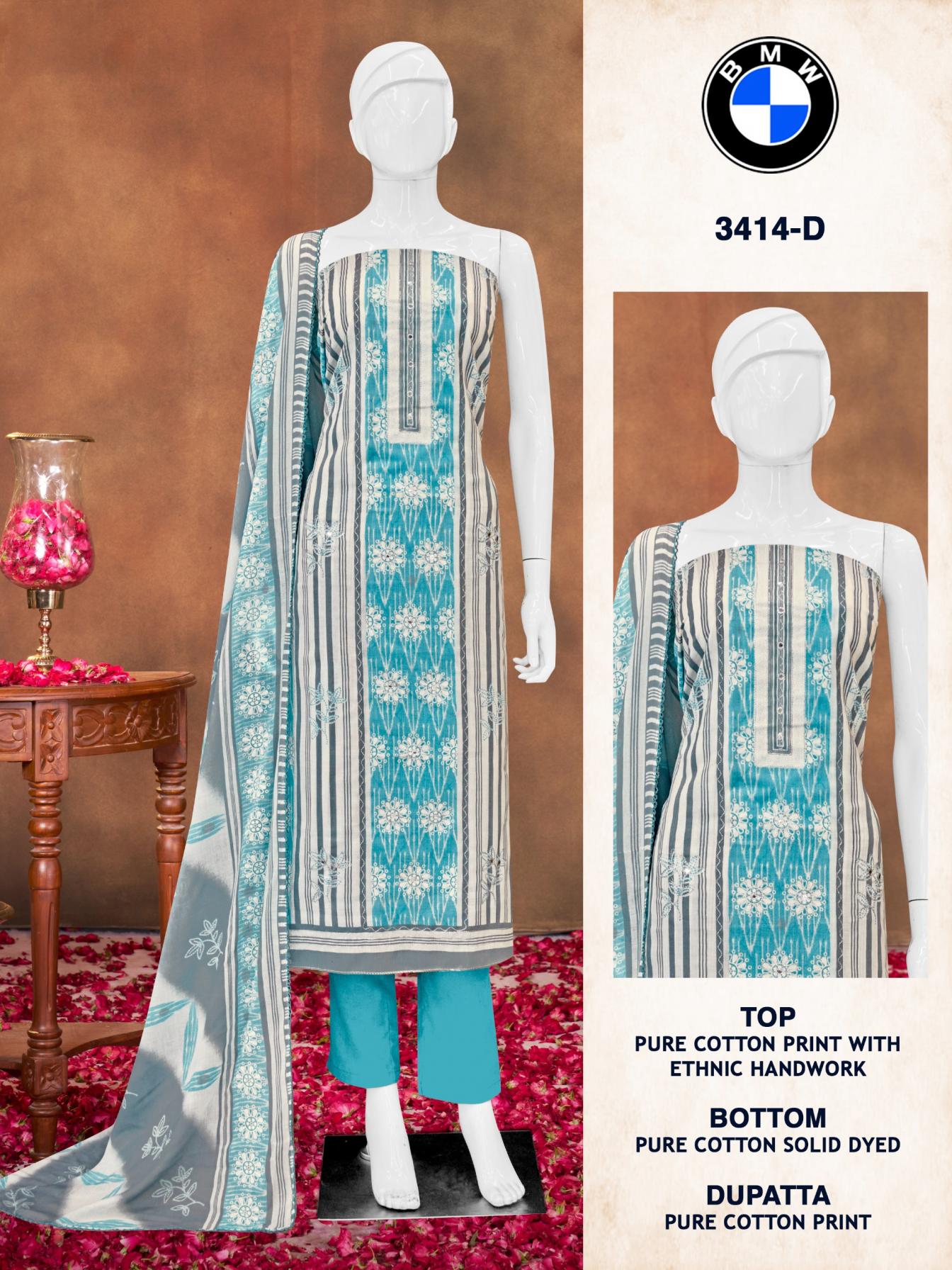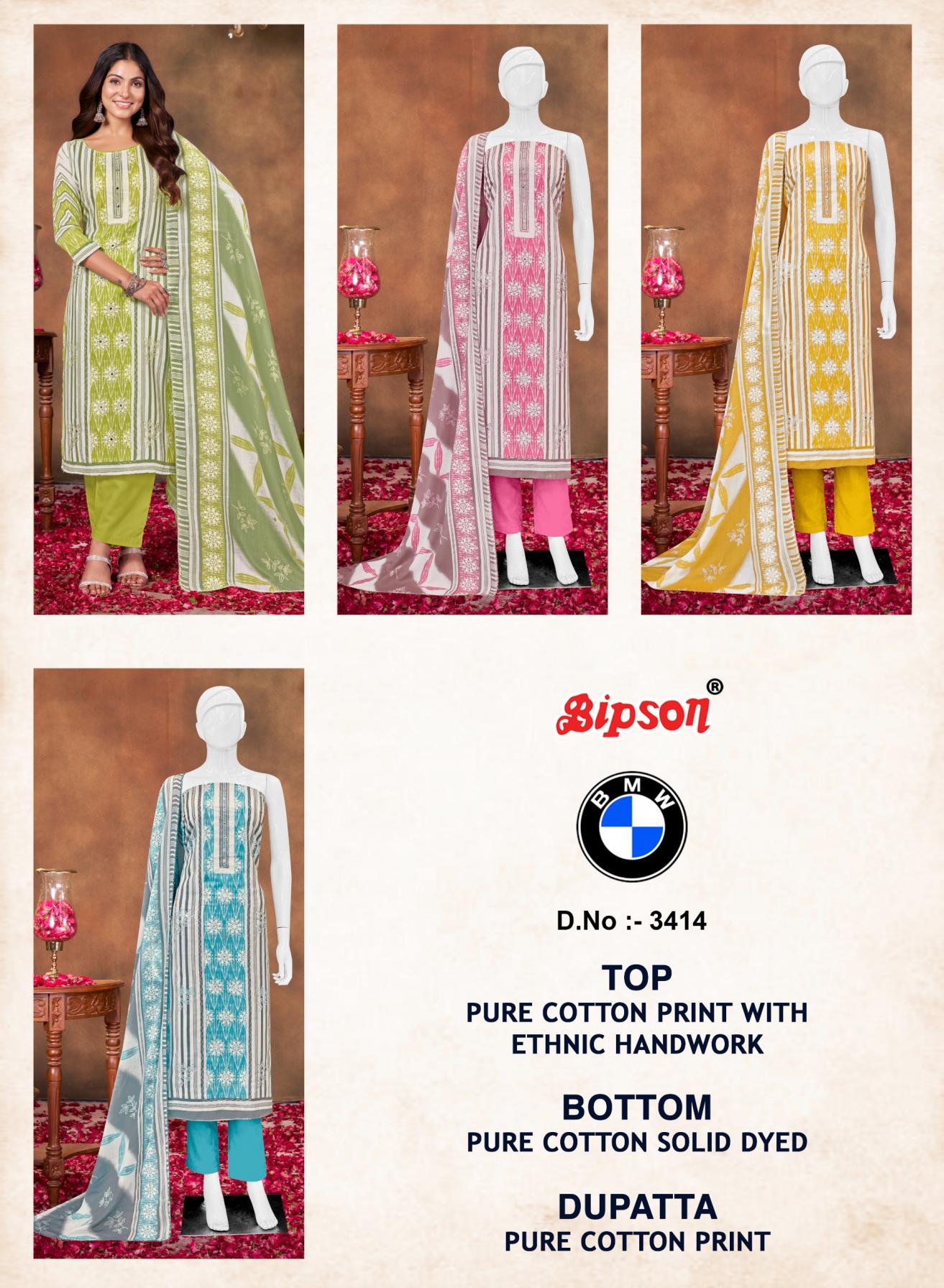Looking for BMW 3414 BY BIPSON PRINTS PRETTY COTTON SUIT FOR WOMENS Full Catalouge at Best Price? Buy Now BMW 3414 BY BIPSON PRINTS PRETTY COTTON SUIT FOR WOMENS at Wholesale Rate of Rs 1980 with Total 4 Pcs from authroized dealer and supplier of Bipson Fashion Brand. Cost of Each piece is just only Rs 495 which is very low and affordable price to resale the product in your retail store. rrgandhi is Surat based Wholesale Supplier & Dealer of Bipson Fashion Brand. Click on Brand name to Know more about Brand's products.
