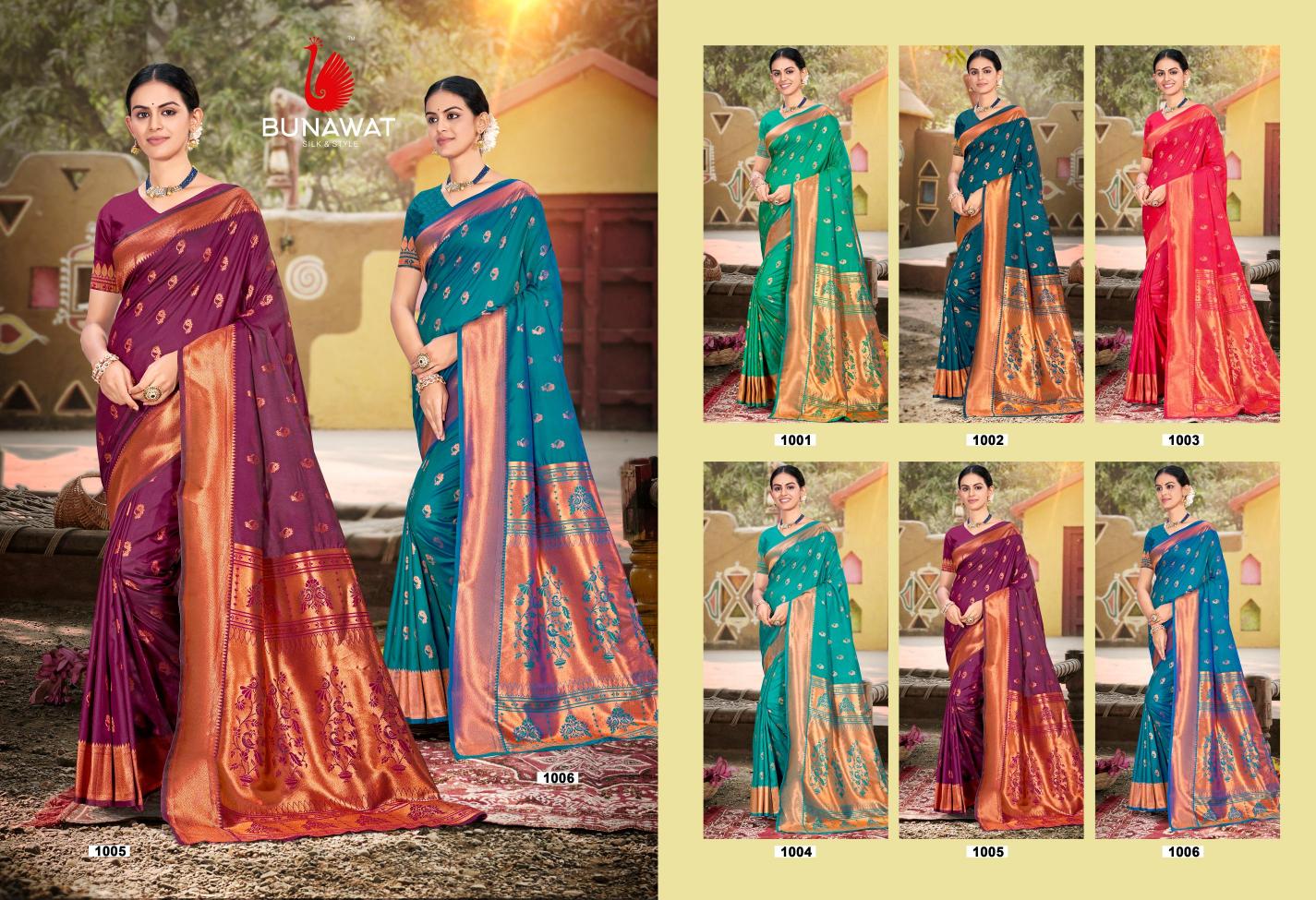 Looking for Bunawat Gautami Silk Wedding Festival Wear Silk Saree Collection Full Catalouge at Best Price? Buy Now Bunawat Gautami Silk Wedding Festival Wear Silk Saree Collection at Wholesale Rate of Rs 6060 with Total 6 Pcs from authroized dealer and supplier of Bunawat Brand. Cost of Each piece is just only Rs 1010 which is very low and affordable price to resale the product in your retail store. rrgandhi is Surat based Wholesale Supplier & Dealer of Bunawat Brand. Click on Brand name to Know more about Brand's products.