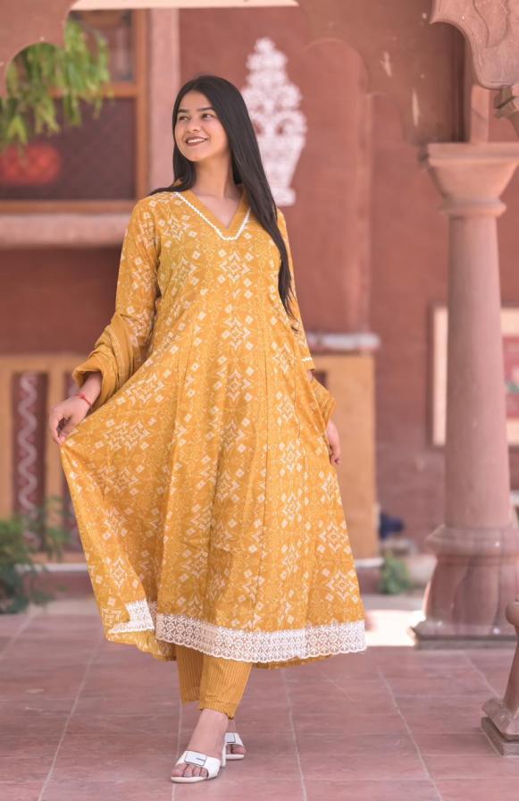 Looking for CAMBRIC COTTON FULLY STITCH ANARKALI STYLE KURTI PANT WITH DUPATTA COMBO SET Full Catalouge at Best Price? Buy Now CAMBRIC COTTON FULLY STITCH ANARKALI STYLE KURTI PANT WITH DUPATTA COMBO SET at Wholesale Rate of Rs 39900 with Total 60 Pcs from authroized dealer and supplier of P R Clothing Brand. Cost of Each piece is just only Rs 665 which is very low and affordable price to resale the product in your retail store. rrgandhi is Surat based Wholesale Supplier & Dealer of P R Clothing Brand. Click on Brand name to Know more about Brand's products.
