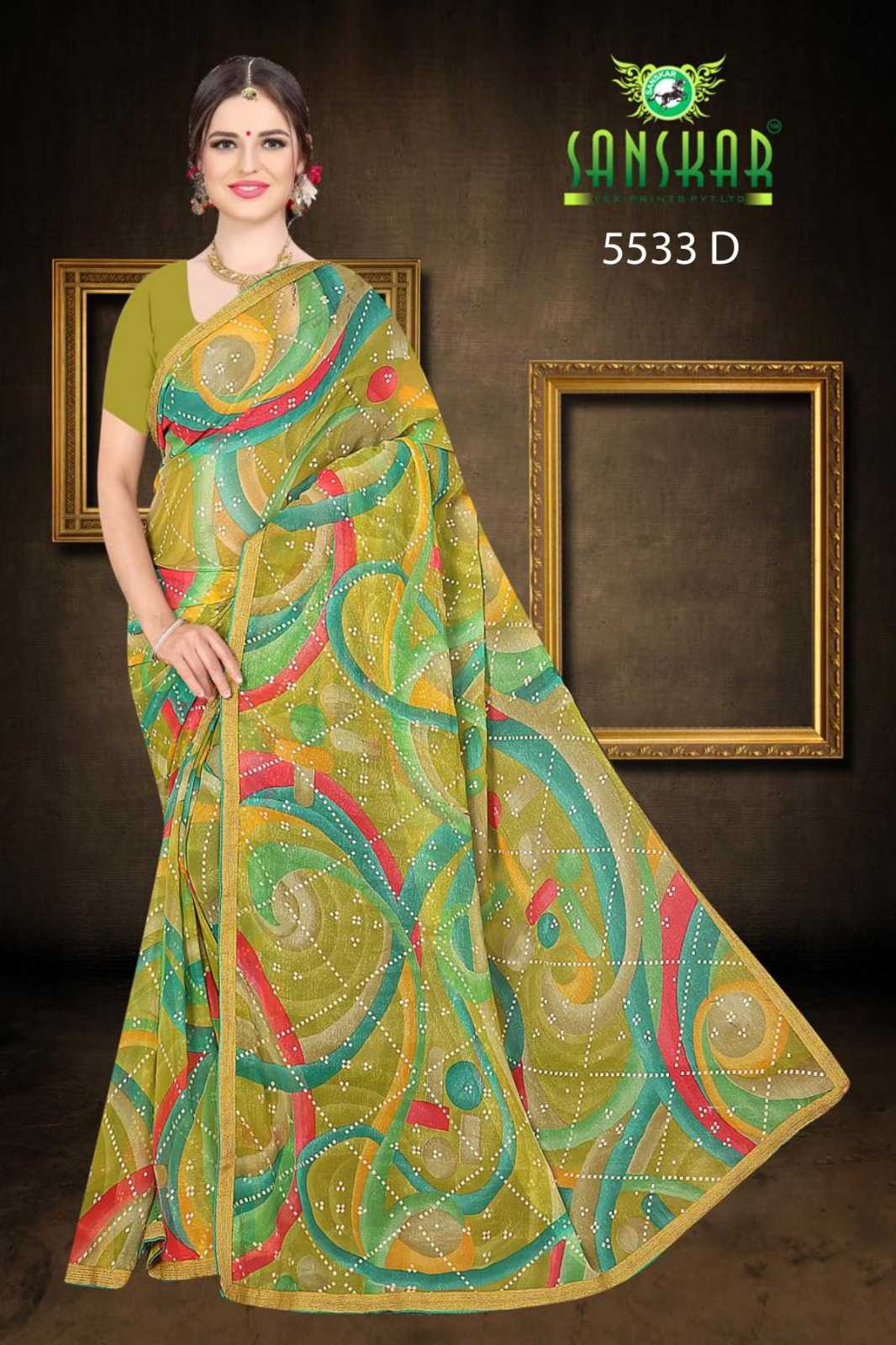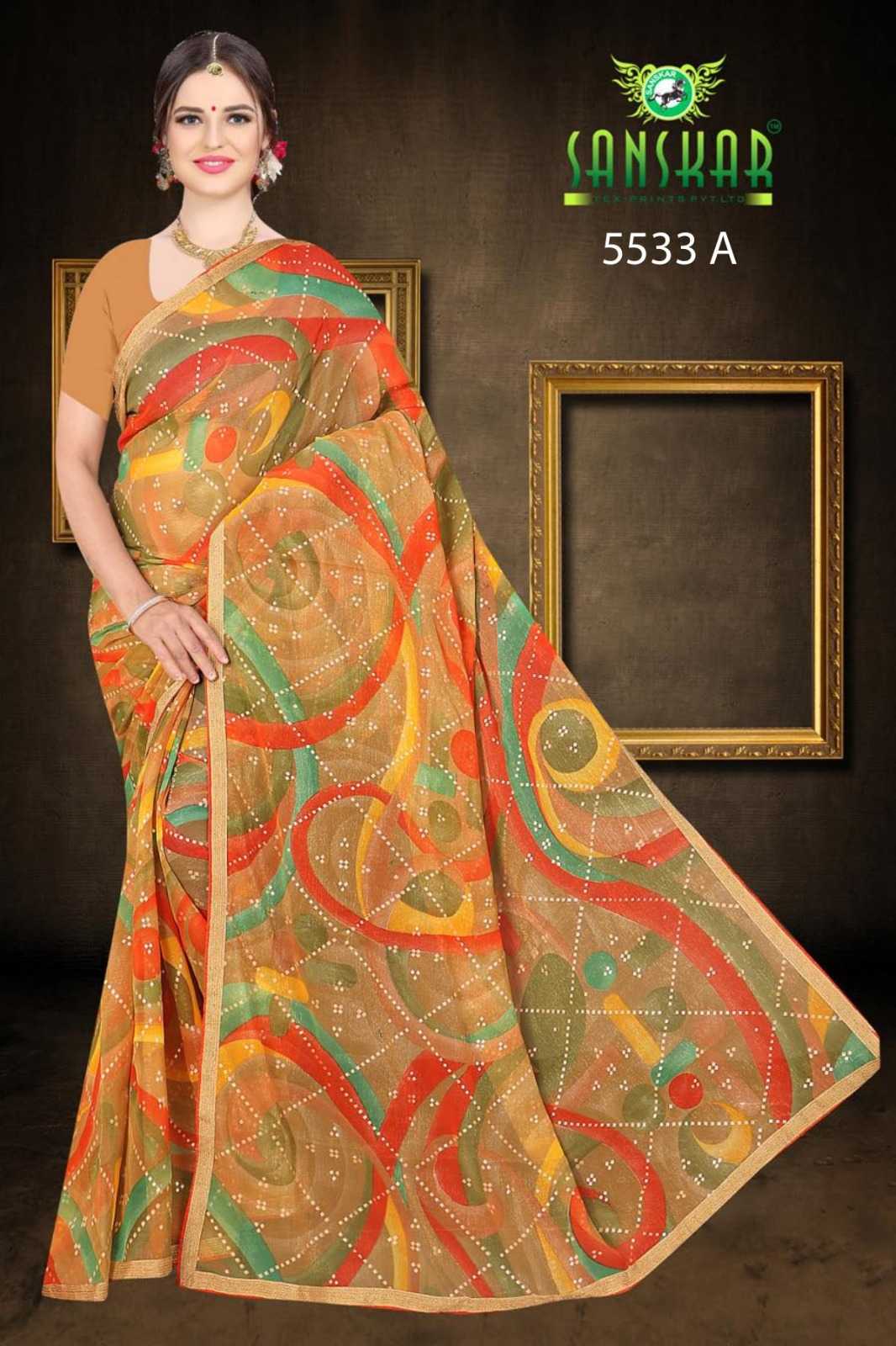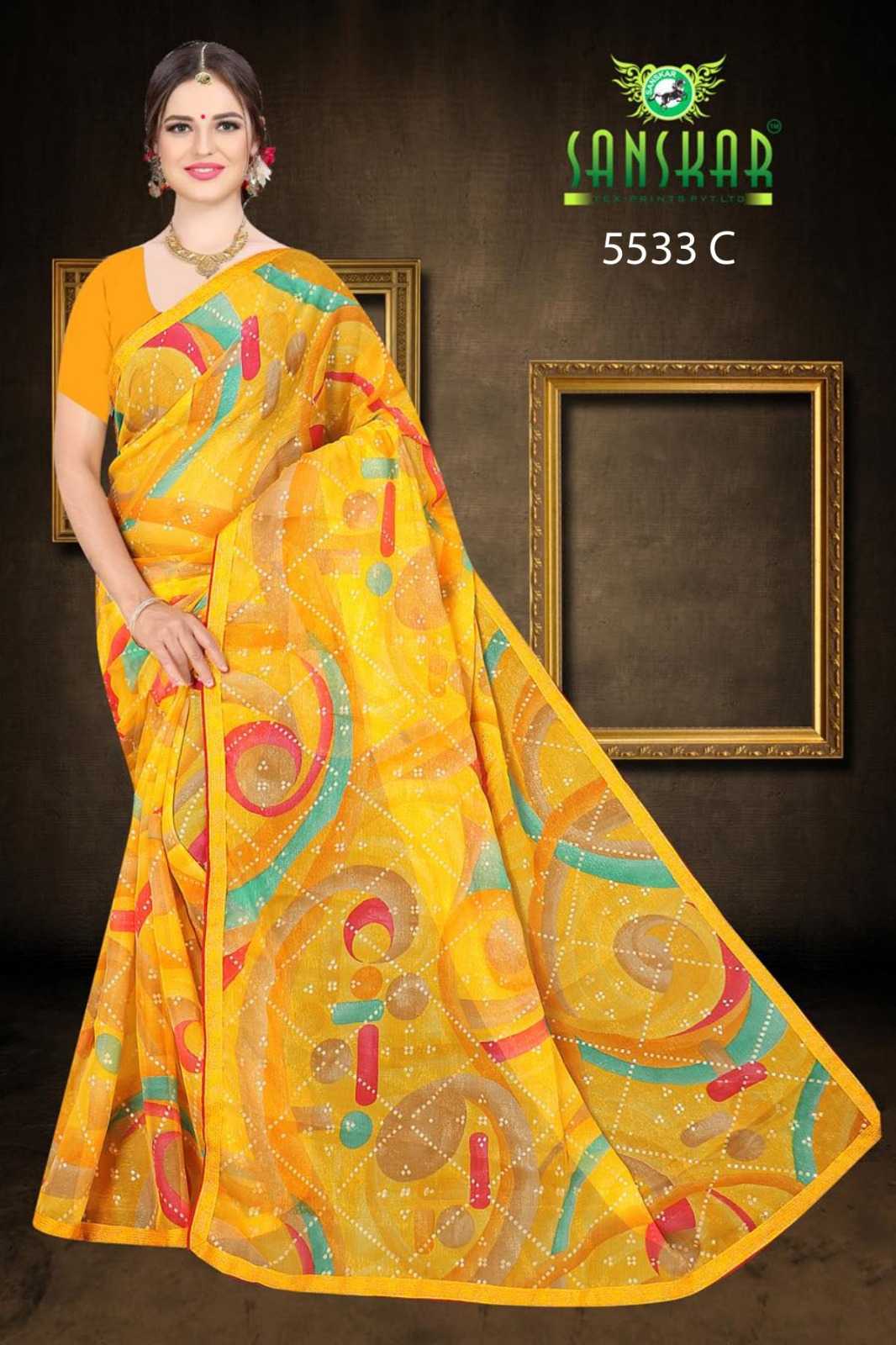 Looking for chandini by sanskar latest chiffon saree wholesaler Full Catalouge at Best Price? Buy Now chandini by sanskar latest chiffon saree wholesaler at Wholesale Rate of Rs 4600 with Total 8 Pcs from authroized dealer and supplier of Sanskar Tex Prints Brand. Cost of Each piece is just only Rs 575 which is very low and affordable price to resale the product in your retail store. rrgandhi is Surat based Wholesale Supplier & Dealer of Sanskar Tex Prints Brand. Click on Brand name to Know more about Brand's products.