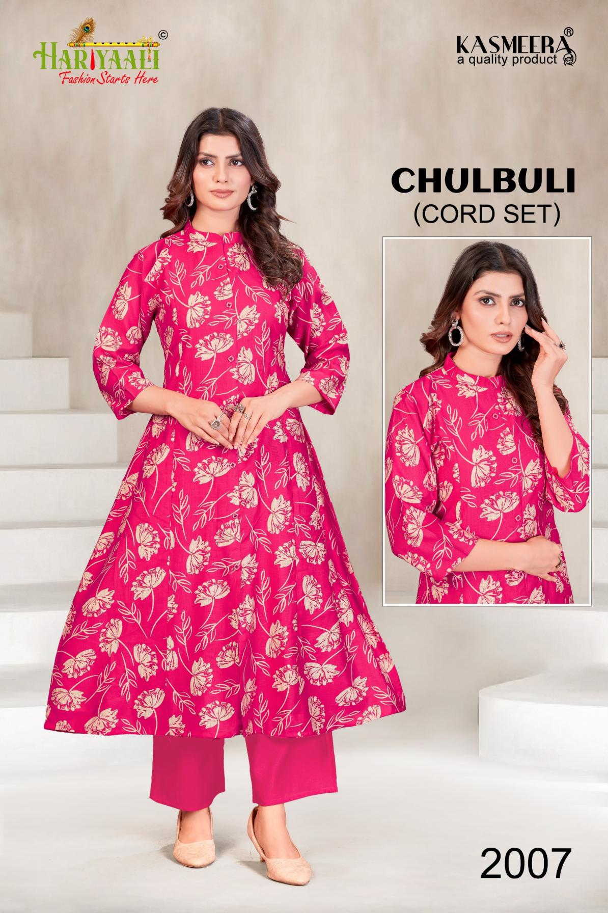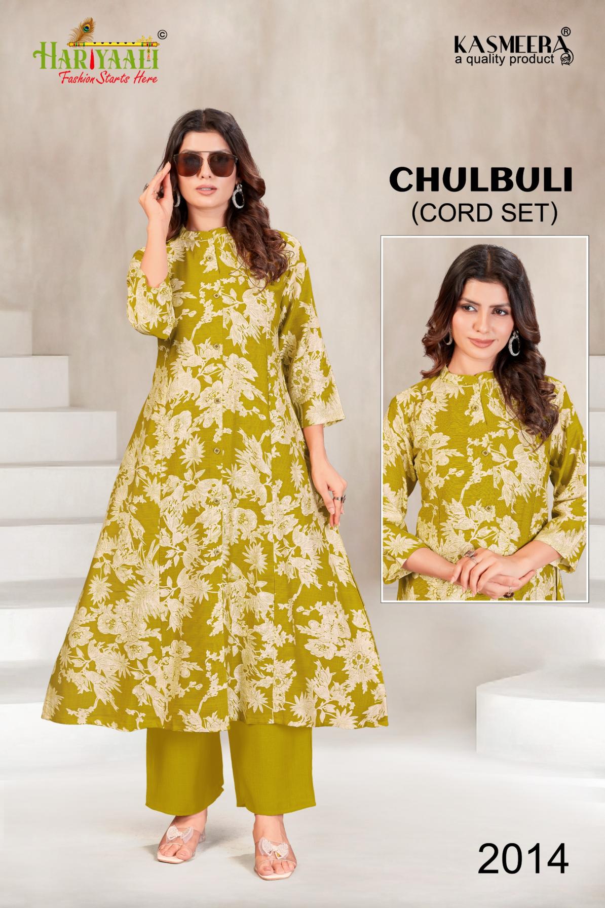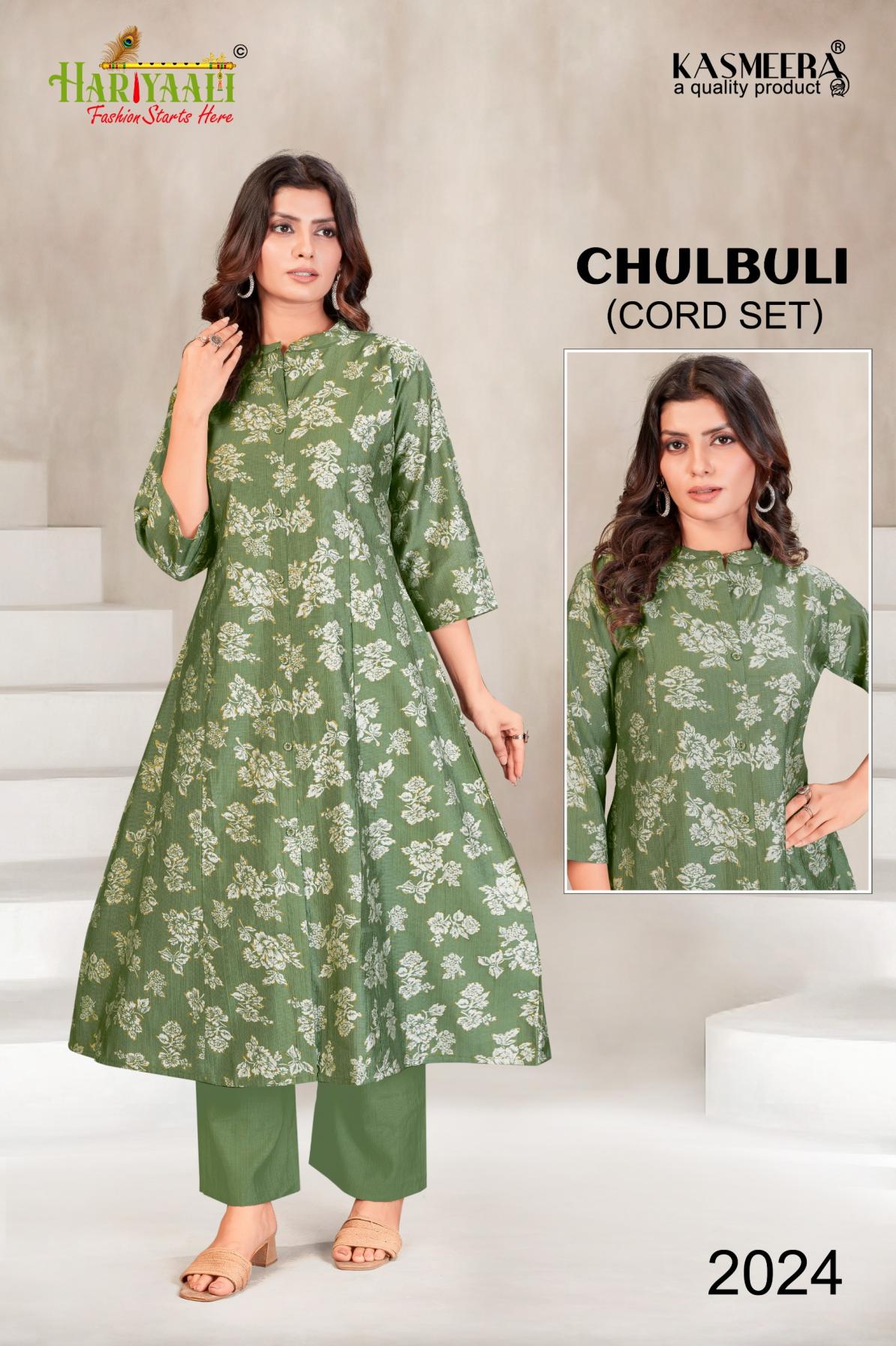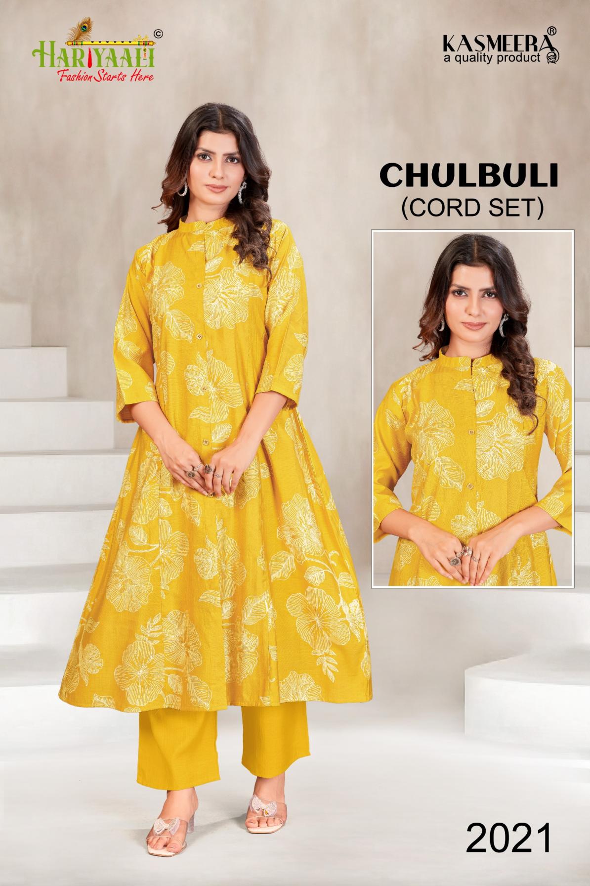 Looking for CHULBULI VOL 2 BY HARIYAALI VERTICAN SILK READYMADE KURTI WITH PLAZZO COMBO SET Full Catalouge at Best Price? Buy Now CHULBULI VOL 2 BY HARIYAALI VERTICAN SILK READYMADE KURTI WITH PLAZZO COMBO SET at Wholesale Rate of Rs 54900 with Total 90 Pcs from authroized dealer and supplier of Hariyaali Brand. Cost of Each piece is just only Rs 610 which is very low and affordable price to resale the product in your retail store. rrgandhi is Surat based Wholesale Supplier & Dealer of Hariyaali Brand. Click on Brand name to Know more about Brand's products.