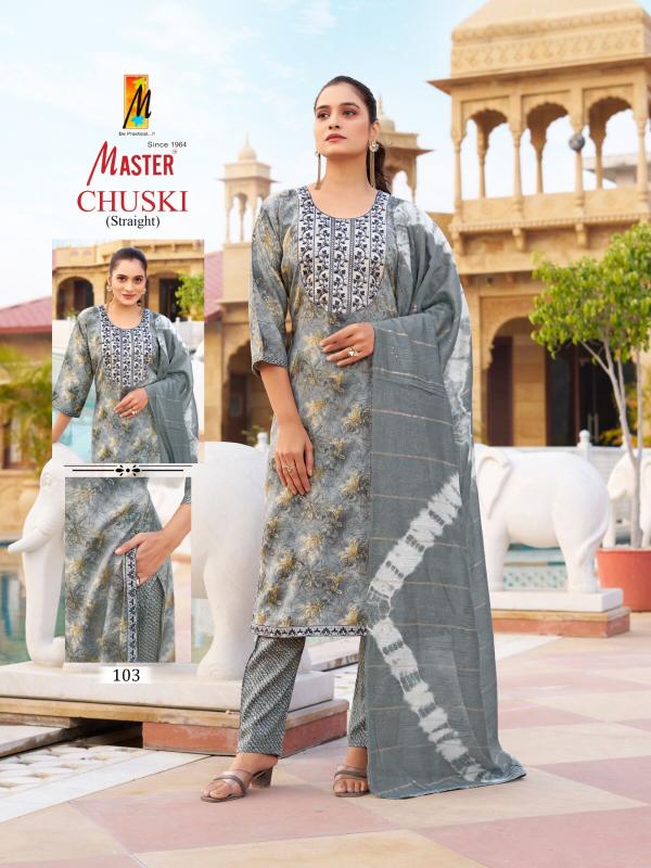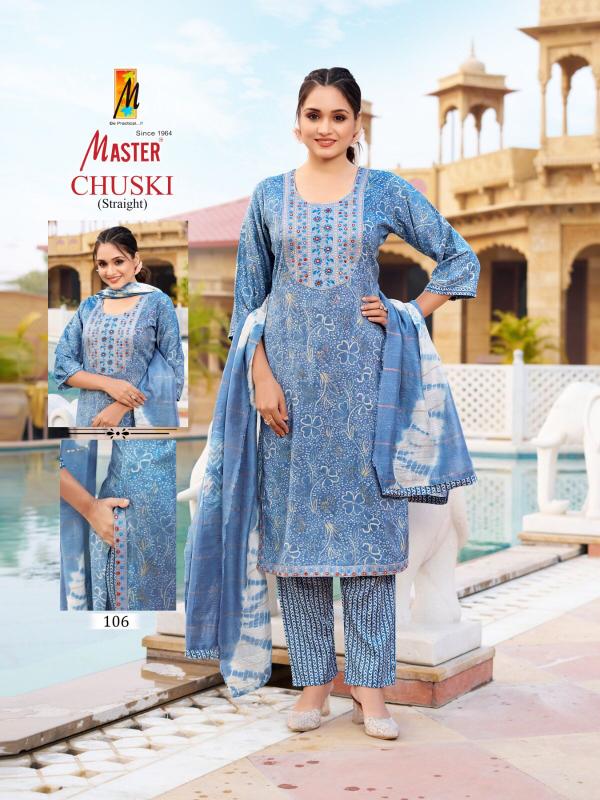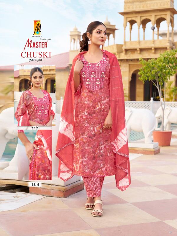 Looking for chuski by master capsule print fully stitch elegant style churidar 3pcs suit Full Catalouge at Best Price? Buy Now chuski by master capsule print fully stitch elegant style churidar 3pcs suit at Wholesale Rate of Rs 4320 with Total 8 Pcs from authroized dealer and supplier of Master Kurti Brand. Cost of Each piece is just only Rs 540 which is very low and affordable price to resale the product in your retail store. rrgandhi is Surat based Wholesale Supplier & Dealer of Master Kurti Brand. Click on Brand name to Know more about Brand's products.