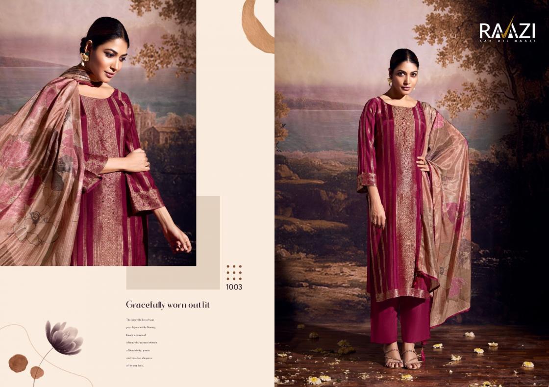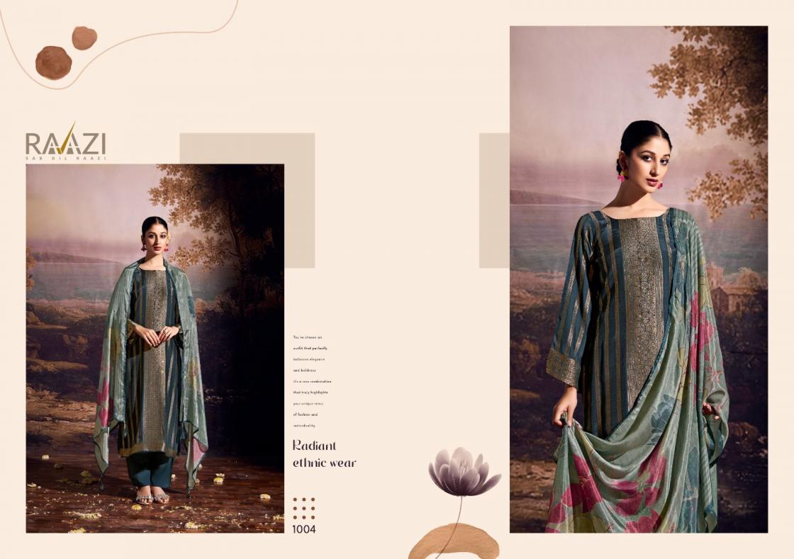 Looking for CLASSY ATTIRE BY RAMA FASHION RAAZI ZARI JACQUARD UNSTITCH SUIT Full Catalouge at Best Price? Buy Now CLASSY ATTIRE BY RAMA FASHION RAAZI ZARI JACQUARD UNSTITCH SUIT at Wholesale Rate of Rs 5580 with Total 4 Pcs from authroized dealer and supplier of Rama Fashion Brand. Cost of Each piece is just only Rs 1395 which is very low and affordable price to resale the product in your retail store. rrgandhi is Surat based Wholesale Supplier & Dealer of Rama Fashion Brand. Click on Brand name to Know more about Brand's products.