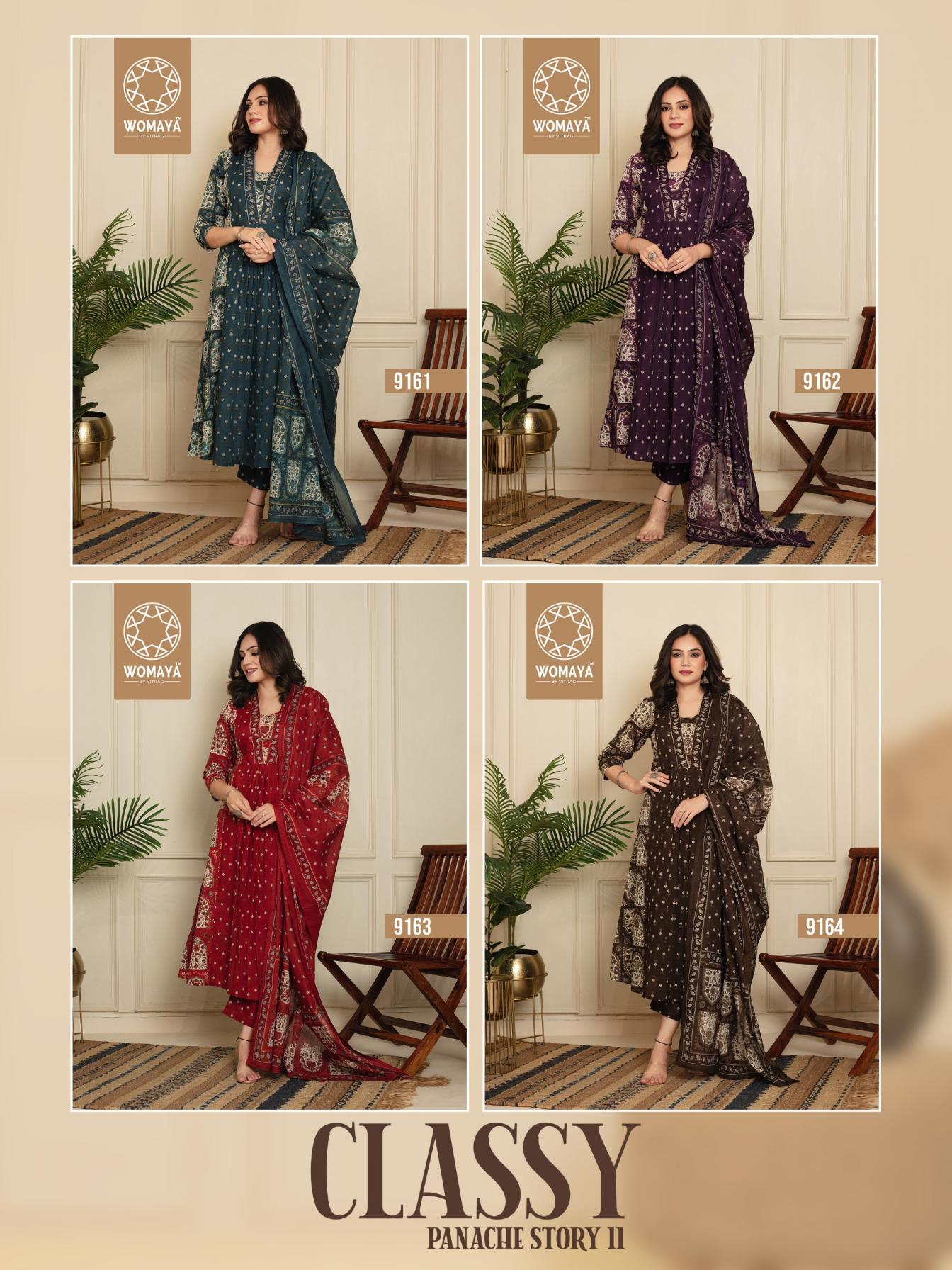 Looking for CLASSY PANACHE STORY VOL 2 BY WOMAYAS AMAZING COTTON FULL STITCH COMBO SUITS Full Catalouge at Best Price? Buy Now CLASSY PANACHE STORY VOL 2 BY WOMAYAS AMAZING COTTON FULL STITCH COMBO SUITS at Wholesale Rate of Rs 21900 with Total 20 Pcs from authroized dealer and supplier of Womaya Kurtis Brand. Cost of Each piece is just only Rs 1095 which is very low and affordable price to resale the product in your retail store. rrgandhi is Surat based Wholesale Supplier & Dealer of Womaya Kurtis Brand. Click on Brand name to Know more about Brand's products.