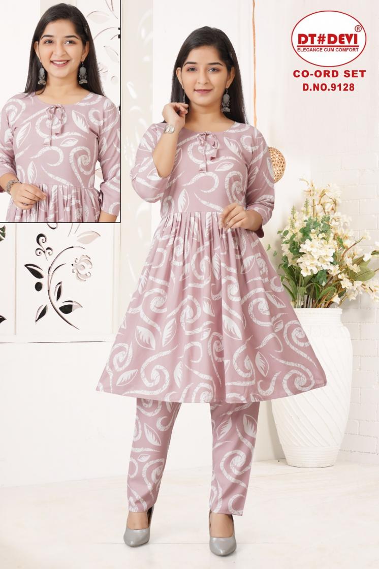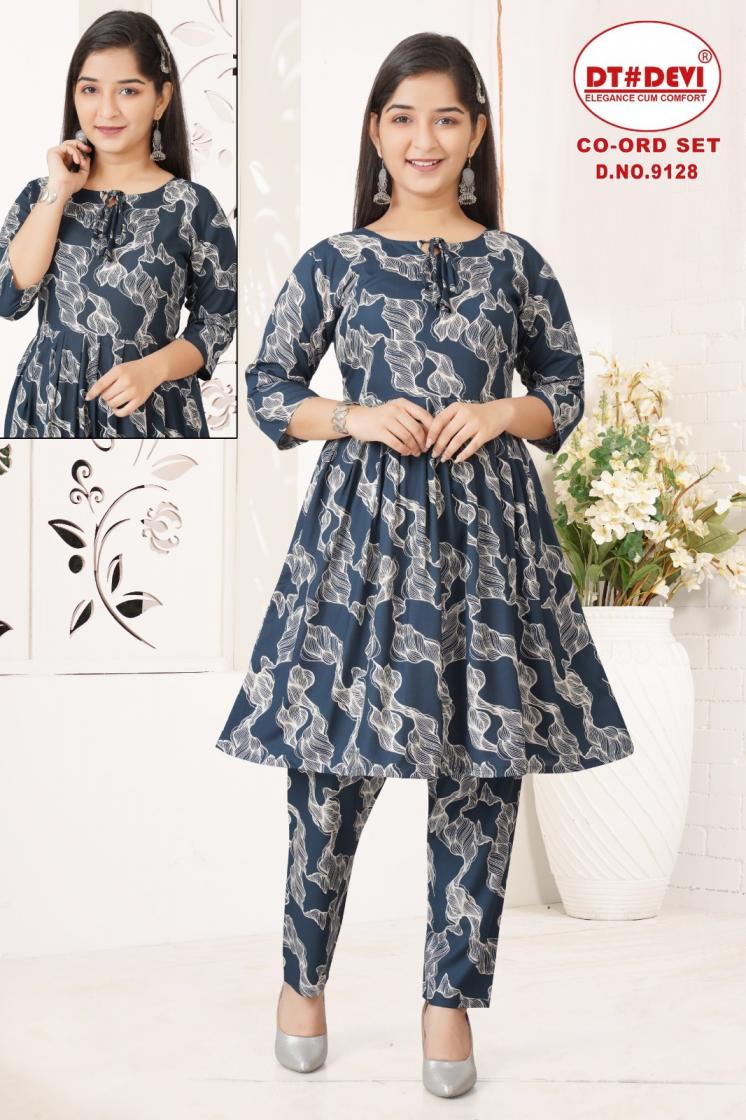 Looking for CO-ORD SET BY DT DEVI 9128 RAYON FULL STITCH STYLISH COMBO KIDS KURTI WITH PAIR Full Catalouge at Best Price? Buy Now CO-ORD SET BY DT DEVI 9128 RAYON FULL STITCH STYLISH COMBO KIDS KURTI WITH PAIR at Wholesale Rate of Rs 6660 with Total 12 Pcs from authroized dealer and supplier of Dt Devi Brand. Cost of Each piece is just only Rs 555 which is very low and affordable price to resale the product in your retail store. rrgandhi is Surat based Wholesale Supplier & Dealer of Dt Devi Brand. Click on Brand name to Know more about Brand's products.