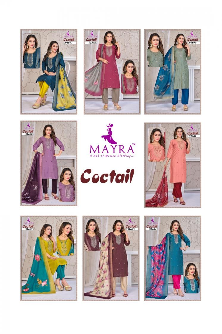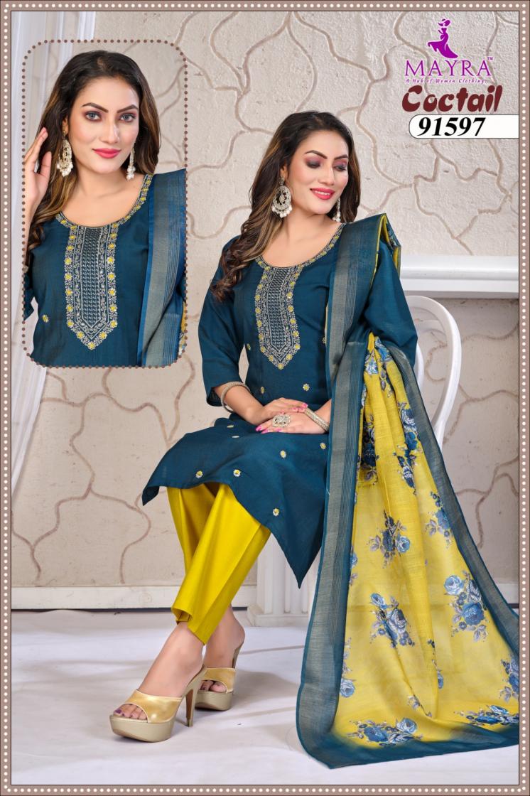 Looking for COCTAIL BY MAYRA FASHION VERTICAN SIMMER FULL STITCH STYLISH 3PCS DRESS Full Catalouge at Best Price? Buy Now COCTAIL BY MAYRA FASHION VERTICAN SIMMER FULL STITCH STYLISH 3PCS DRESS at Wholesale Rate of Rs 6120 with Total 8 Pcs from authroized dealer and supplier of Mayra Brand. Cost of Each piece is just only Rs 765 which is very low and affordable price to resale the product in your retail store. rrgandhi is Surat based Wholesale Supplier & Dealer of Mayra Brand. Click on Brand name to Know more about Brand's products.